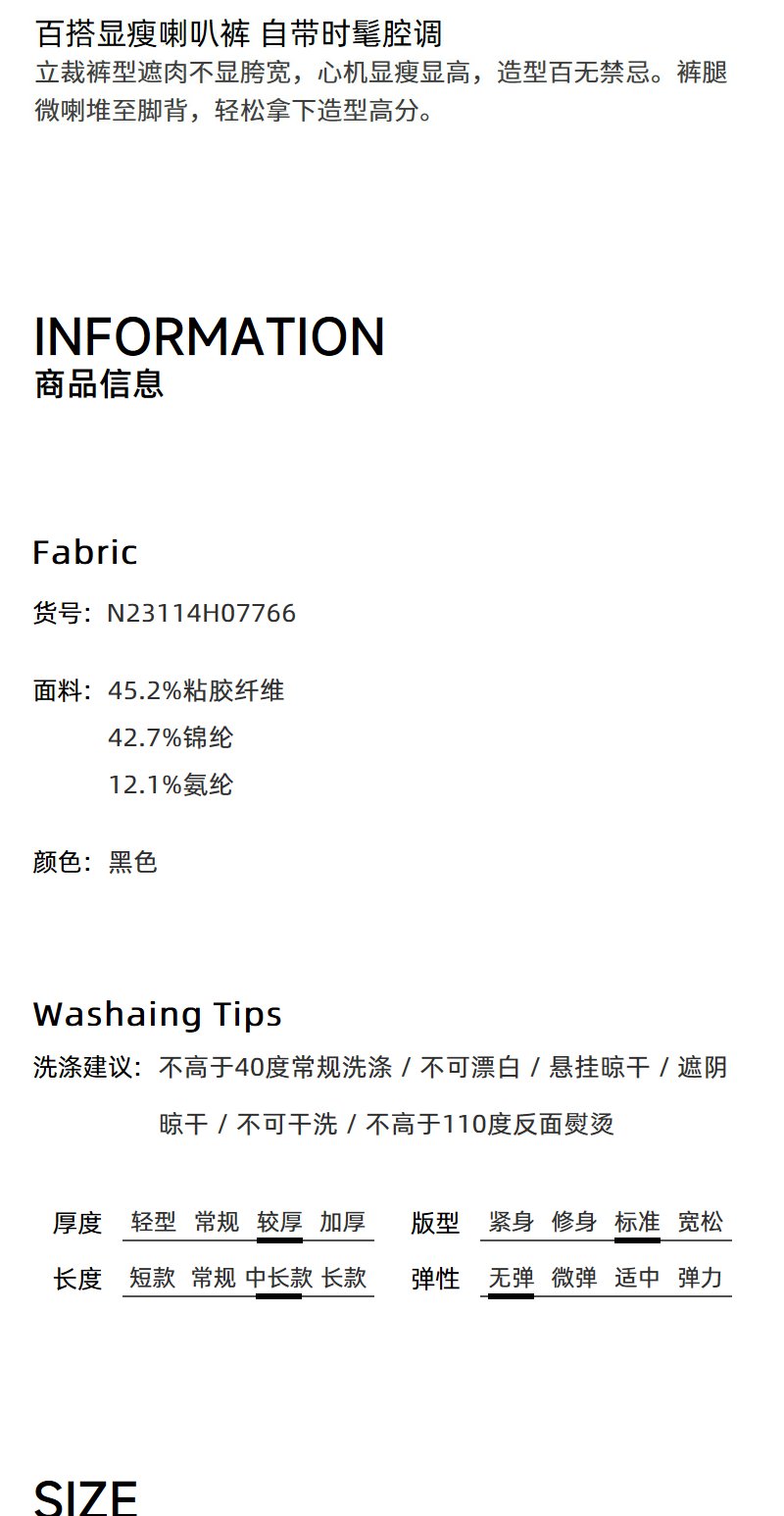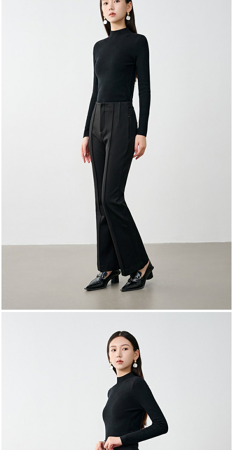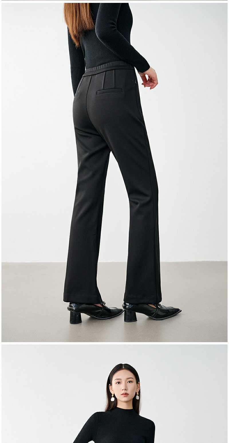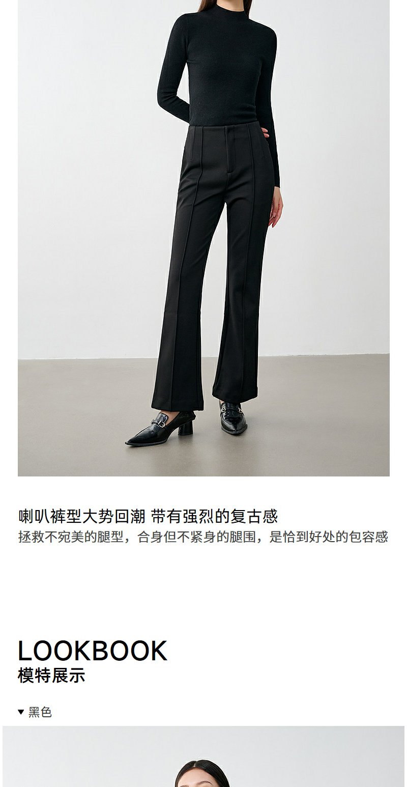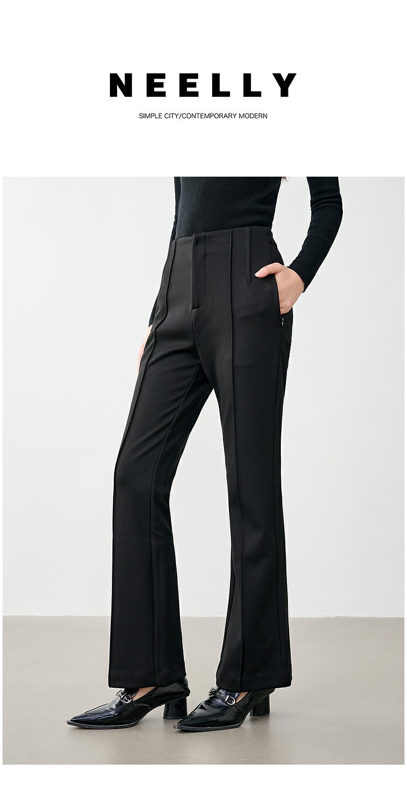 NEELLY纳俪商场同款冬季新款收腰显瘦微喇休闲裤女高腰黑色长裤N23114H07766