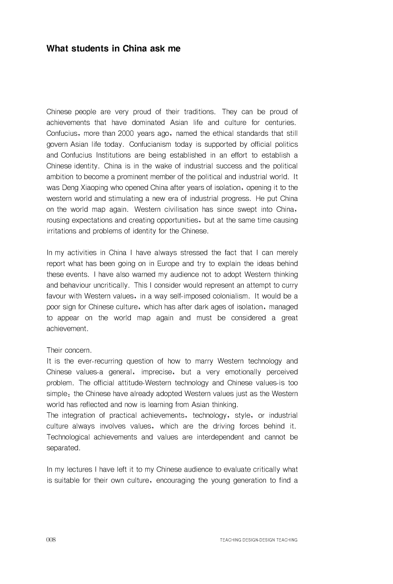“设计”对中国来说是一门既新、又热门的综合交叉型专业,对此雷曼教授从知名设计教育家的角度进行了深入的思考和探索,他继承了包豪斯和乌尔姆的设计基础传统,又发展了一套十分具有特色的设计基础研究课题体系,尤其是30年来多次受邀来华讲学,精心传授他的教育思想、方法和教学体系,不仅取得了骄人的成果,还培养了近百名师资,他的设计教育理念已在中国设计教育界中开花结果,可谓粉丝遍中国。