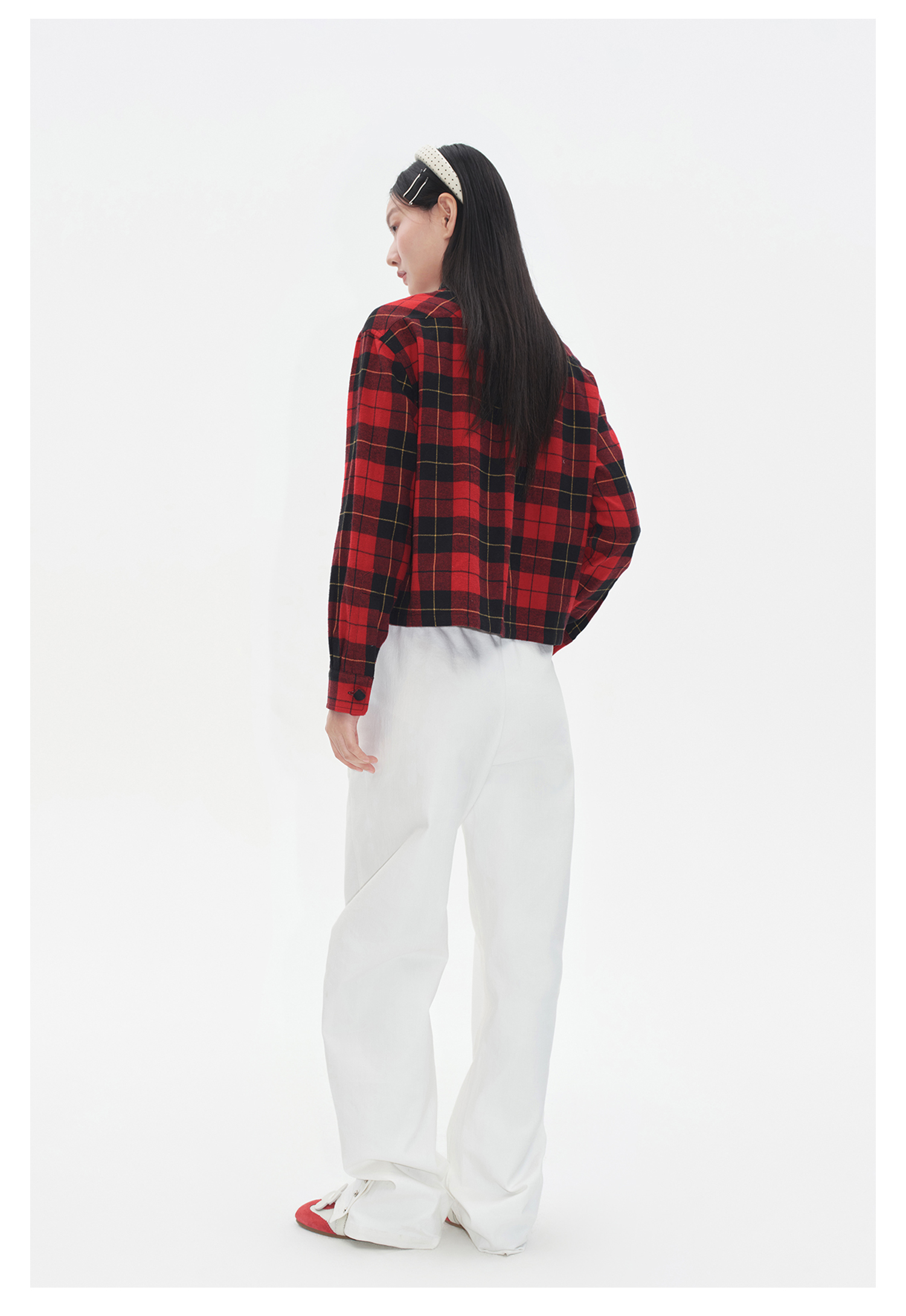 HERLIAN 2025秋季新品女士格纹拼接设计毛绒马甲