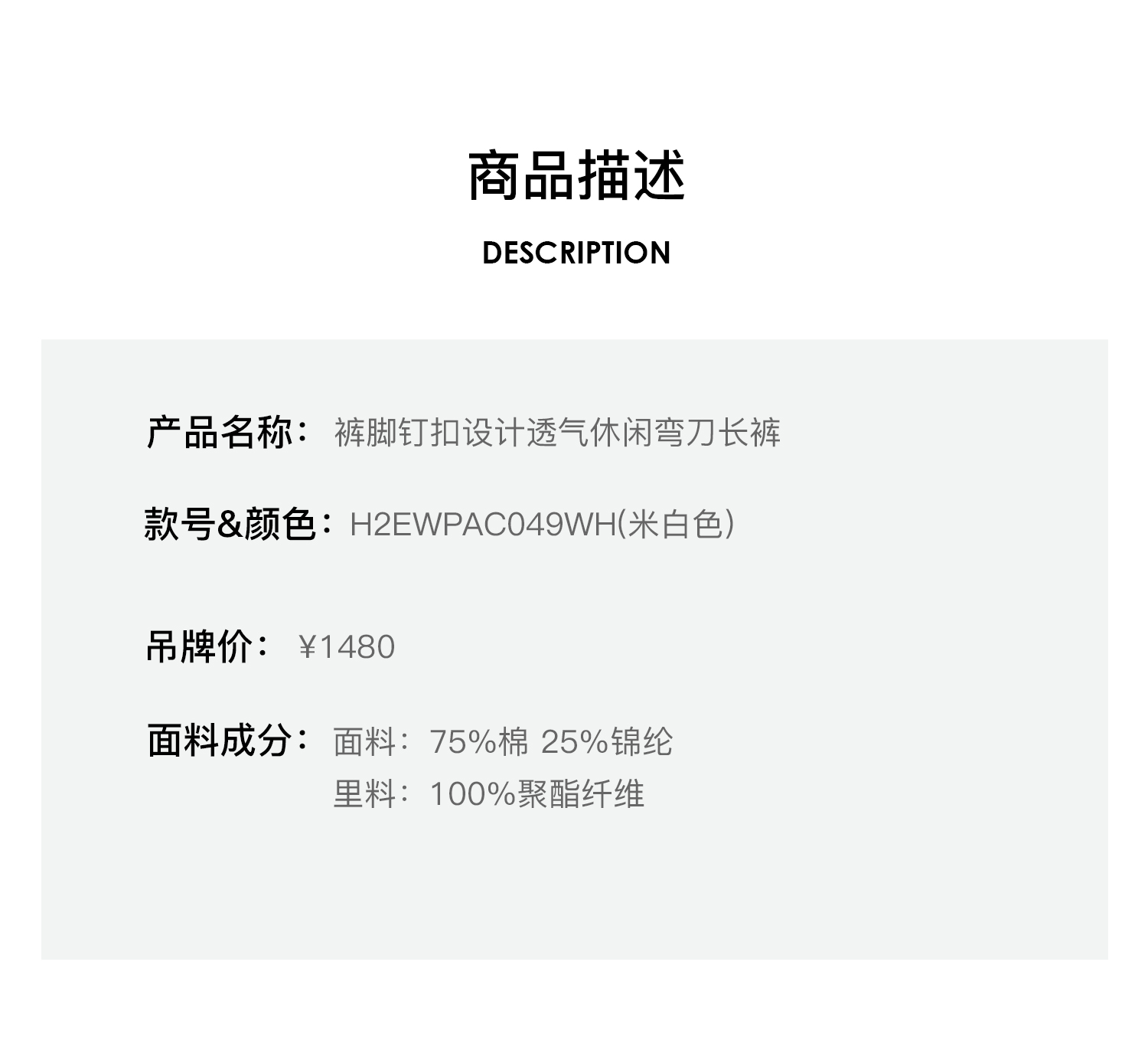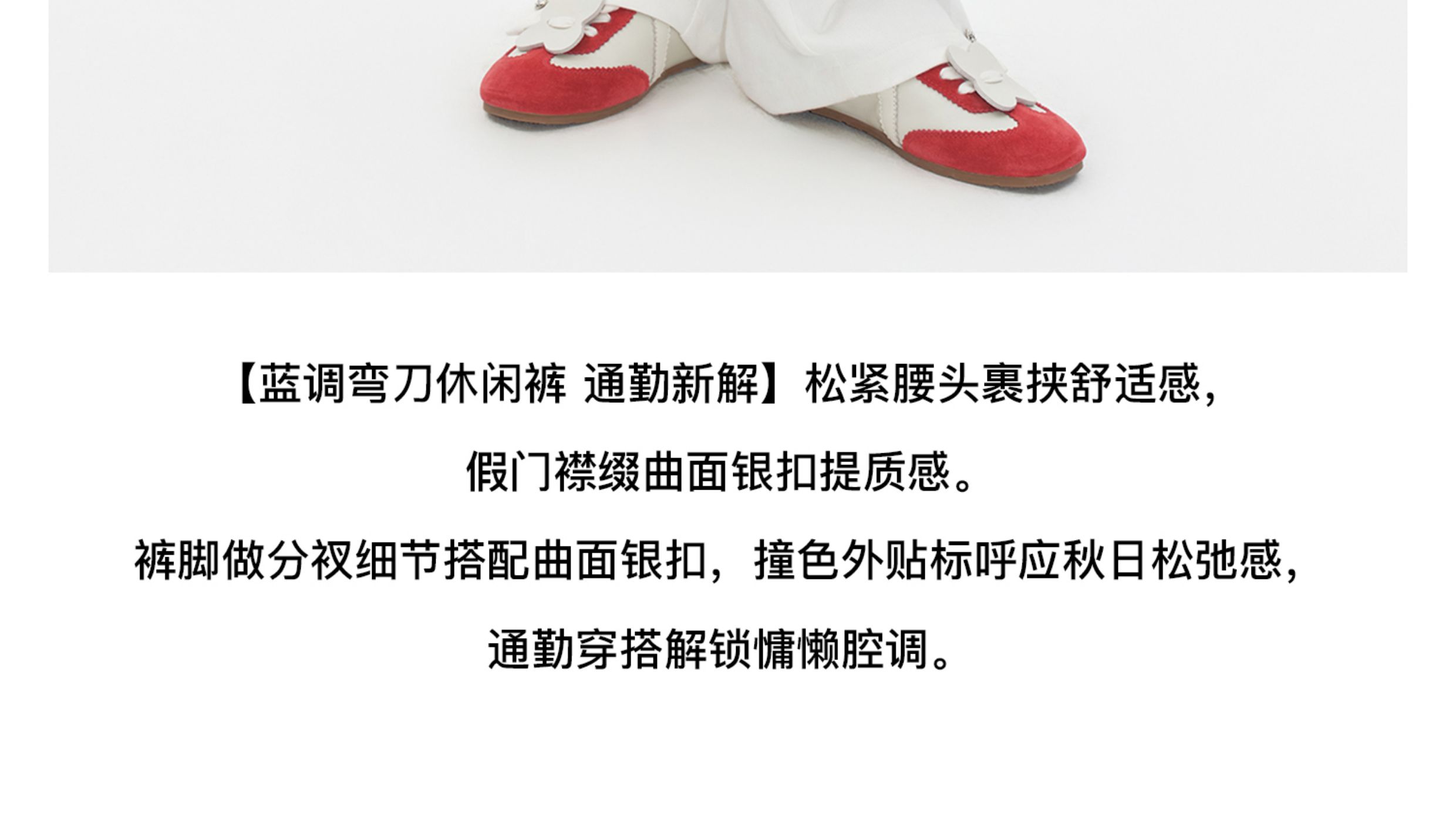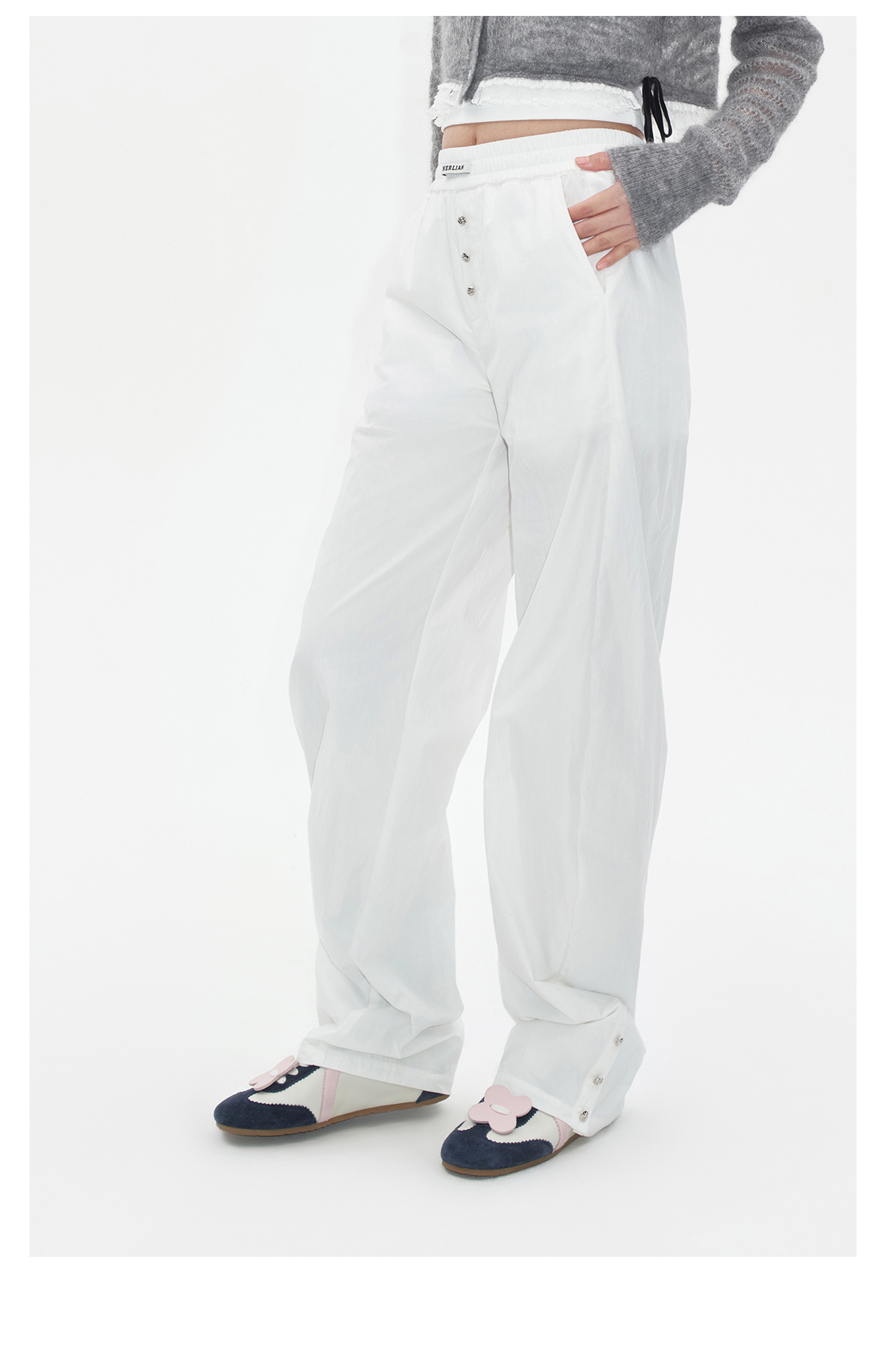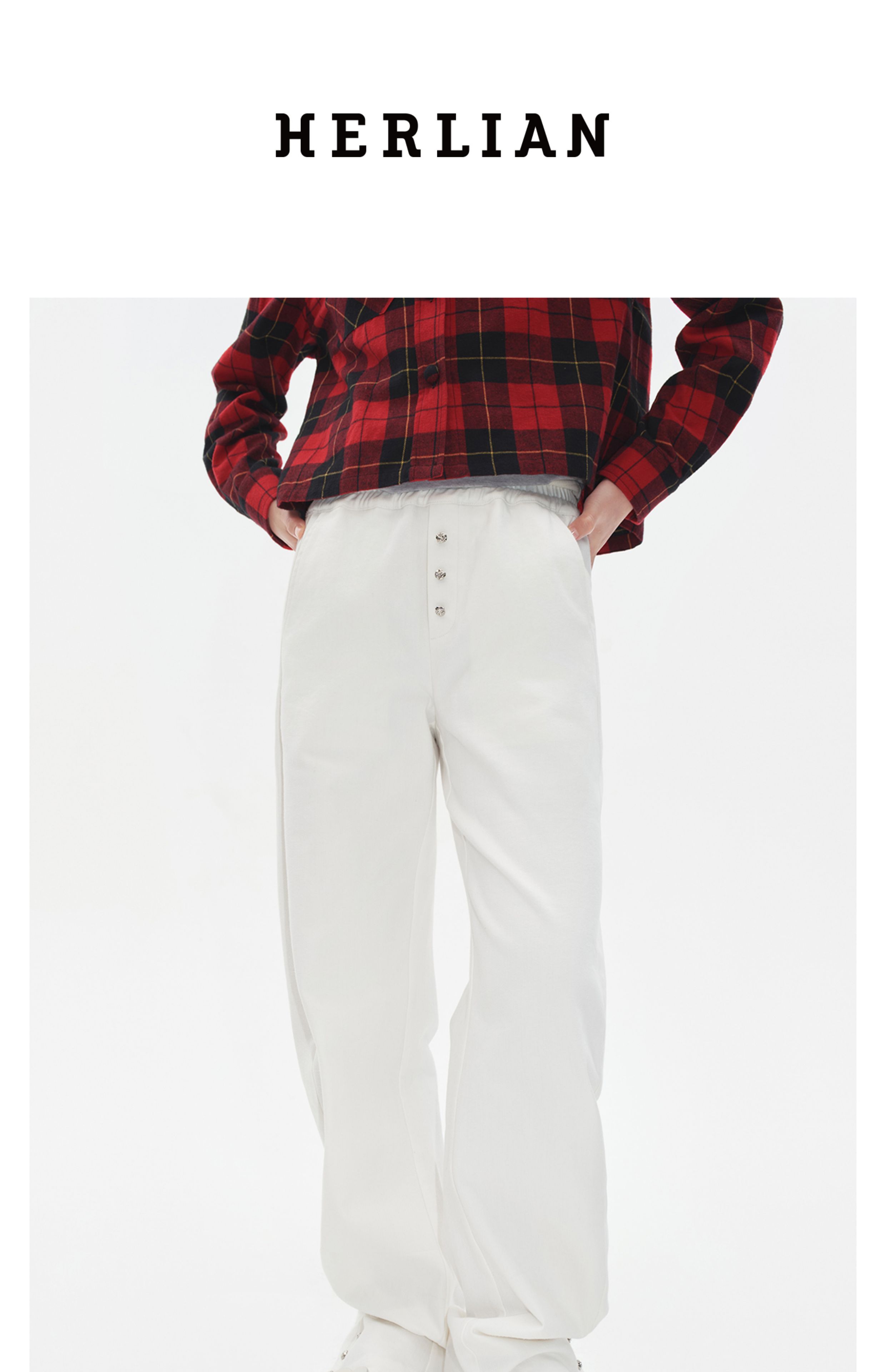 Herlian2025年秋季新品女士裤脚钉扣设计休闲弯刀长裤