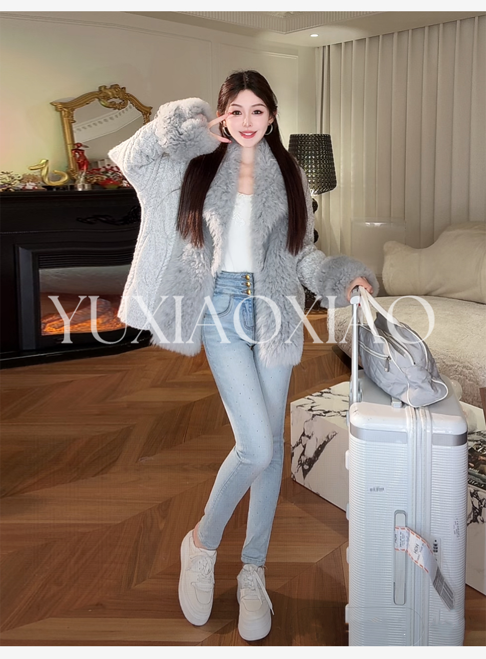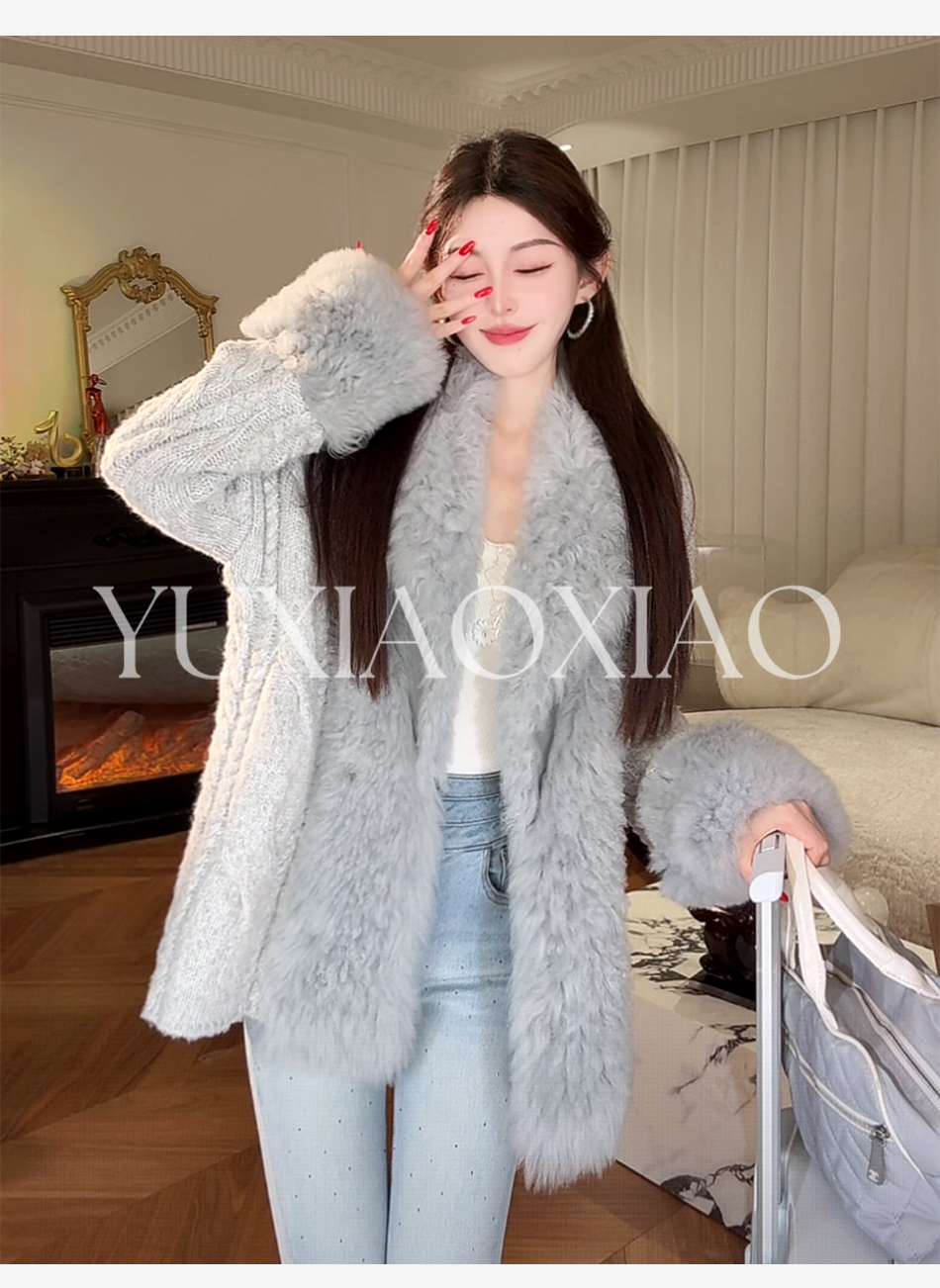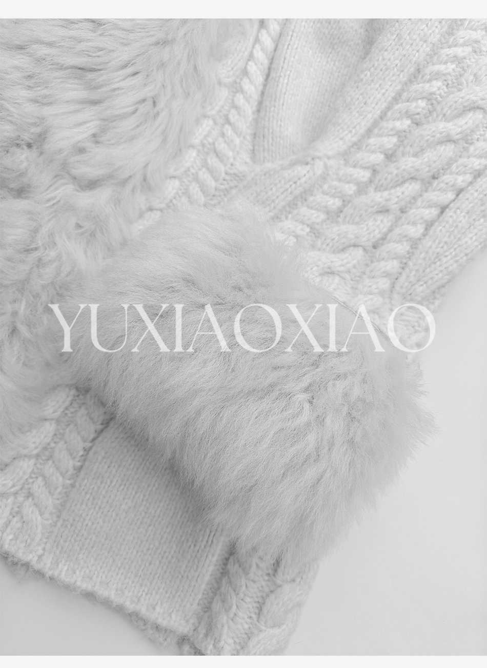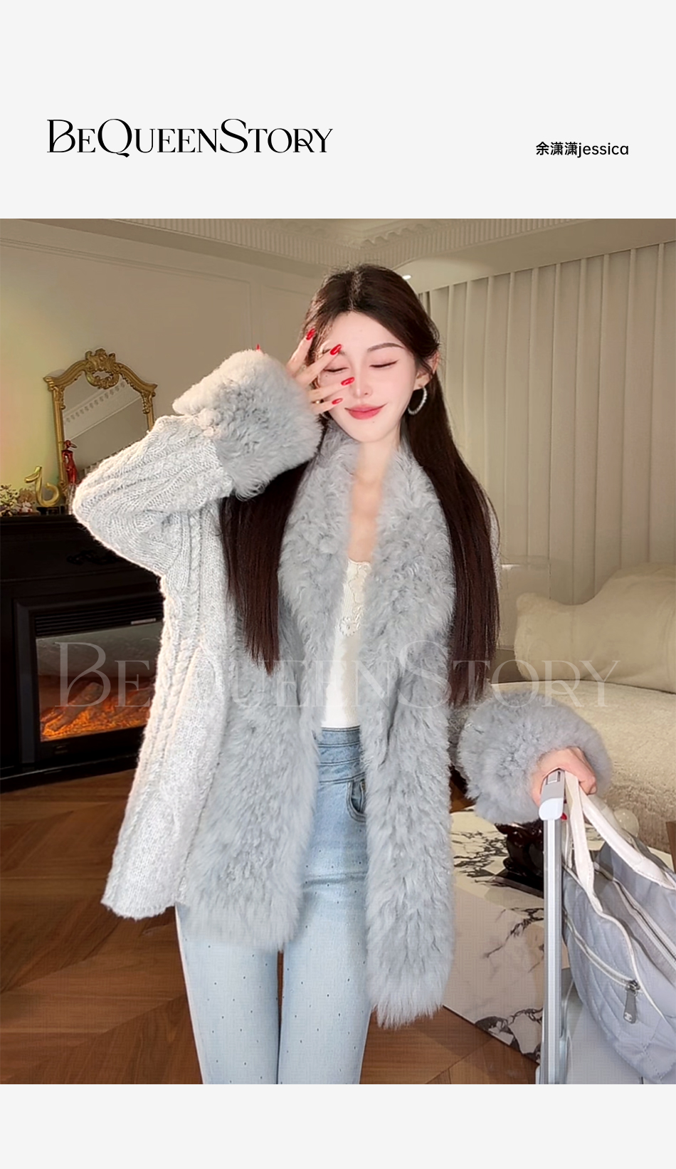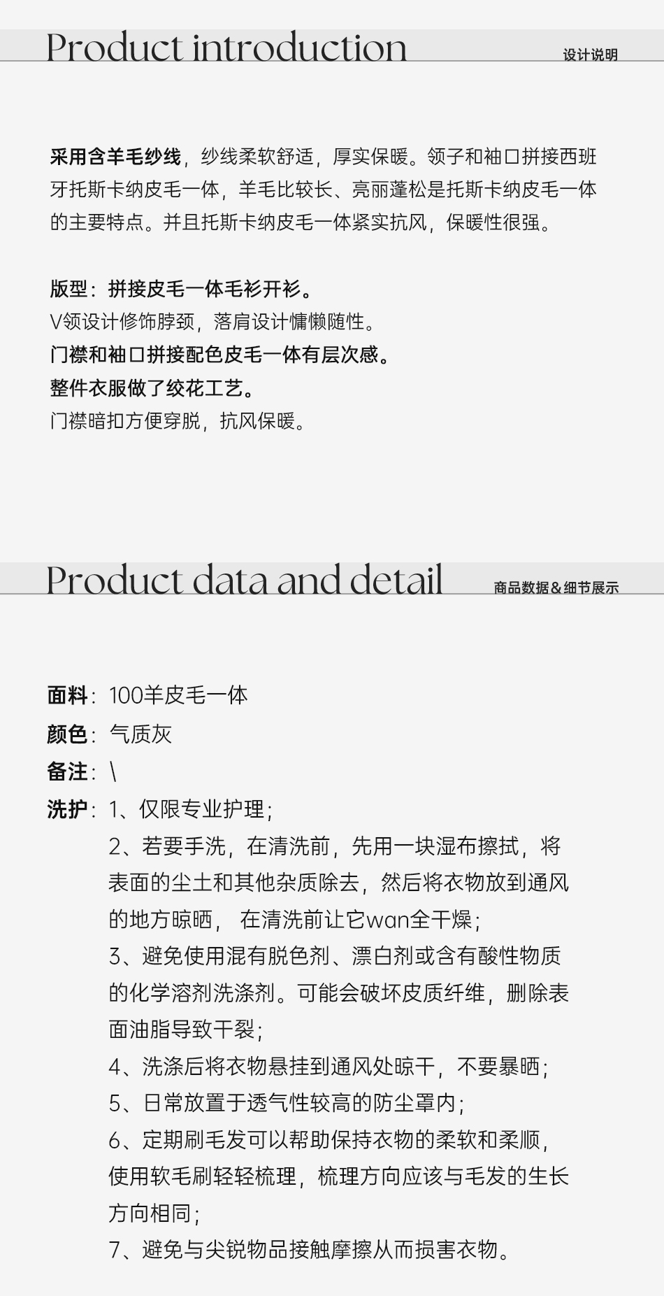 余潇潇【极地暖阳】羊毛混纺拼托斯卡纳皮毛一体V领慵懒感外套