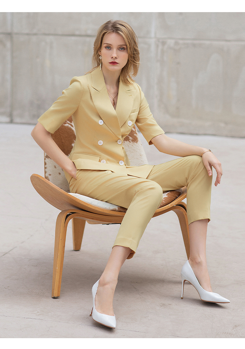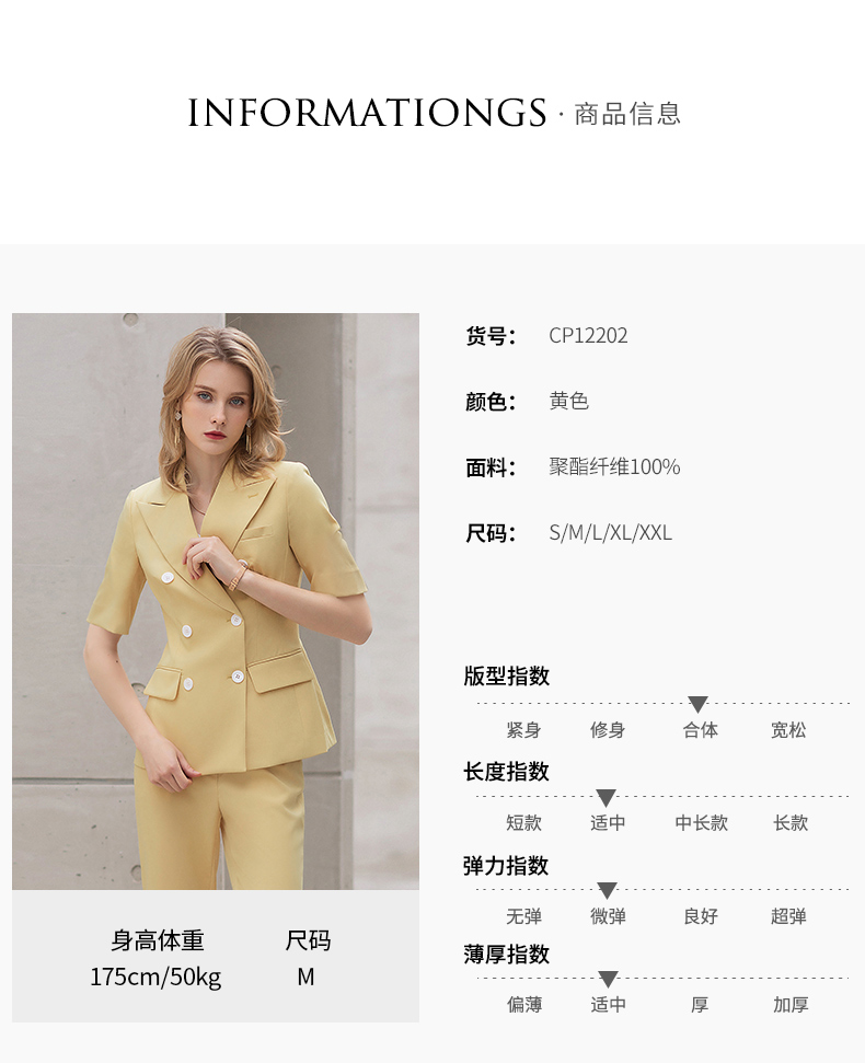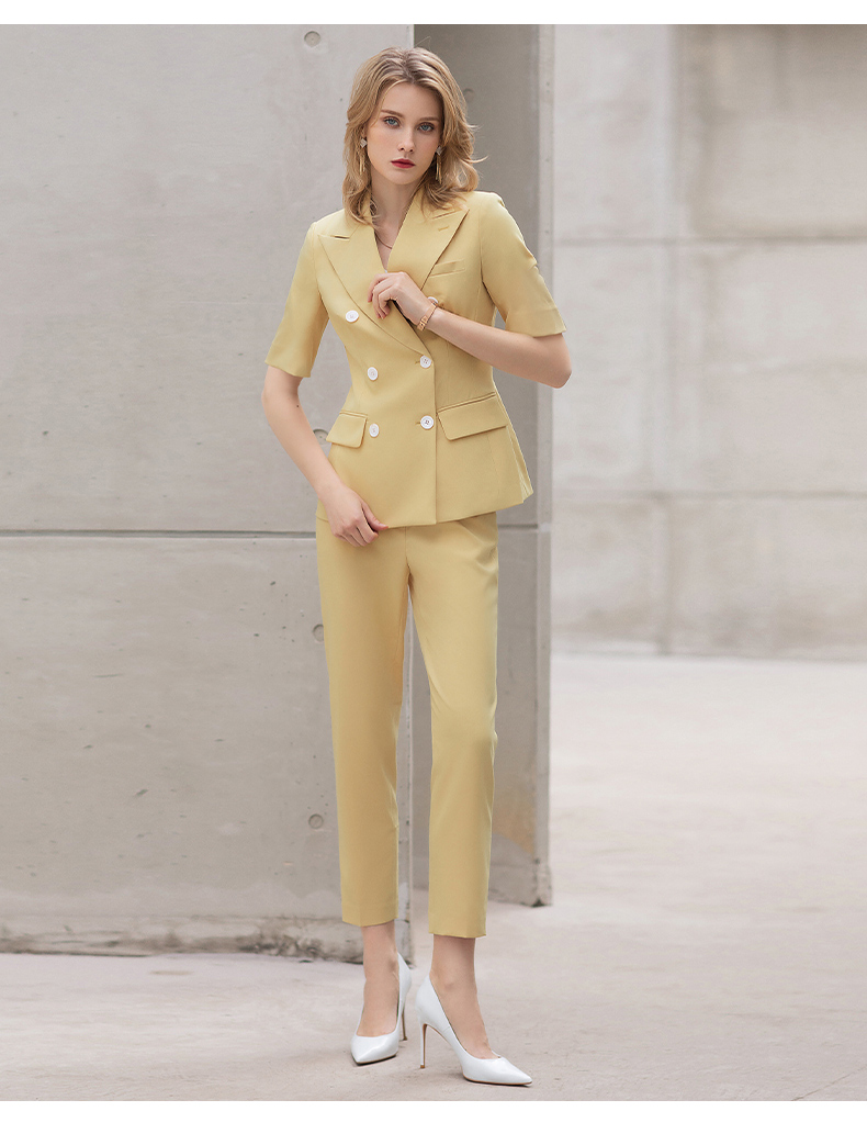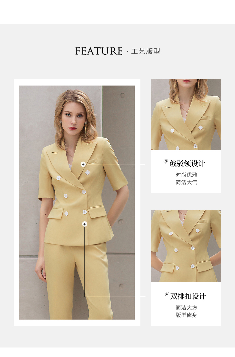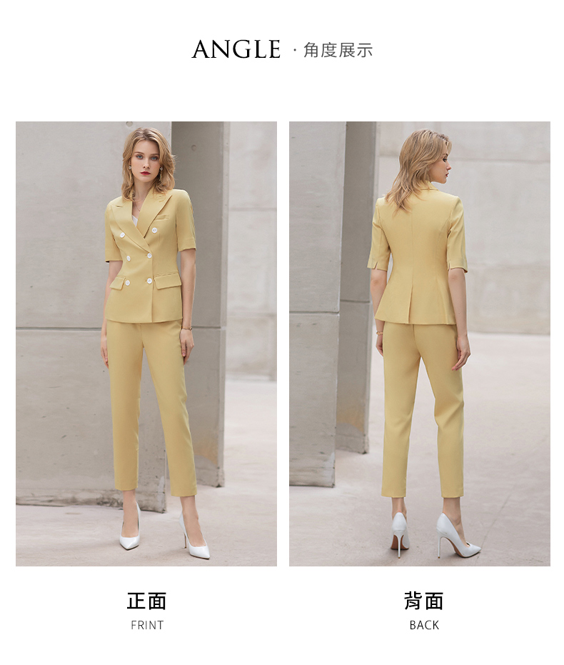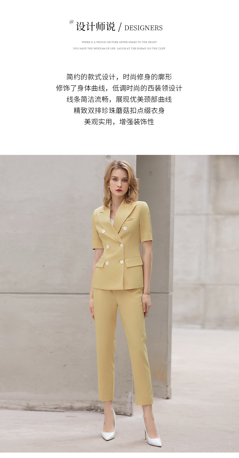 IWY/气质双排扣短袖西装套装女新款夏季薄款高端美容院上班工作服 CP12202