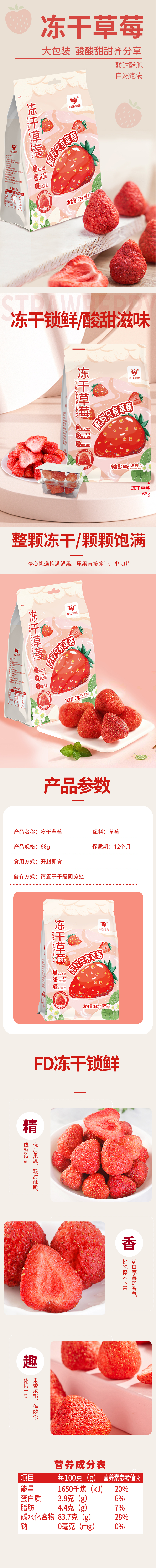 咪go鹦鹉 原果冻干草莓68g