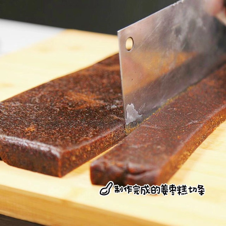 姜枣糕配料干净,由红枣63%,姜20%,黑糖9%,阿胶3%,淀粉3%,黄油2%组成,再无其他