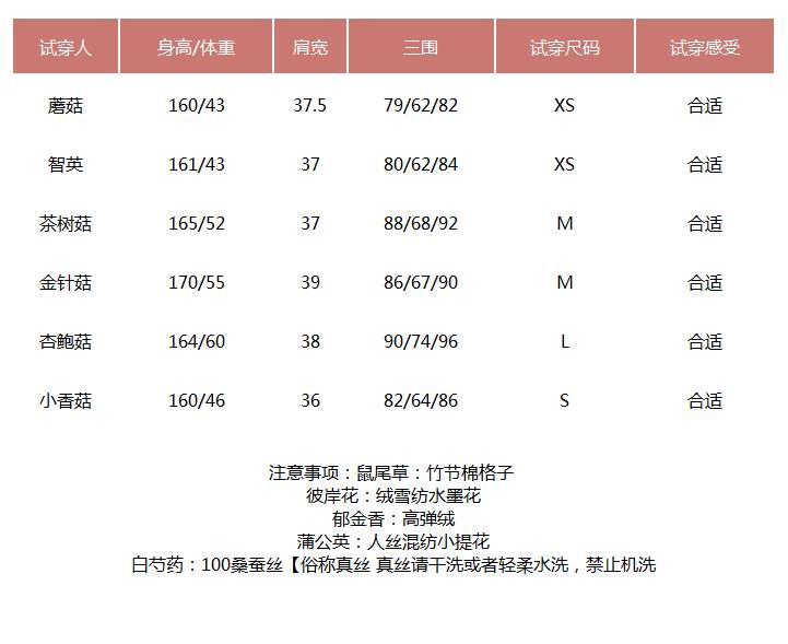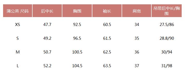 提醒:尺码是纯手工平铺测量,可能存在1-3CM的误差属于正常范围!试穿表格,仅供参考!