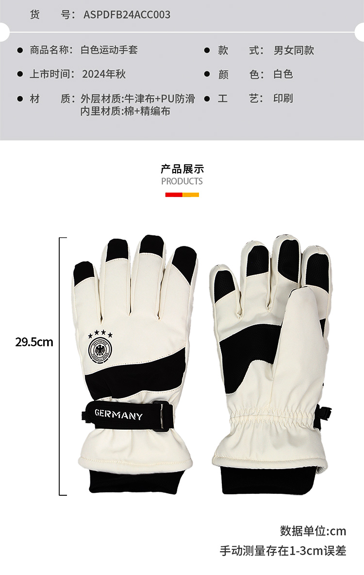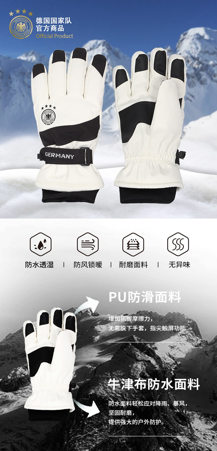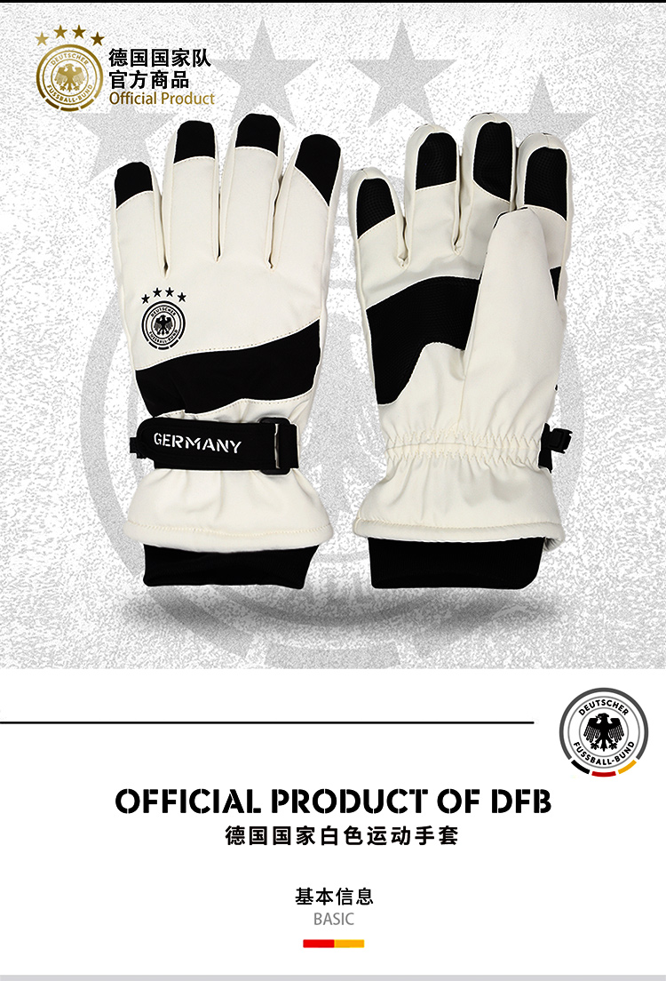 【官方正版】德国国家队 | 白色运动手套户外运动防水防滑防寒保暖牛津布加绒棉球迷用品