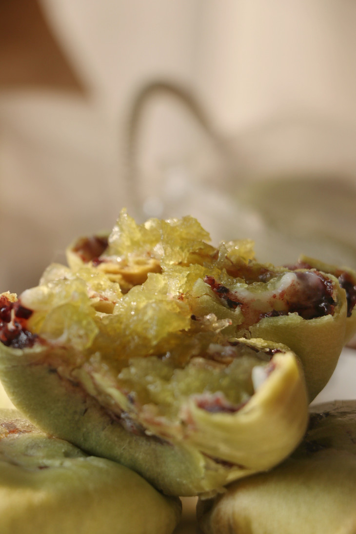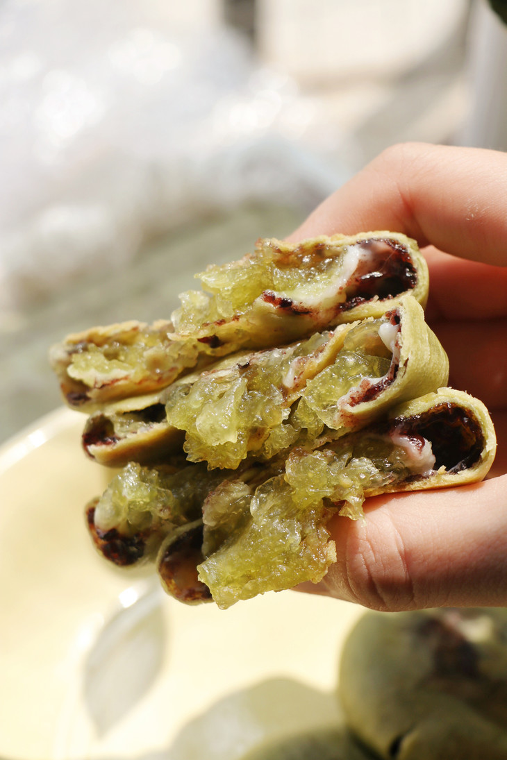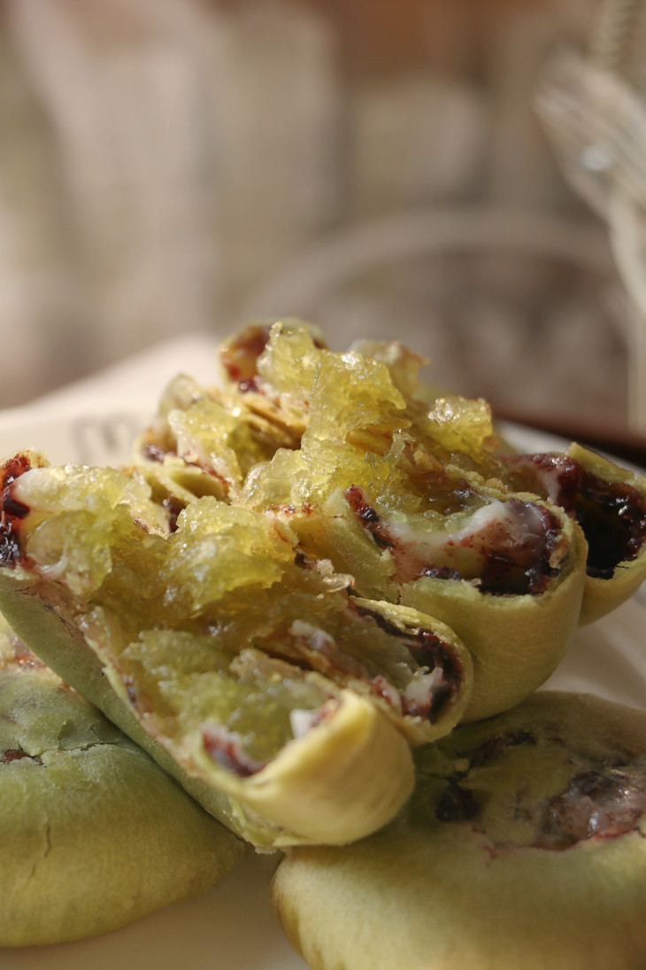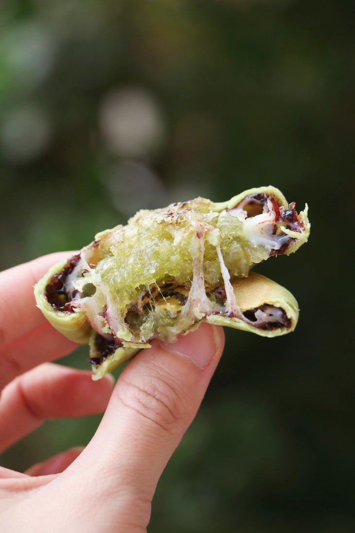 ✅特调四重內馅 外层小麦酥皮,二层裹着抹茶豆沙 三层夹着会拉丝的雪媚娘最内满满的龙井茶馅 轻咬一口,茶香与酥香层层递进,缓缓迸发