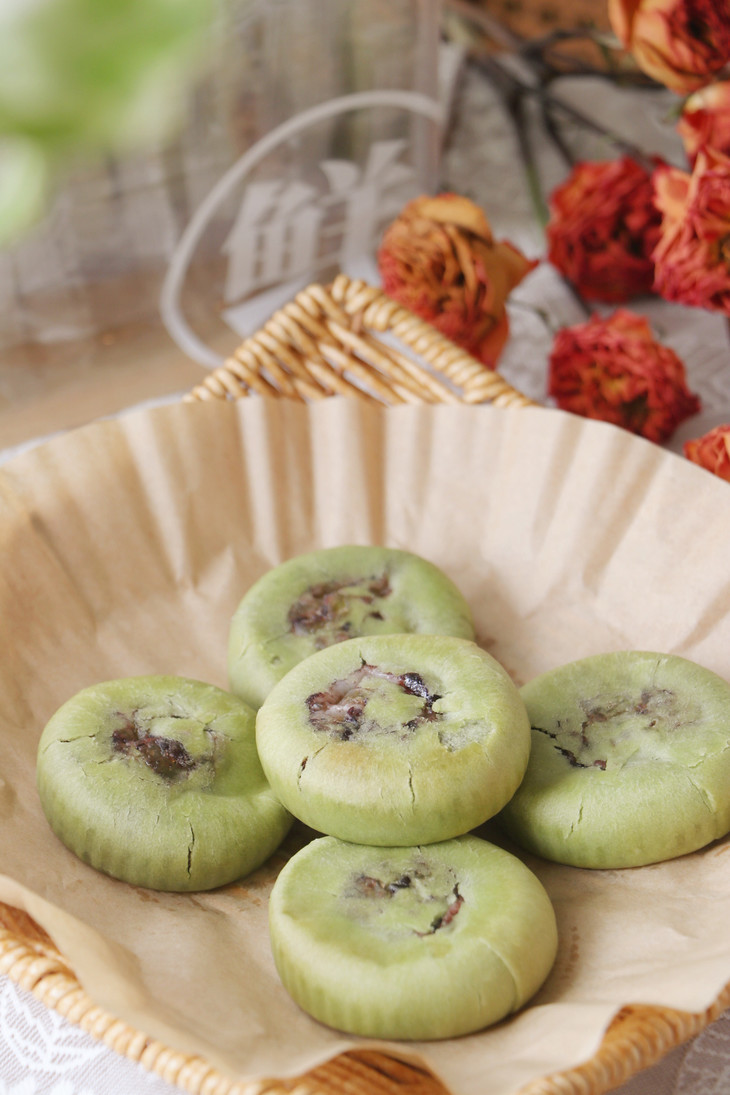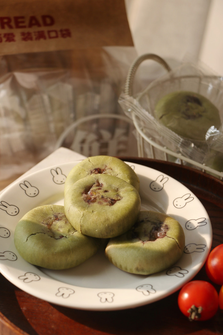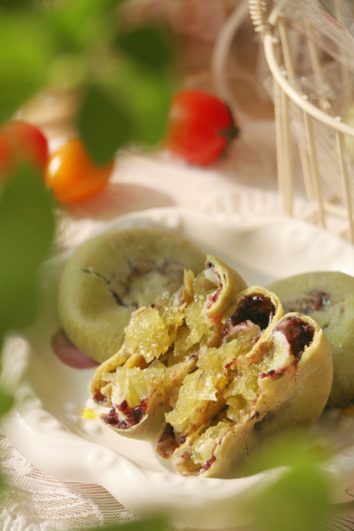 龙井八珍饼的制作过程繁琐精细 选用优质龙井茶叶🍵 再经过研磨、筛分等工序 制成细腻的茶粉和小麦粉、麦芽糖等材料 混合搅拌后用植物油揉匀,并分成数个小份 再分别加入银耳,薏米,紫米,糯米,山药,莲子,黑芝麻、桑葚八珍馅料 搓成圆形造型后烘焙制作而成~