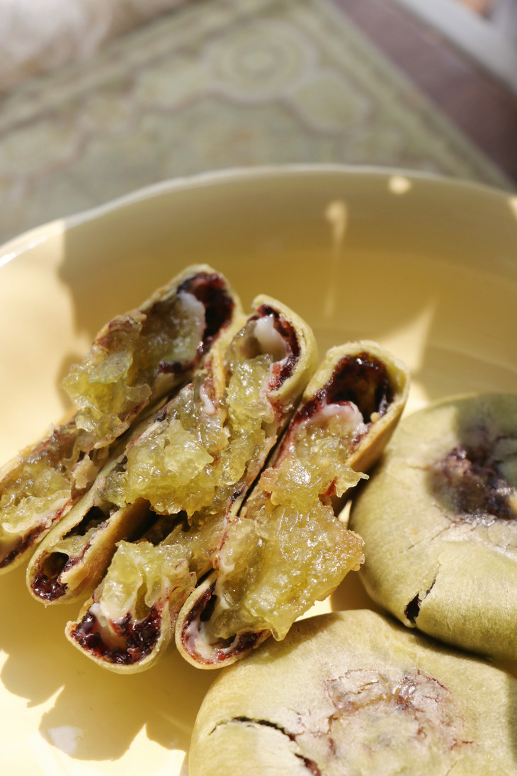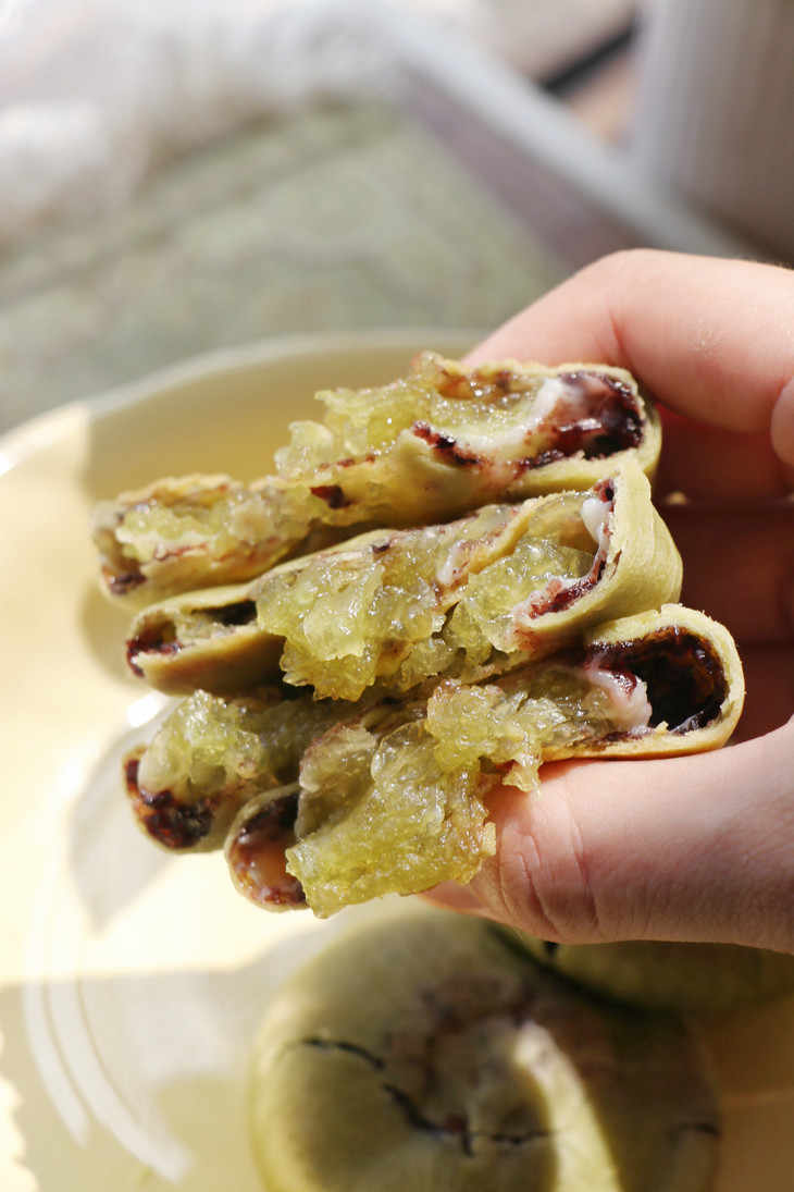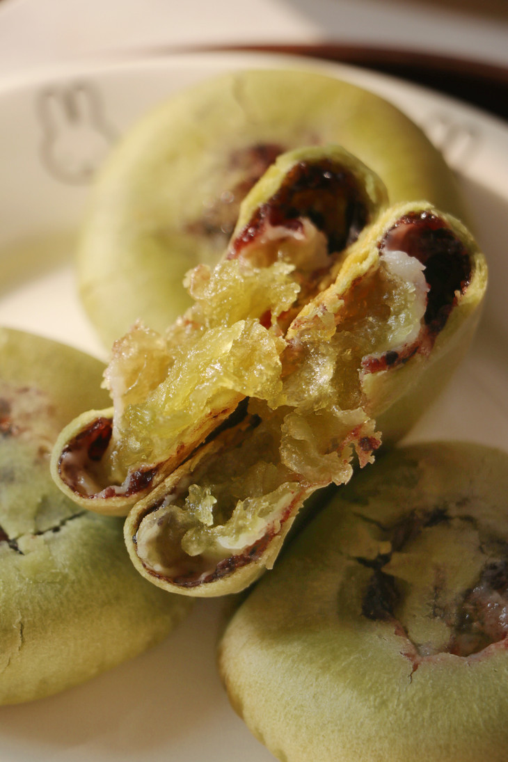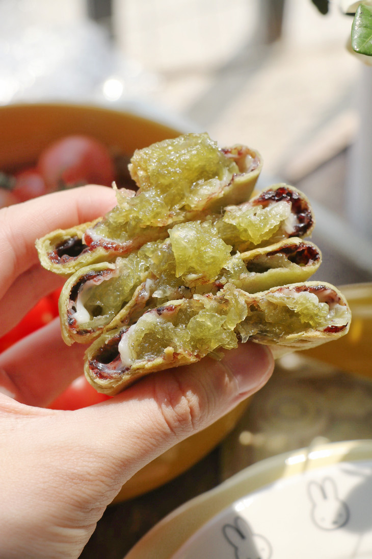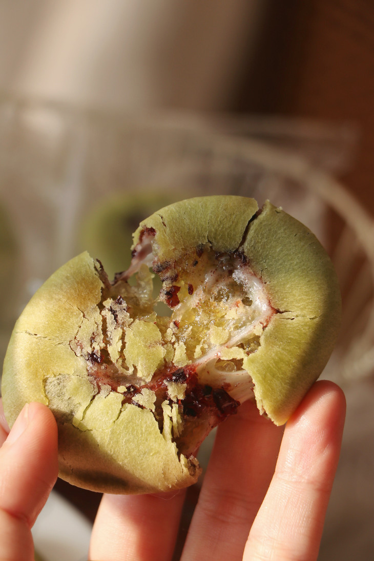 真的好吃到无语‼️ 别看它绿不拉几的 这是龙井八珍饼🍵馅料超丰富✅ 一口就入魂~真材实料扎实的很 龙井八珍馅+紫米馅+麻薯 最外面是抹茶酥皮,甜度刚刚好💗 很清甜,巨巨巨能拉丝~ 龙井的清、八珍的润~ 像在舌尖下了一场江南的春雨💕