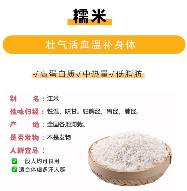 🔆糯米 糯米自带温润绵密的香甜口感 是中式点心里的“软糯担当” 它富含碳水、蛋白质及多种微量元素 不仅能为点心带来软糯弹牙的质地 绵密香甜,还能温和补充能量 暖胃又暖心,一口下去满是治愈满足~