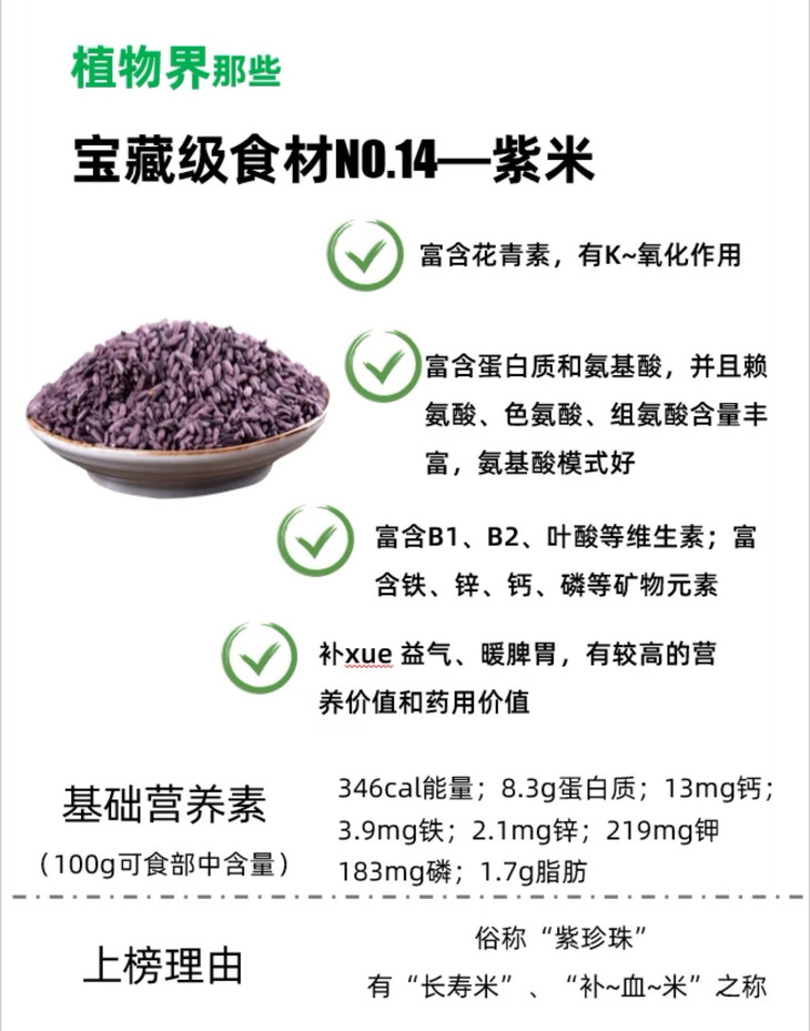 🔆紫米 色泽乌黑透亮的紫米,是营养与口感兼备的食材 它富含花青素、矿物质以及多种B族维生素 营养密度远超普通大米 既能为身体补充多元营养,又能增强饱腹感 其独特的软糯嚼劲 也让龙井八珍饼的口感层次更加丰富 吃起来更有满足感~
