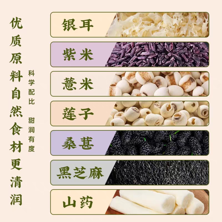 它的营养更是吊打普通零食‼️ 0蔗糖🤙富含膳食纤维与银耳胶质 依托药食同源食材的特性‼️ 还能健脾养胃,老人、小孩安心吃! 对注重“内调”的女性群体来说 银耳、黑芝麻、桑葚这些食材 还契合日常滋补需求,妥妥的“养雌”“养胃”优选!