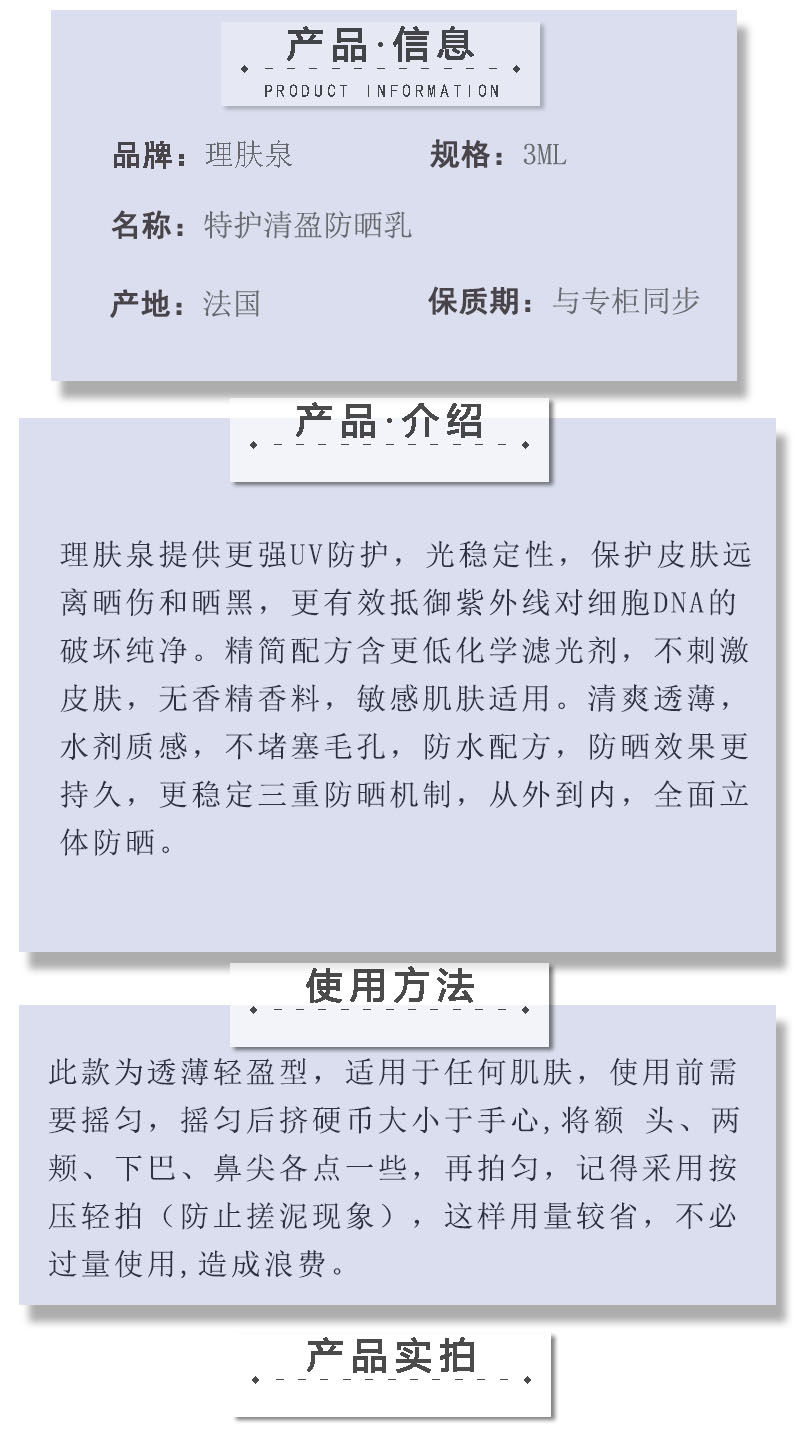 【爆款超低价预售 急单慎拍】理肤泉特护清盈防晒乳3ml SPF50 23.8月