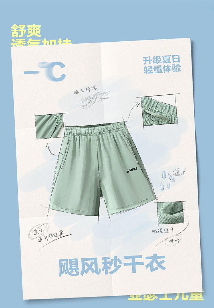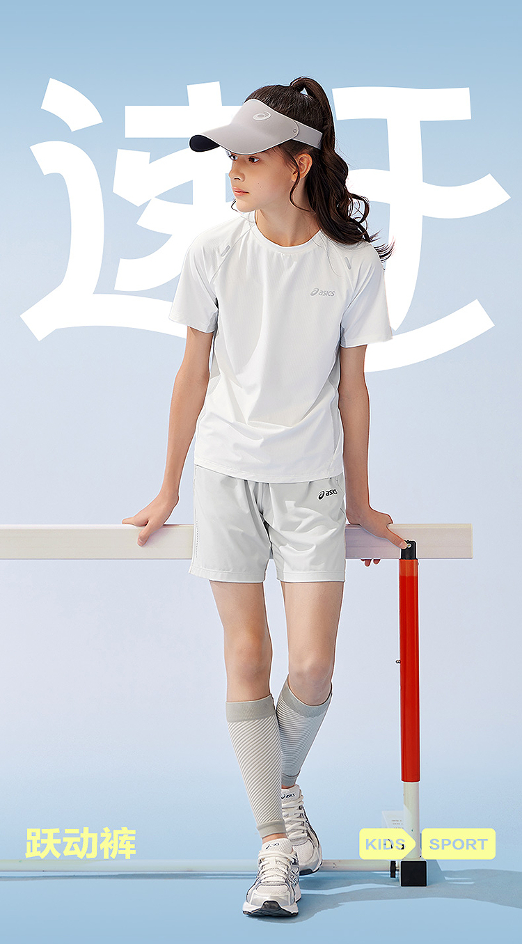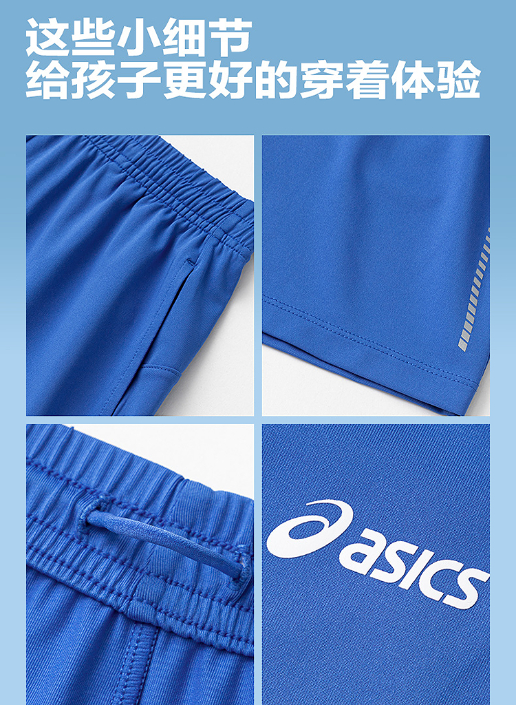 ASICS/亚瑟士童装2025年夏季新款运动吸湿速干针织短裤3M印花设计