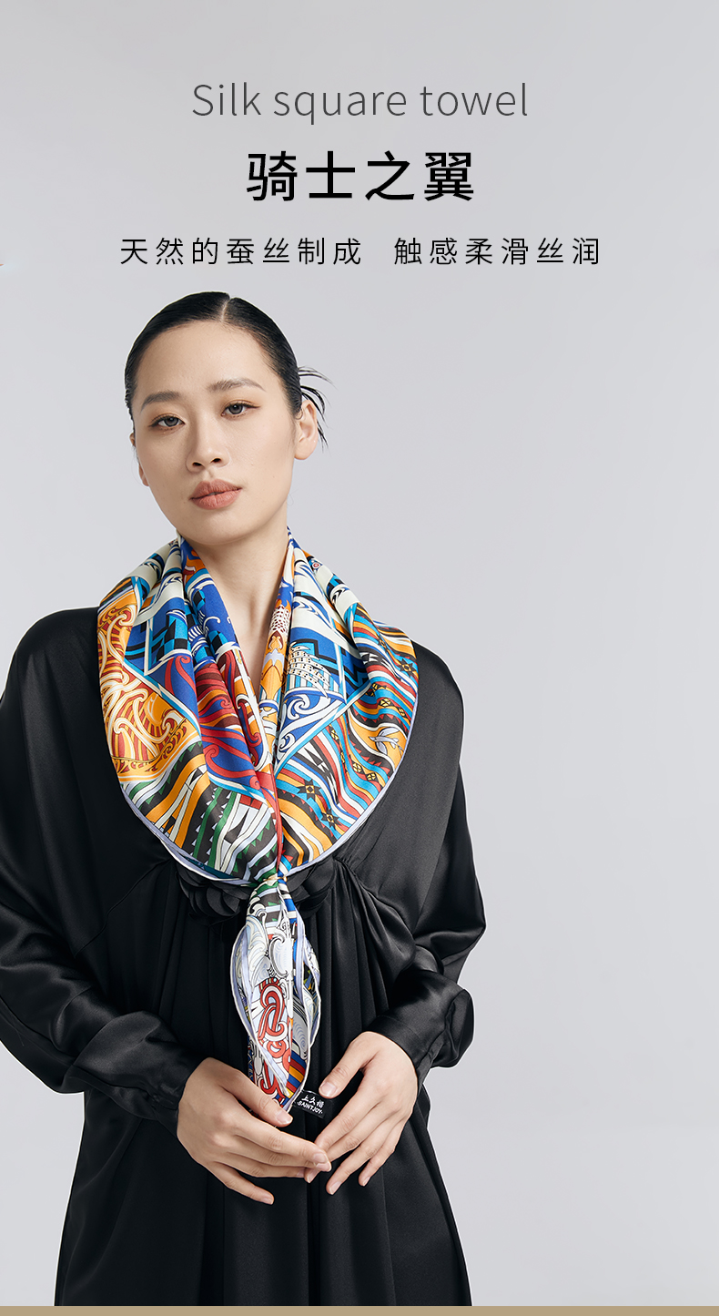 SAINTJOY/上久楷真丝方巾 双面印花真丝方巾 骑士之翼 FJS23066