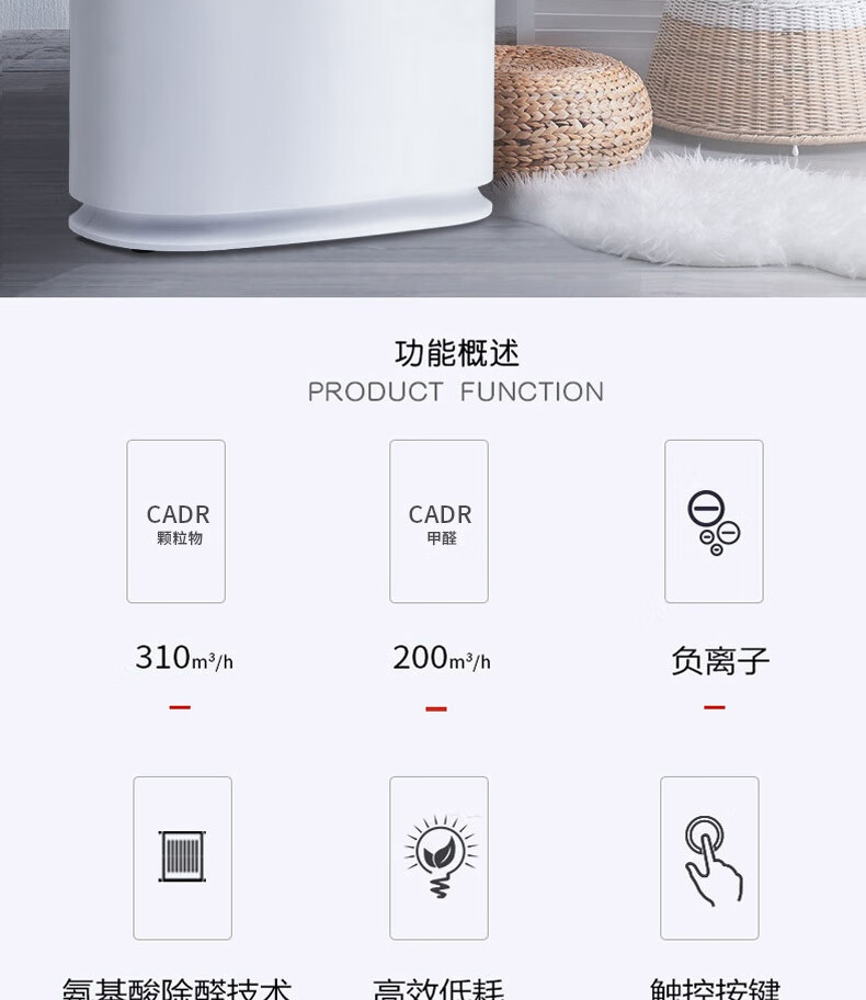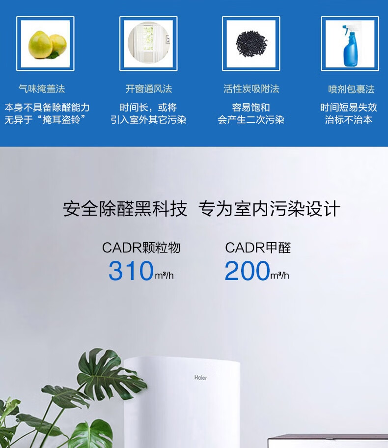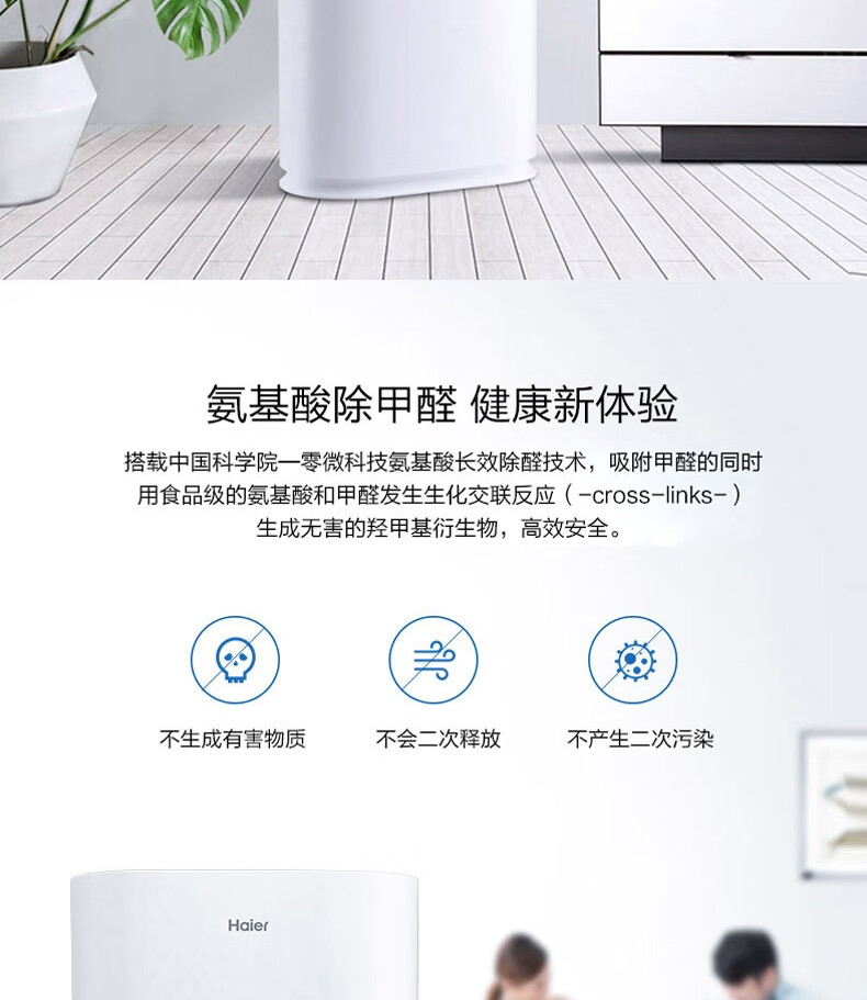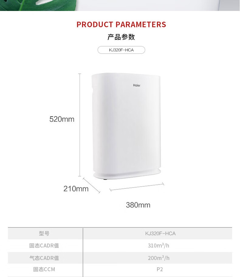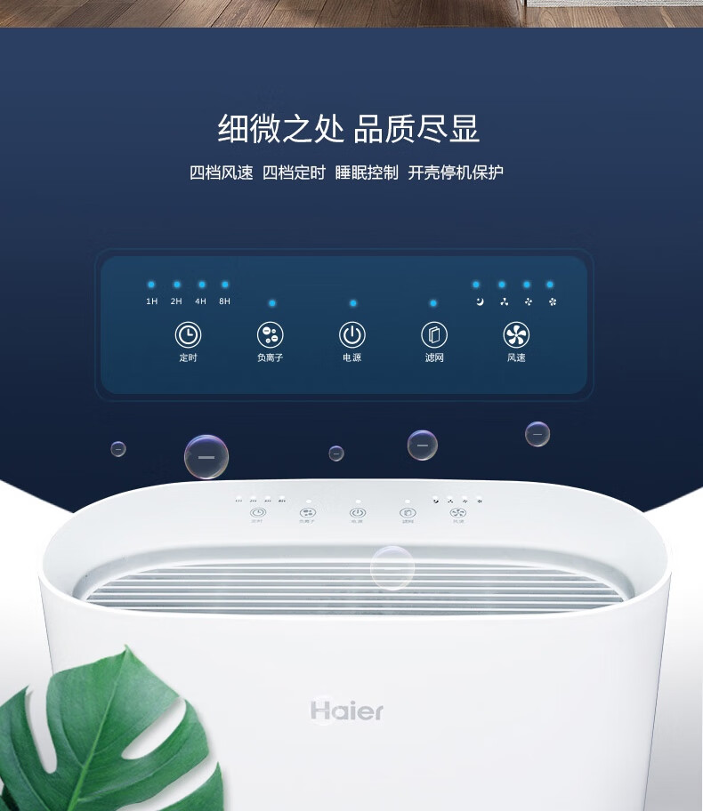 海尔空气净化器 KJ320F-HCA 氨基酸除醛 触控按键 滤网更换提示 4档定时 除甲醛除异味除二手烟[白色]