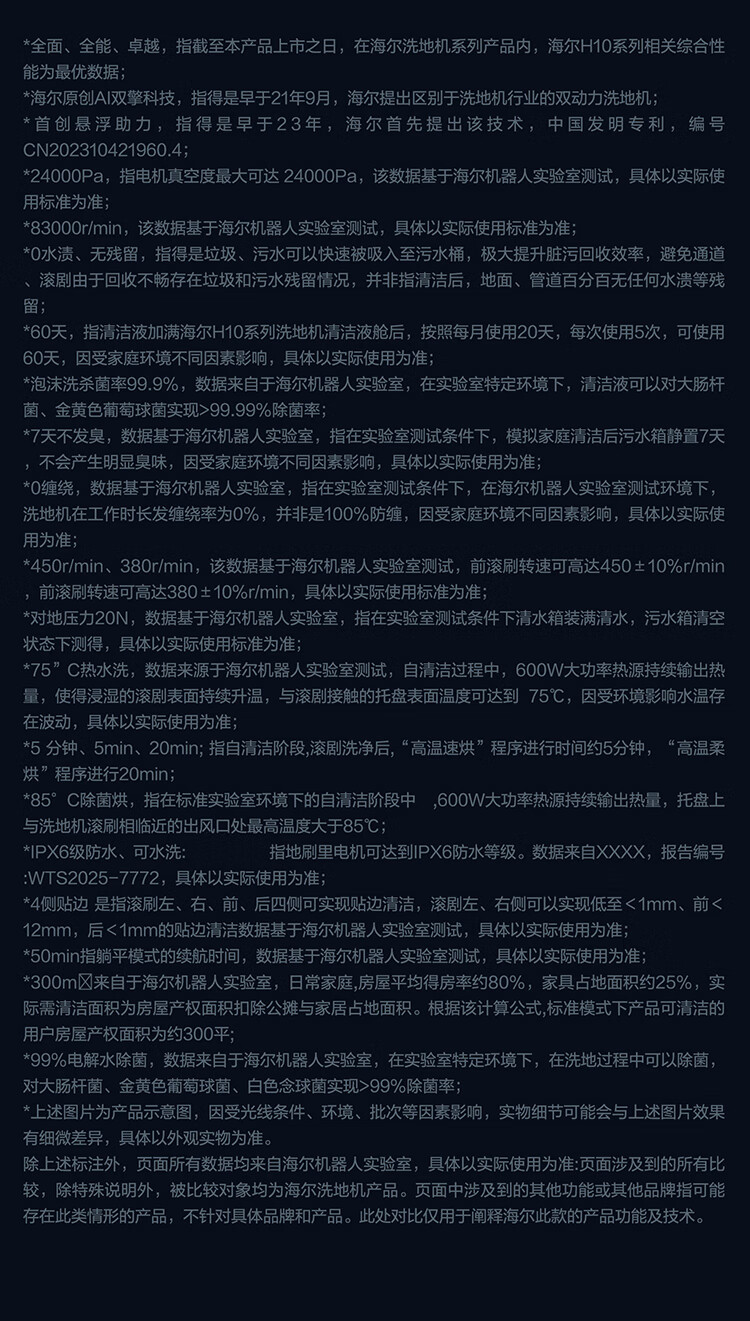 海尔洗擦一体机H10【AI双刷泡沫洗地 0缠毛 IPX6可水洗 180°躺平】自动清洗吸拖一体洗地机扫地机器人 商品缩略图0 海尔洗擦一体机H10【AI双刷泡沫洗地 0缠毛 IPX6可水洗 180°躺平】自动清洗吸拖一体洗地机扫地机器人 商品缩略图1 海尔洗擦一体机H10【AI双刷泡沫洗地 0缠毛 IPX6可水洗 180°躺平】自动清洗吸拖一体洗地机扫地机器人 商品缩略图2 海尔洗擦一体机H10【AI双刷泡沫洗地 0缠毛 IPX6可水洗 180°躺平】自动清洗吸拖一体洗地机扫地机器人 商品缩略图3 海尔洗擦一体机H10【AI双刷泡沫洗地 0缠毛 IPX6可水洗 180°躺平】自动清洗吸拖一体洗地机扫地机器人 商品缩略图4