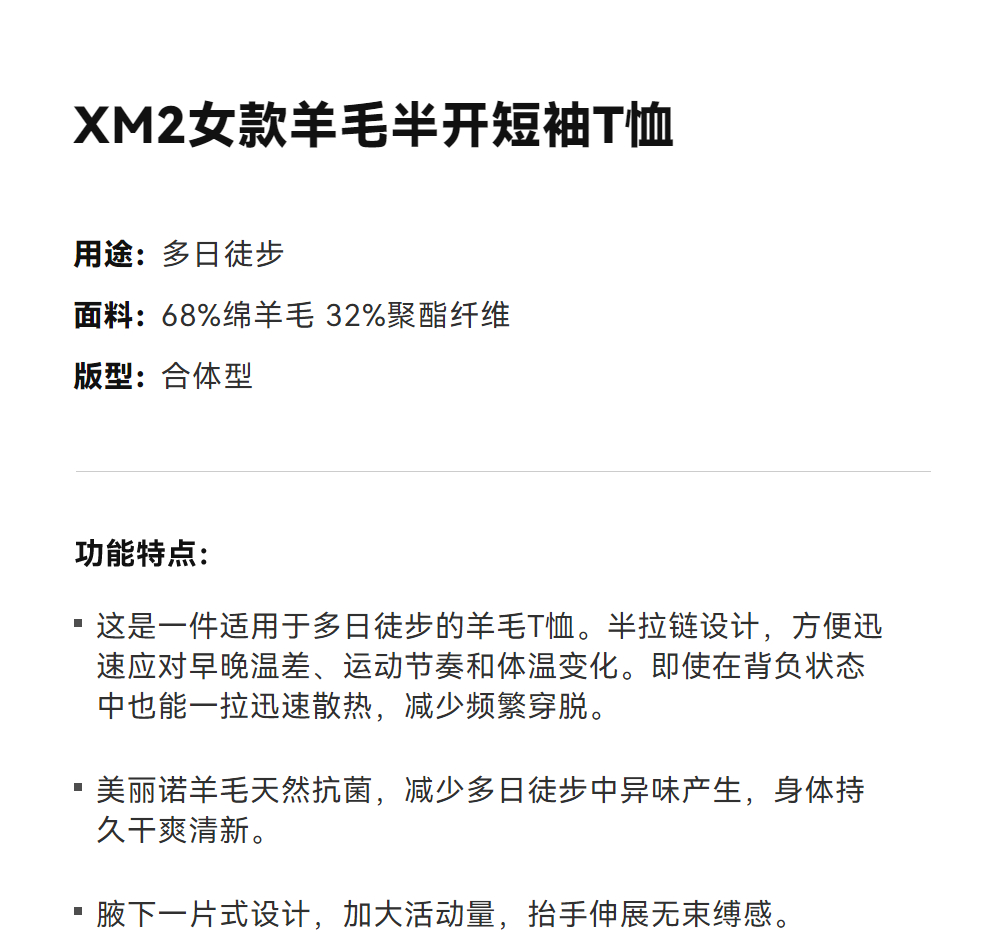 KAILAS凯乐石 XM2女款羊毛半开短袖T恤 KG2617272