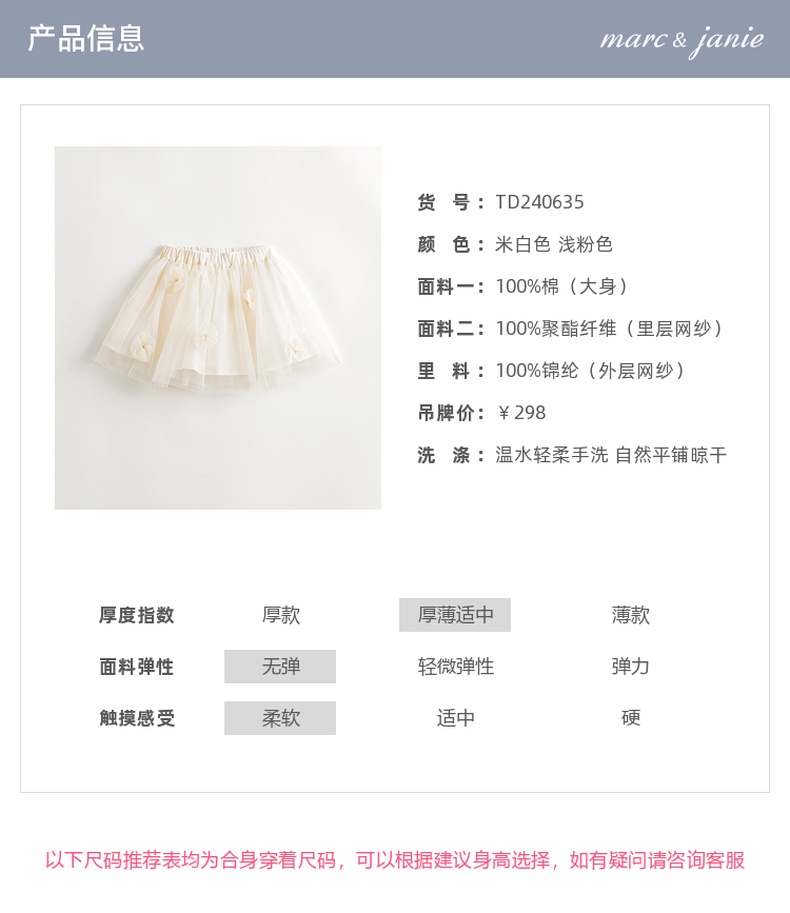 马克珍妮女童立体花朵网纱短裙半身裙儿童裙子2024夏装新款240635
