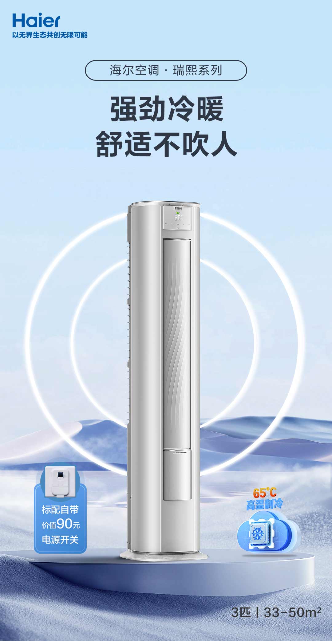 海尔(140192)家用空调KFR-50LW/A5FBB81U1强劲:跃频科技+超大风量,15s速冷30s速热;凉芯桥科技,65°C高温制冷不停机 舒适:雁阵式导风科技,一步不吹人。