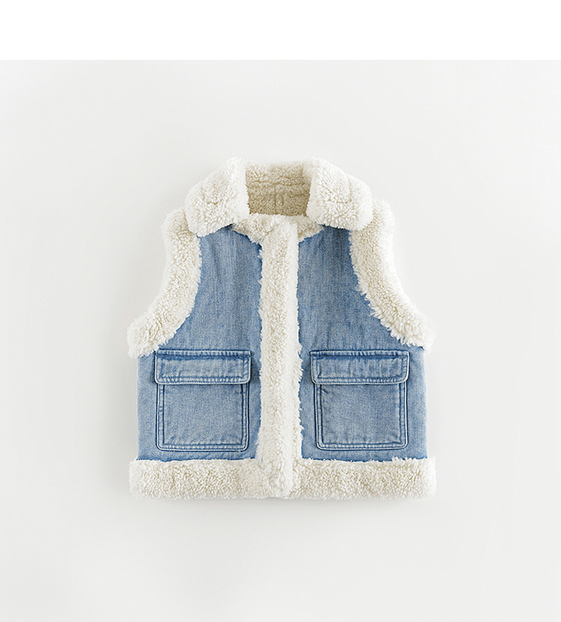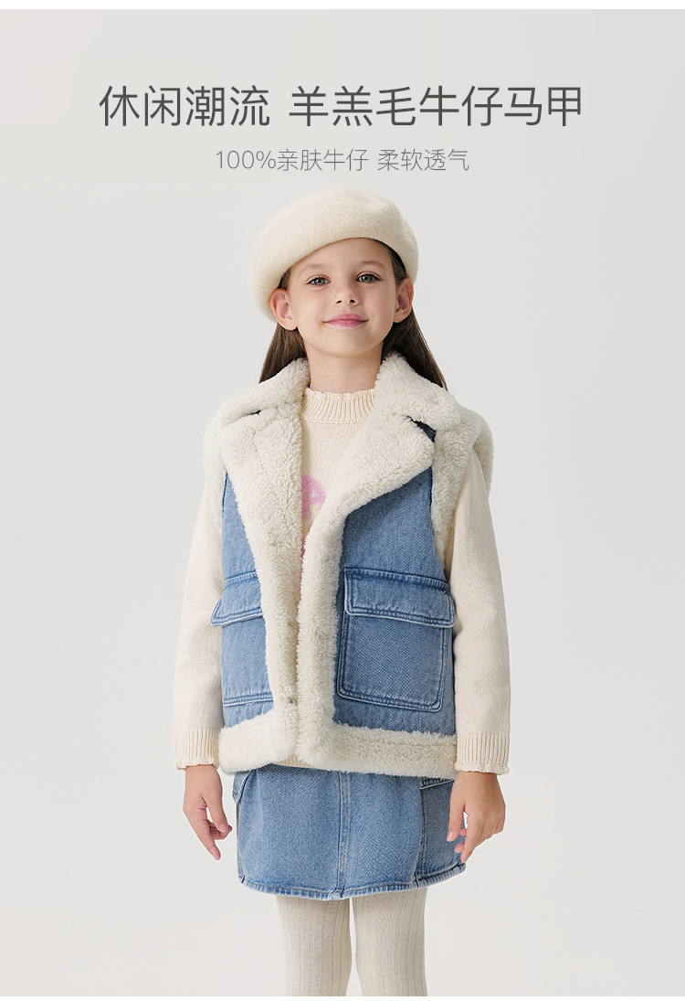 马克珍妮女童休闲潮流仿羊羔绒牛仔马甲儿童2024年秋冬新款241360