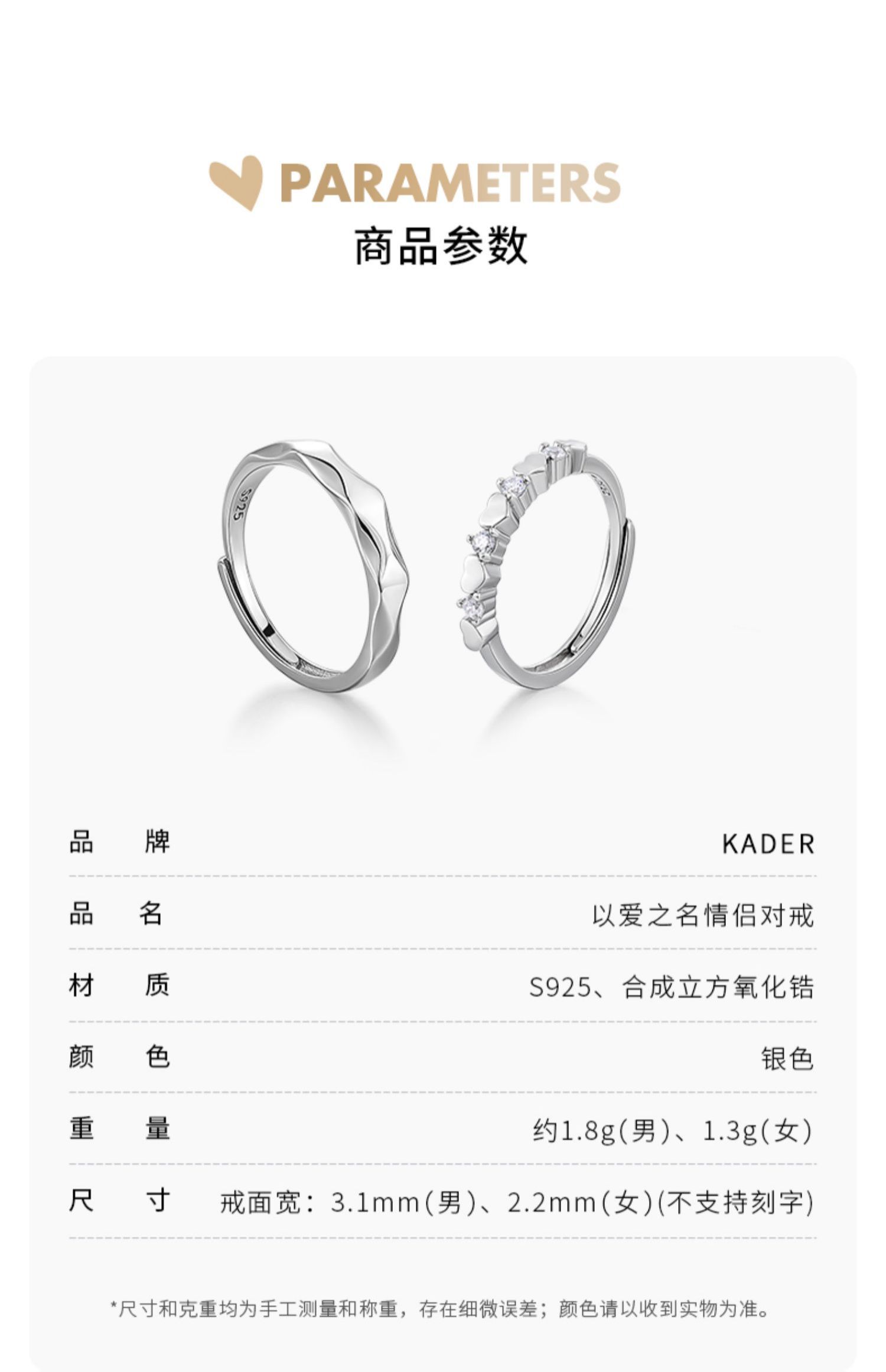 KADER卡蒂罗情侣单戒合集男女款925素圈戒指小众设计感生日礼物送女友
