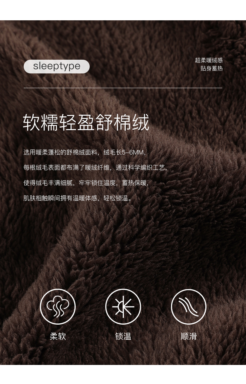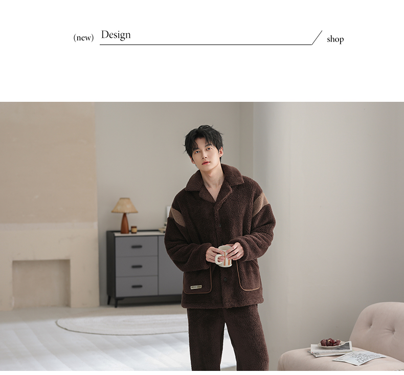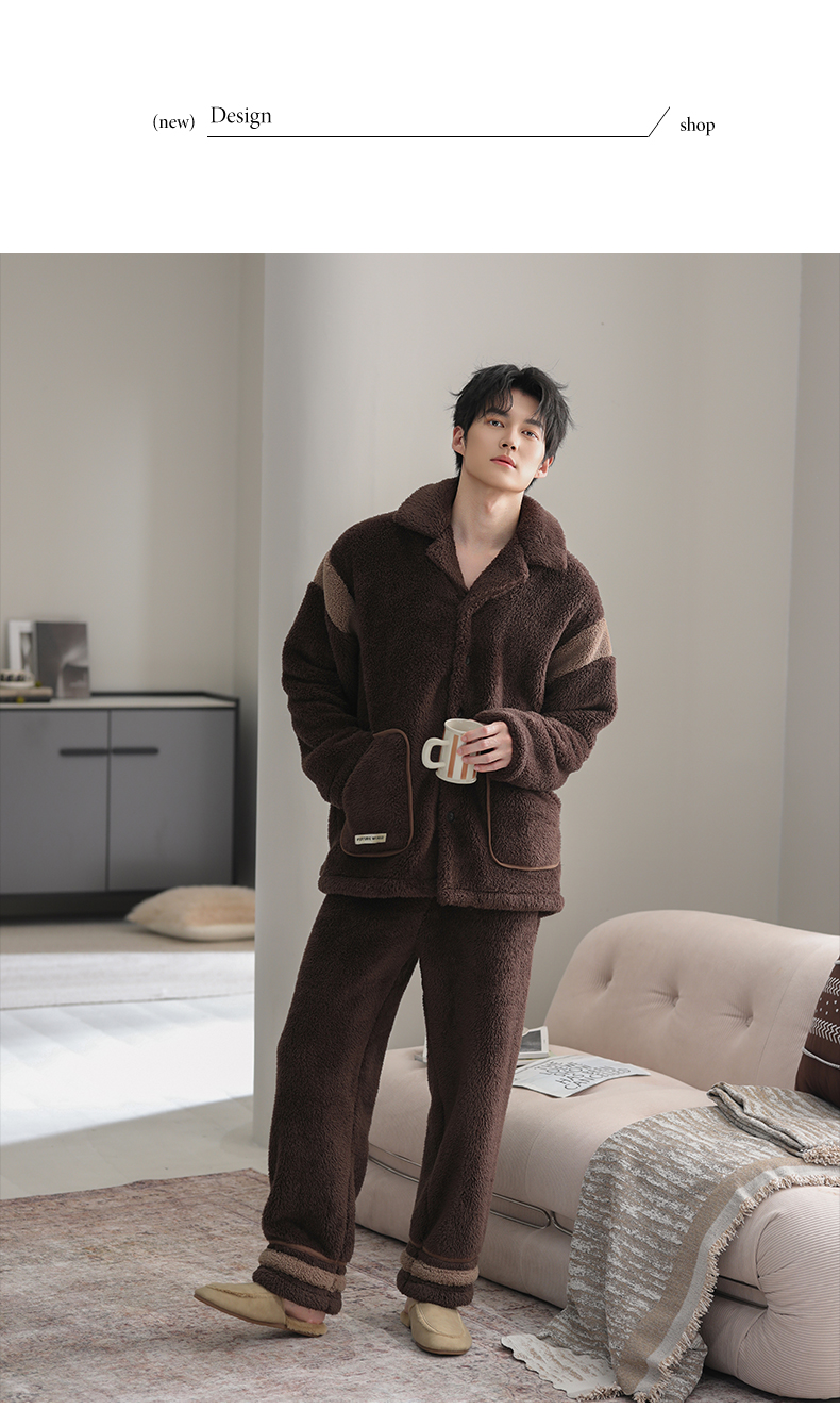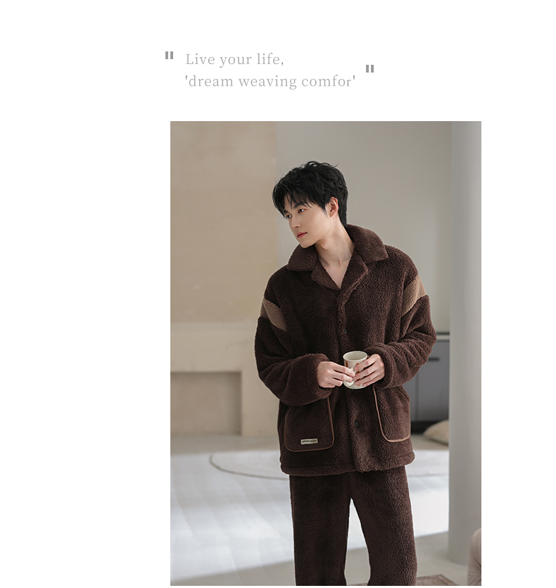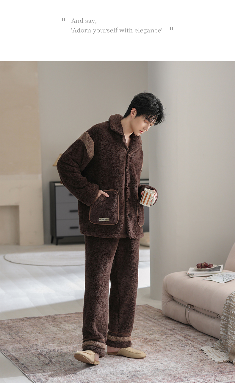 可人儿冬季男士保暖舒棉绒睡衣秋冬休闲翻领男款加厚珊瑚绒家居服