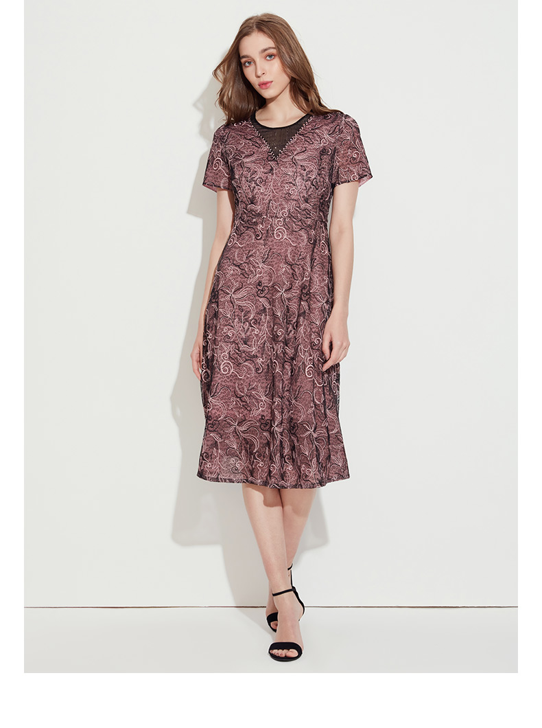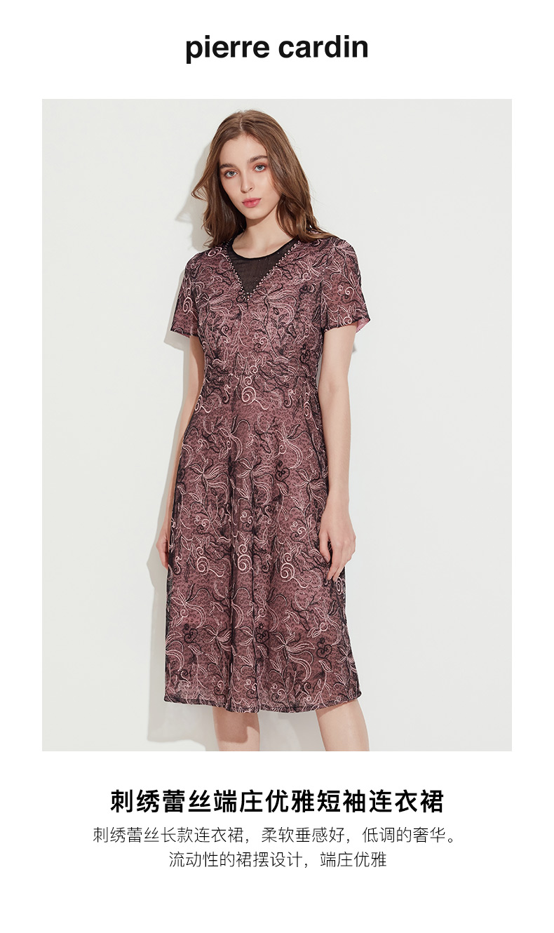 皮尔卡丹女装年夏季新款重工刺绣蕾丝连衣裙P1254D1072B0