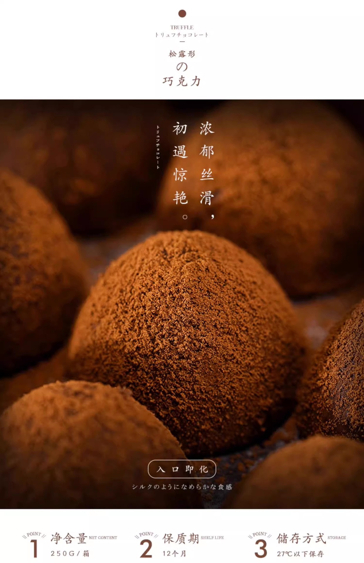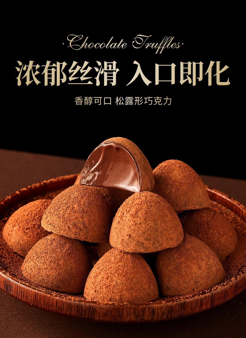 【香醇可口,松露形巧克力】轻咬云朵般的温柔,天鹅绒般丝滑的质地、带来入口即化的独特口感,休闲零食糖果年货QQ