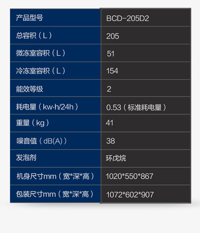 晶弘·冰柜 双温柜 205L BCD-205D2/白色