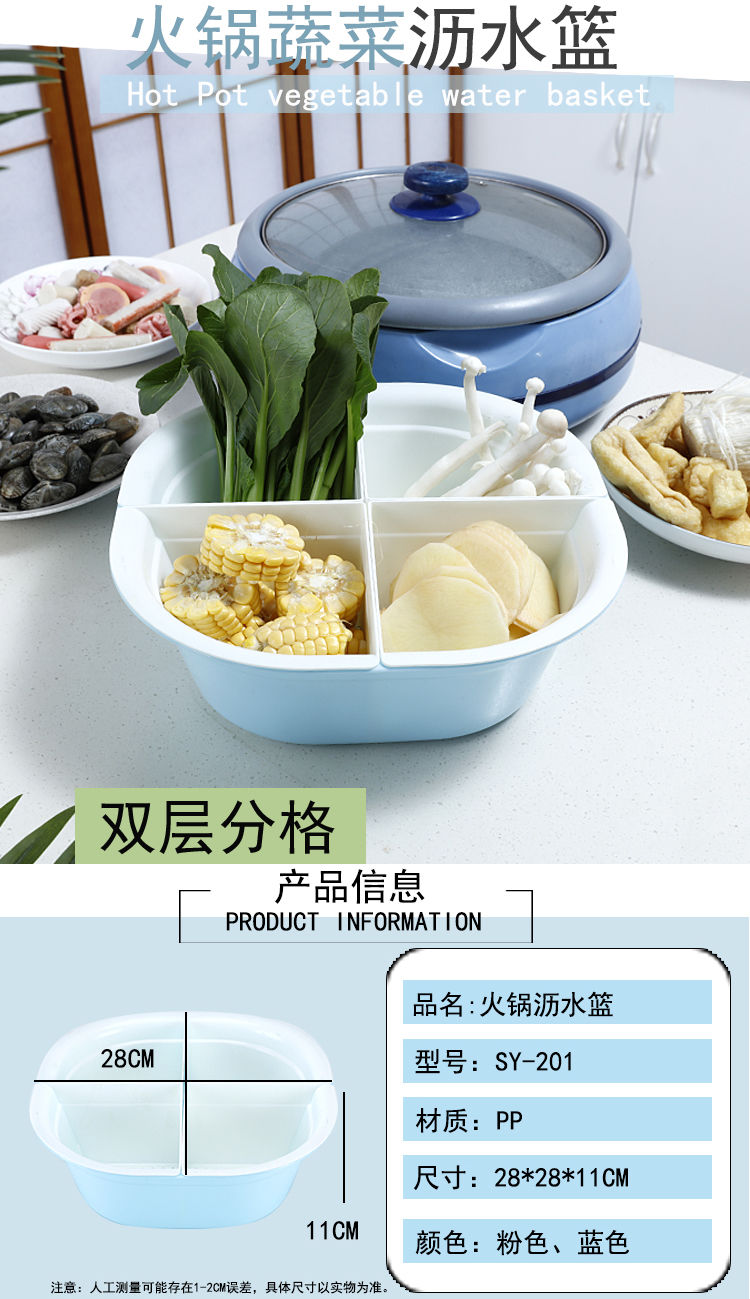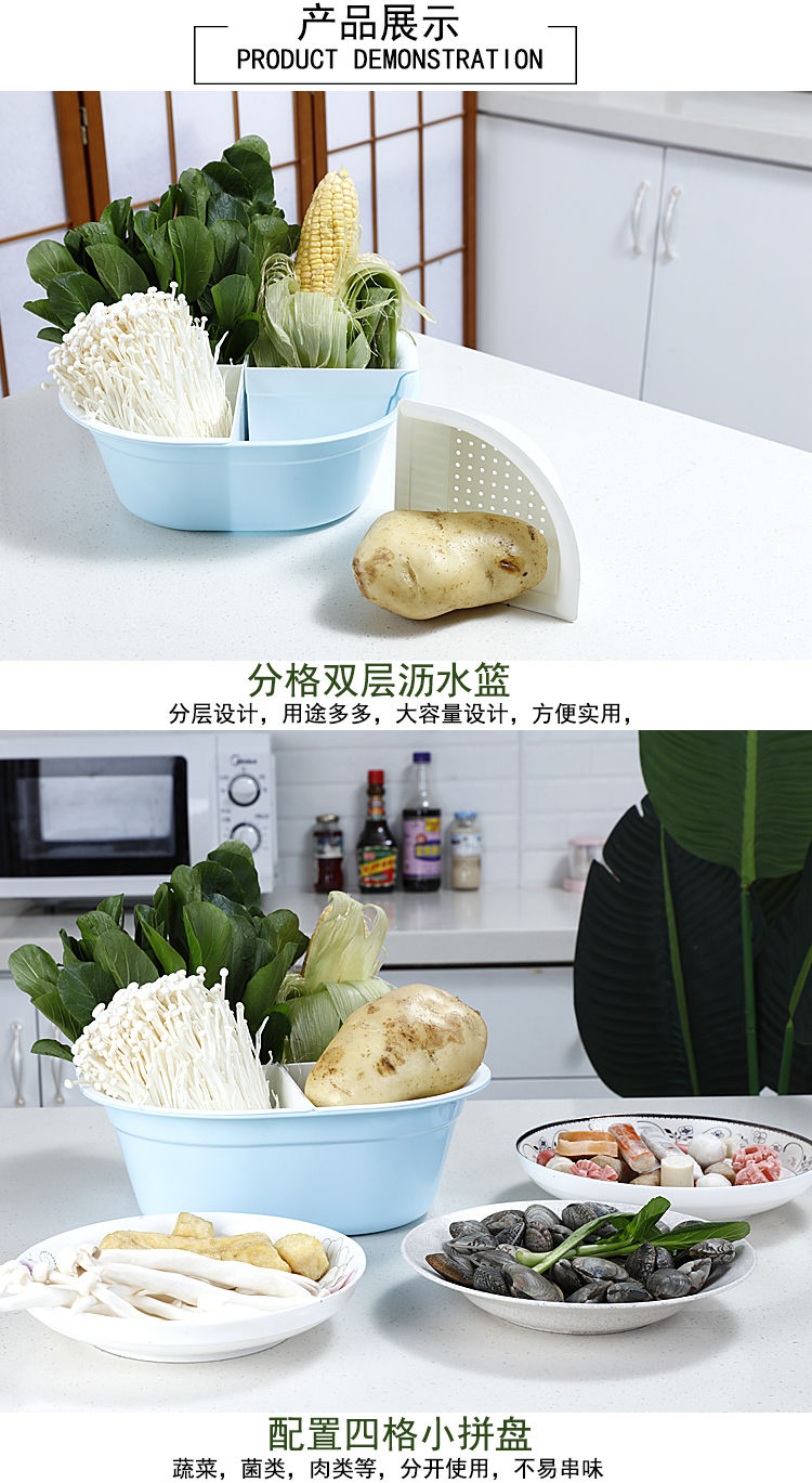沥水盆,火锅店食材拼盘蔬菜沥水篮双层分格洗菜盆塑料大号配菜盆子水果盘