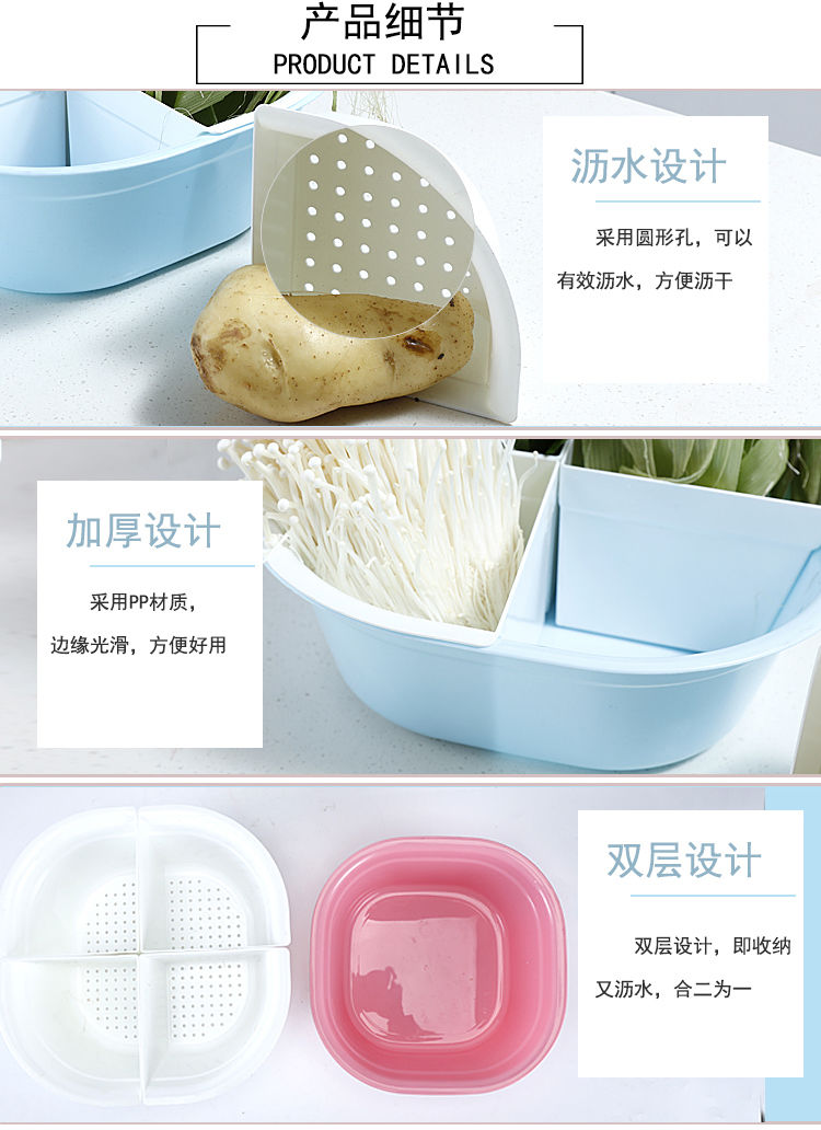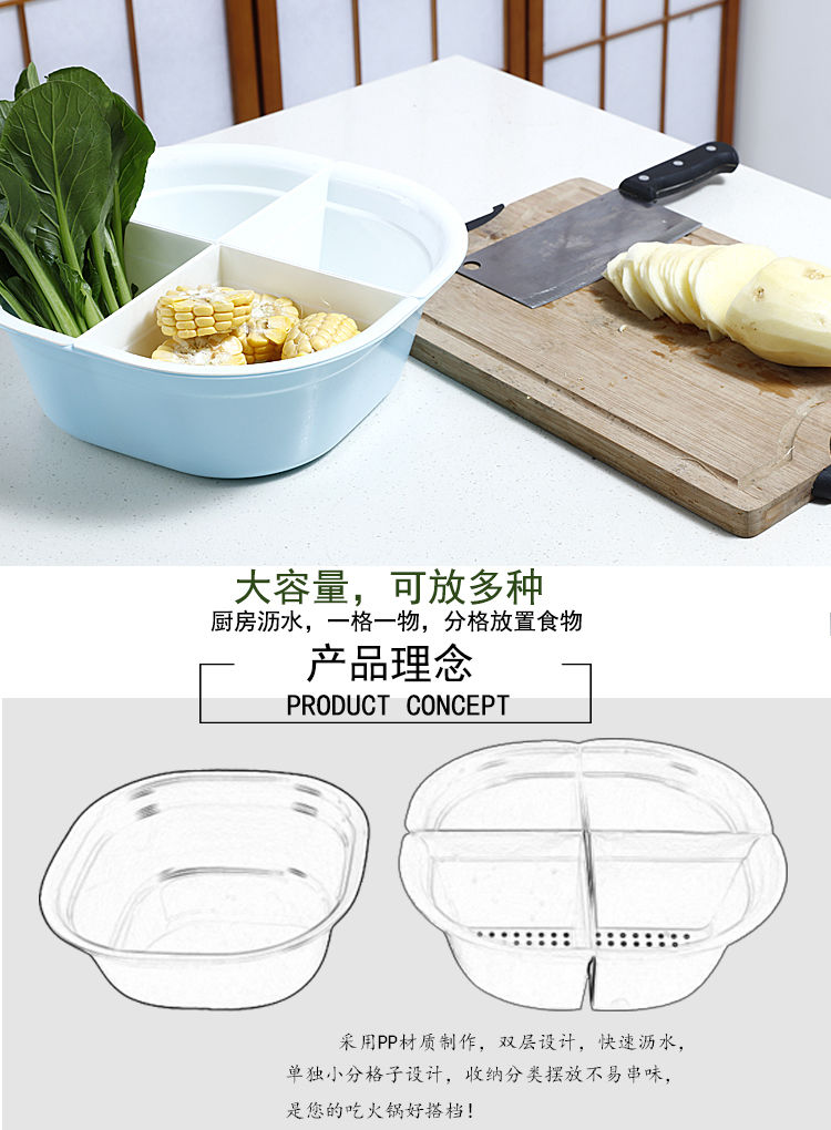双层沥水设计 大号上层分格设计