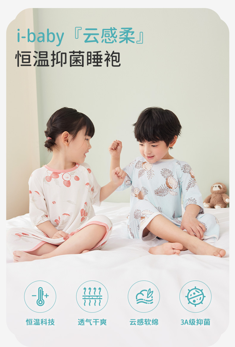 i-baby/英伦宝贝恒温抑菌针织睡袍睡裙 儿童睡衣春夏家居服