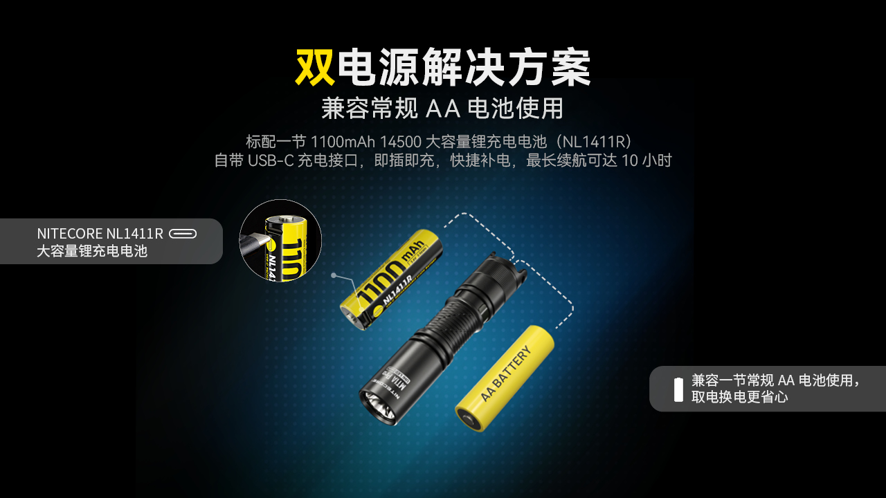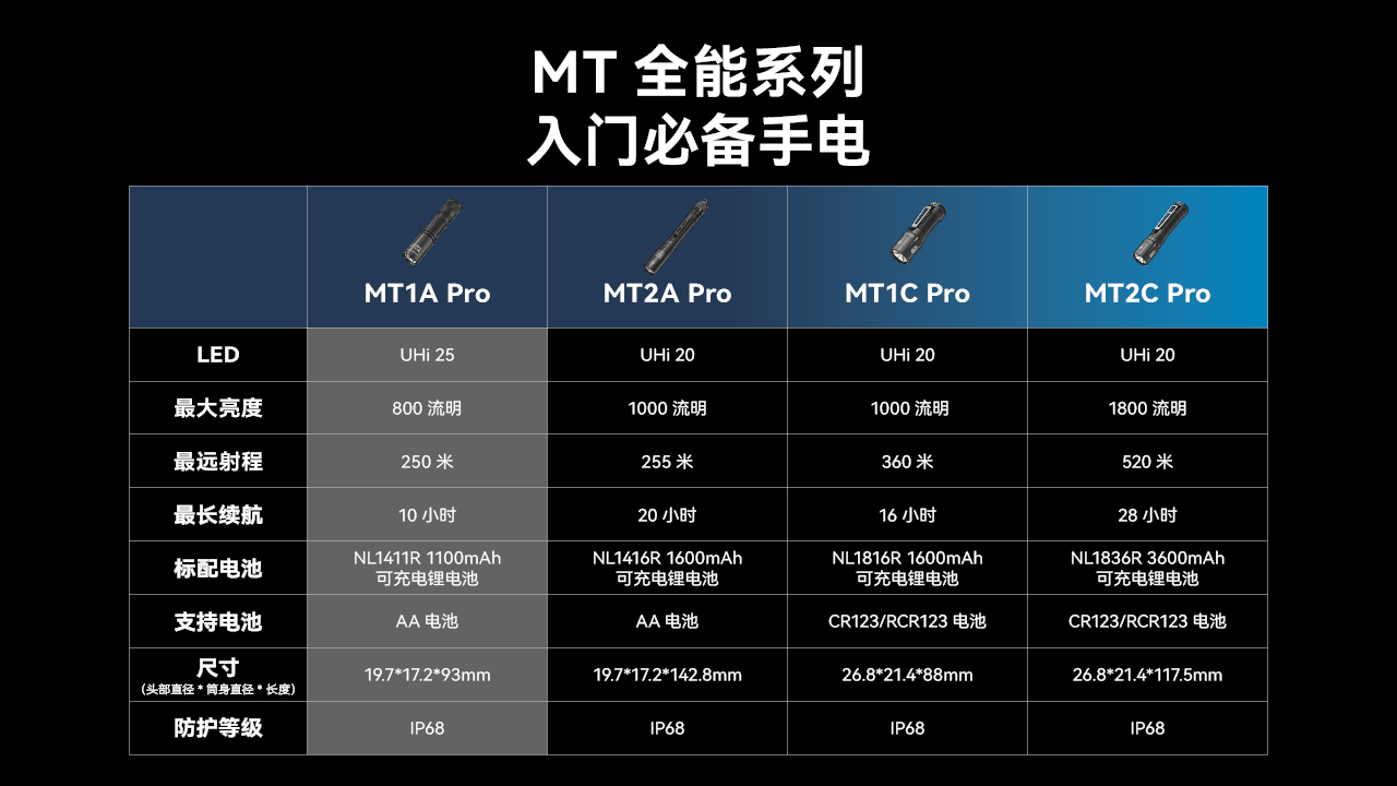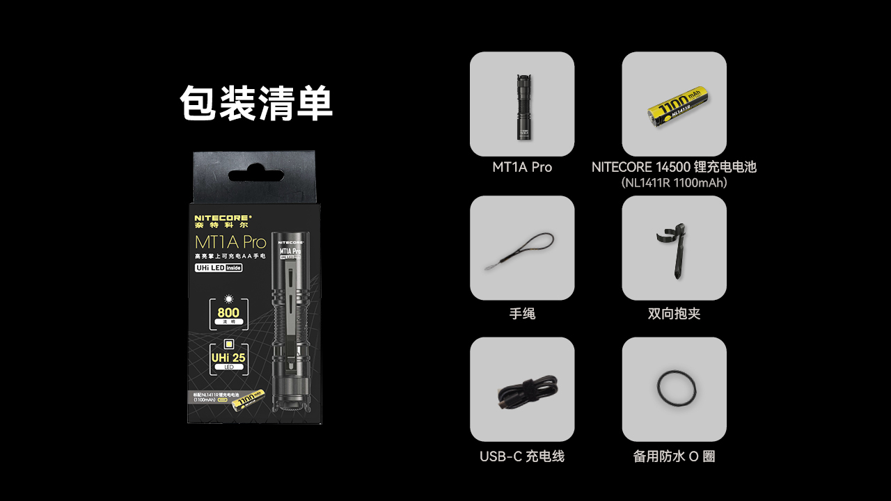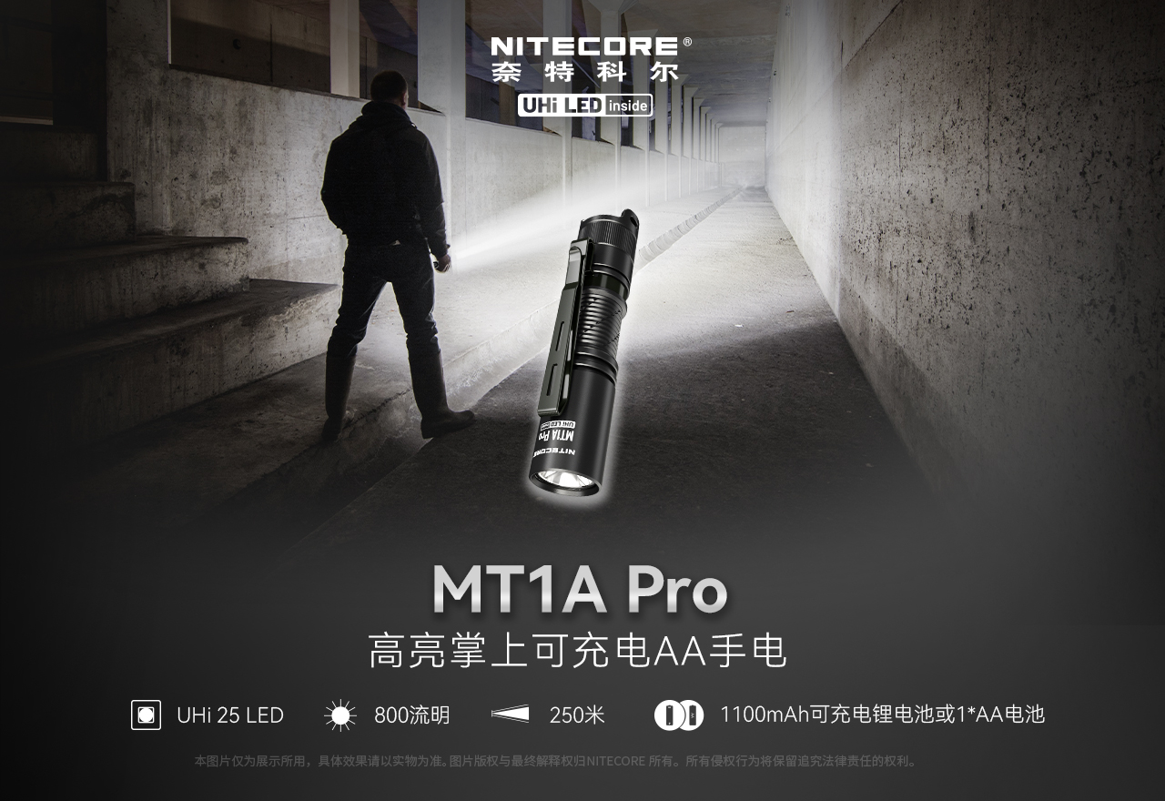 NITECORE奈特科尔MT1A PRO小巧家用AA手电筒户外应急EDC标配可充电14500锂电池