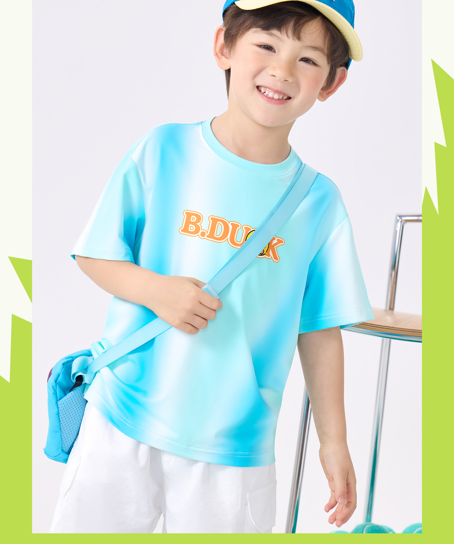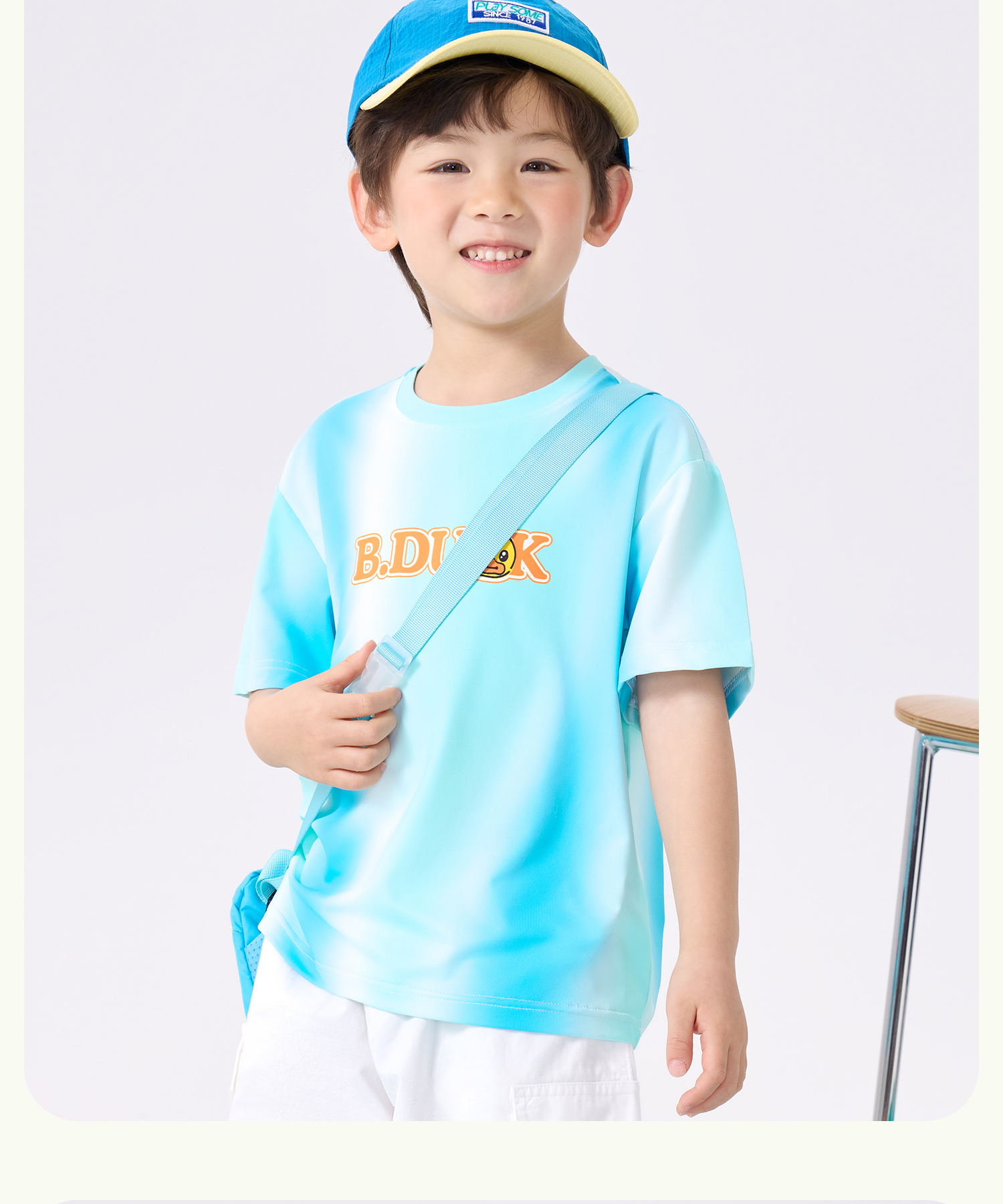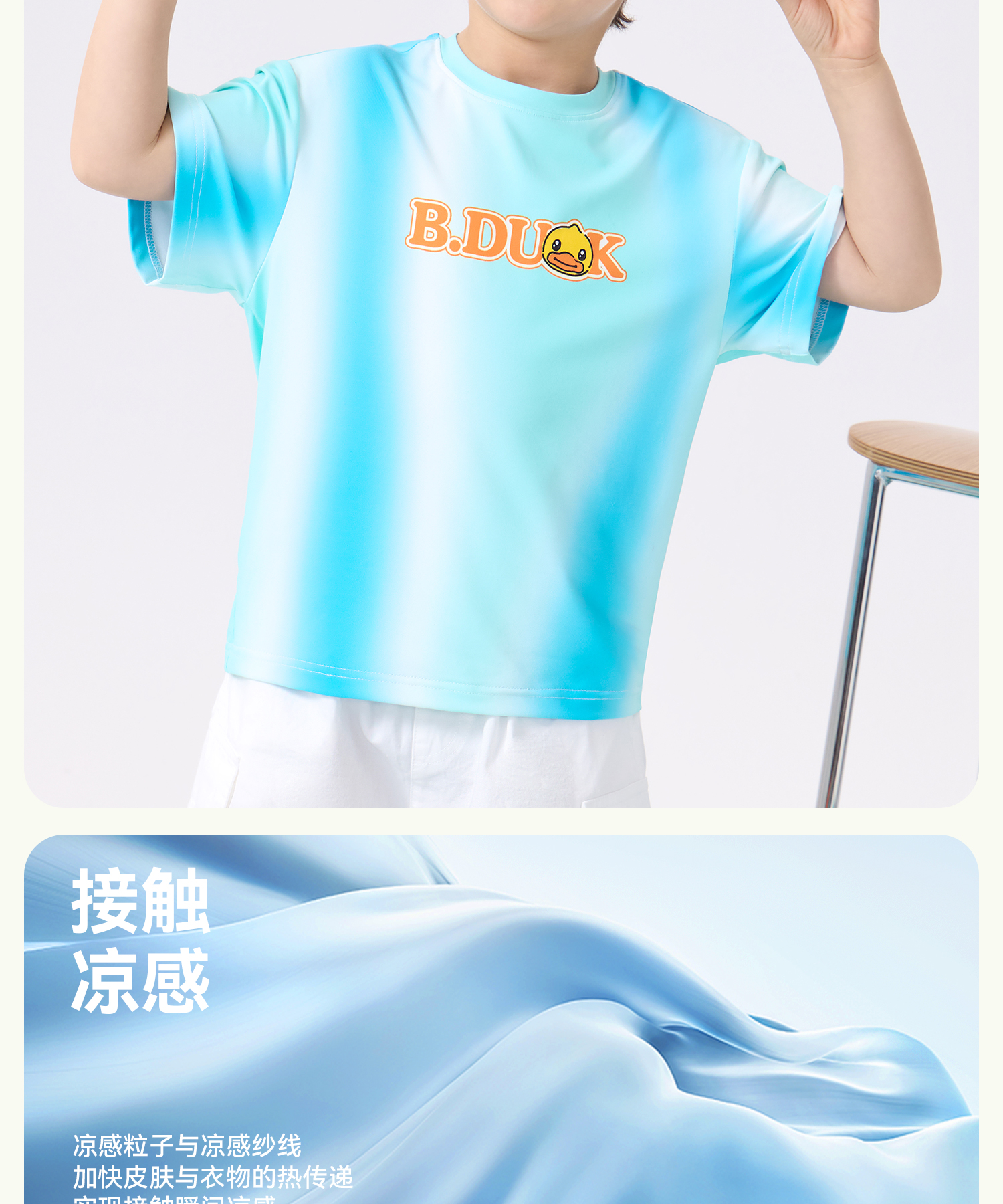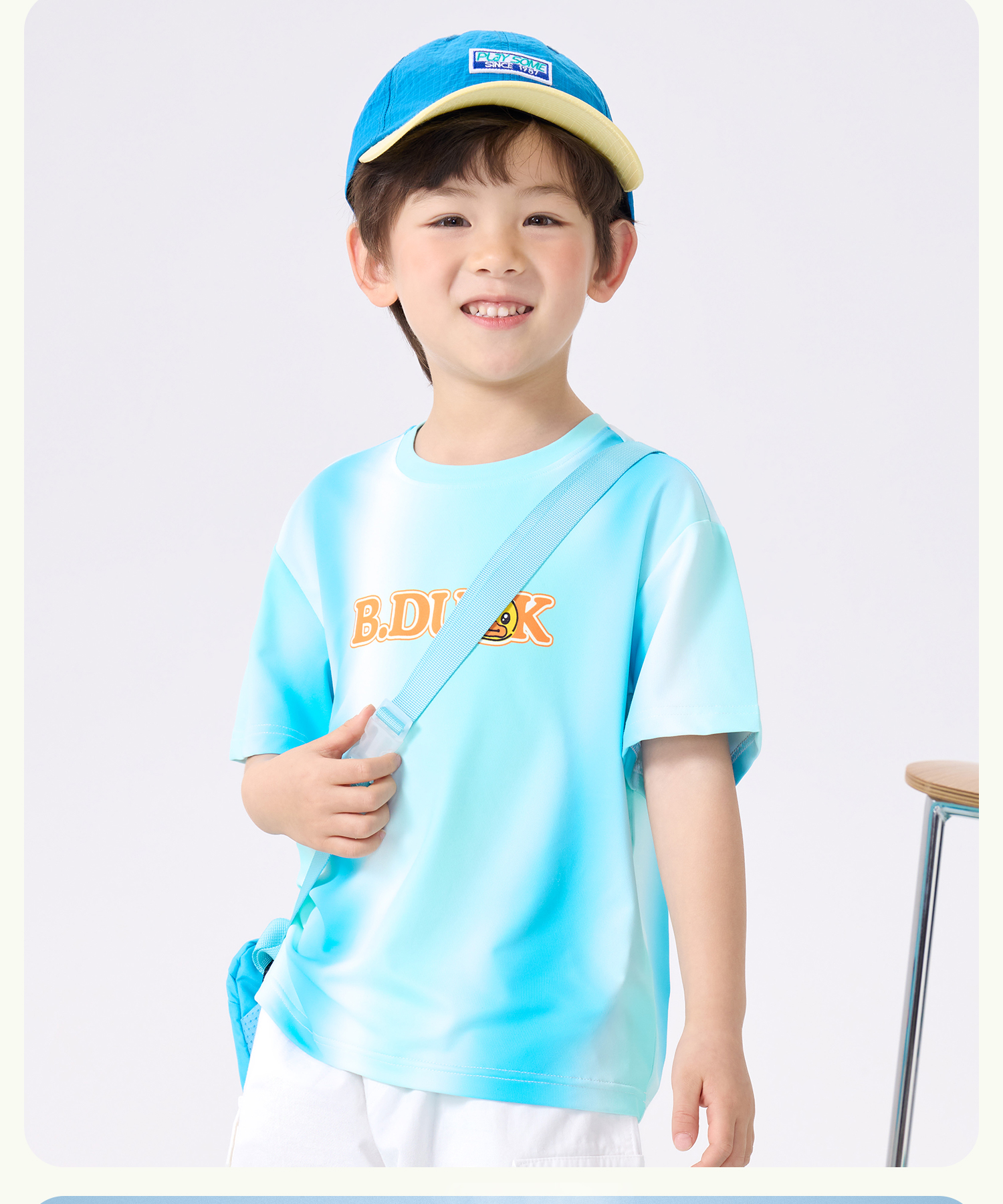 【冰感】bduck小黄鸭童装夏季男童t恤短袖夏装儿童上衣凉感渐变衣服薄105-150 BF2601052