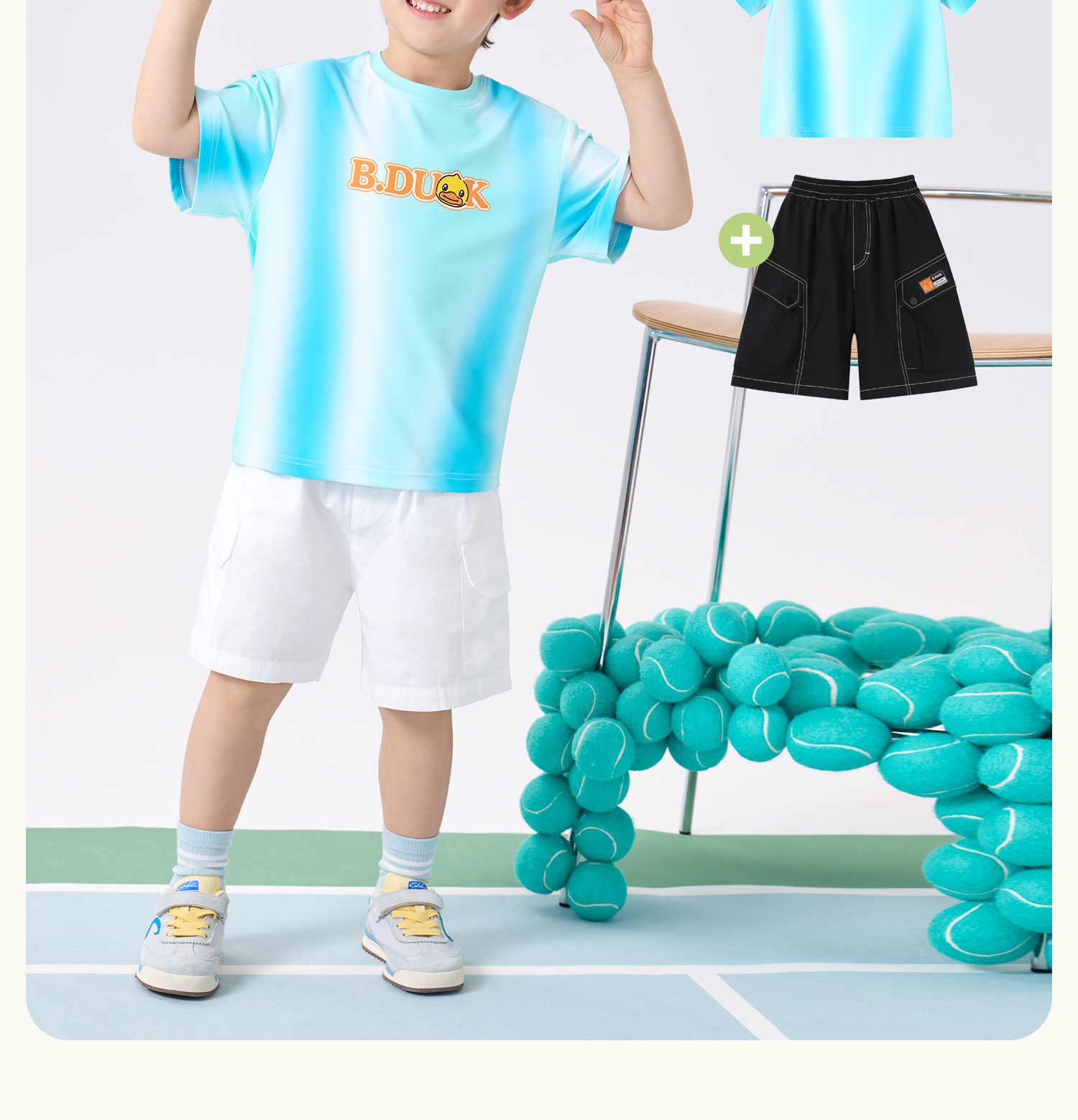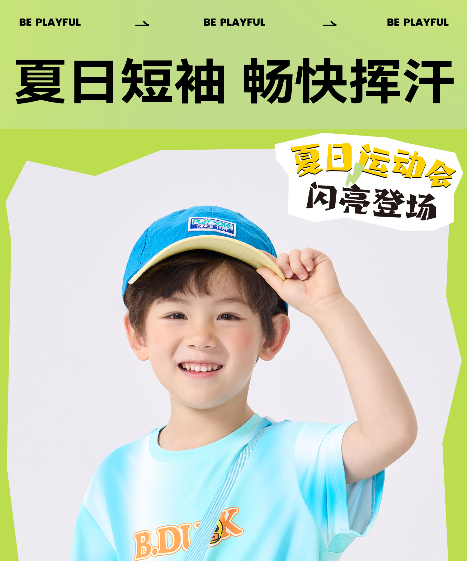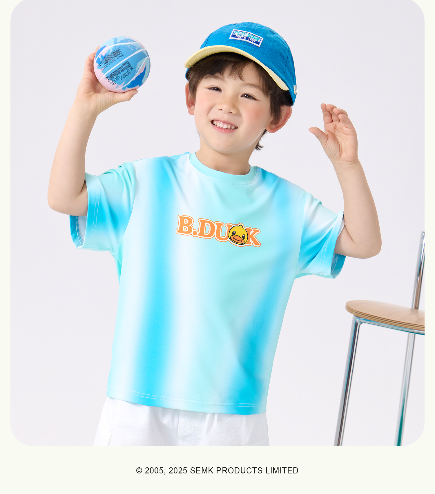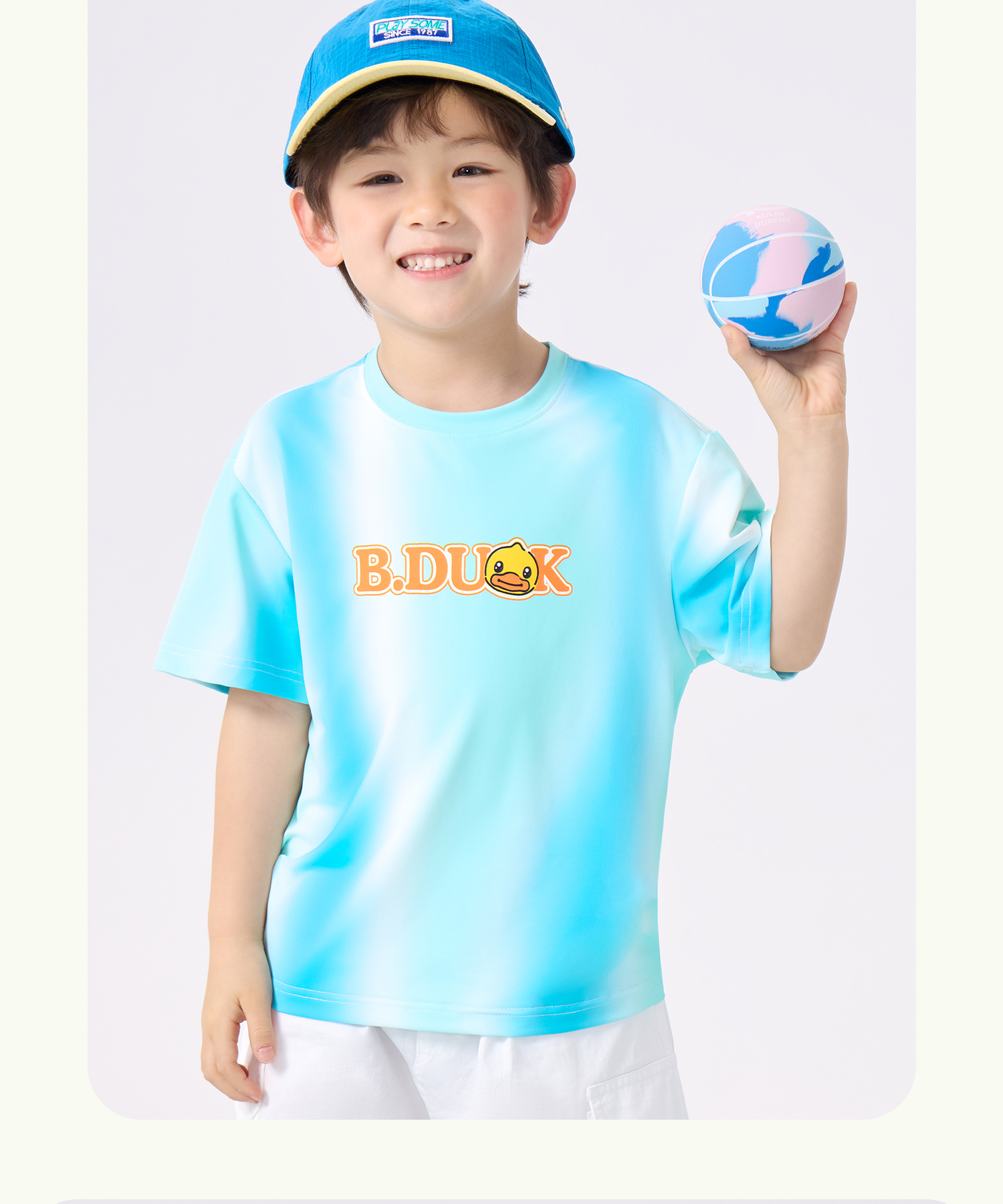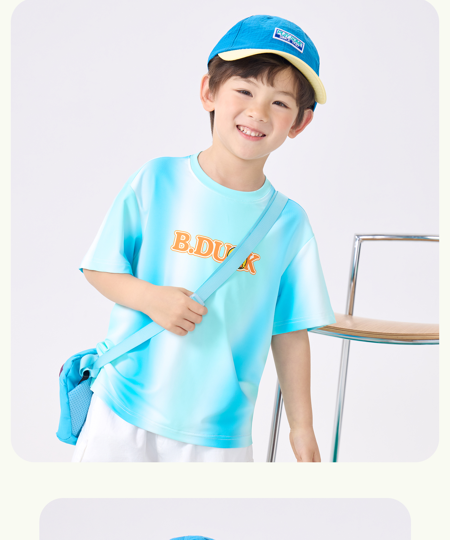 【冰感】bduck小黄鸭童装夏季男童t恤短袖夏装儿童上衣凉感渐变衣服薄105-150 BF2601052