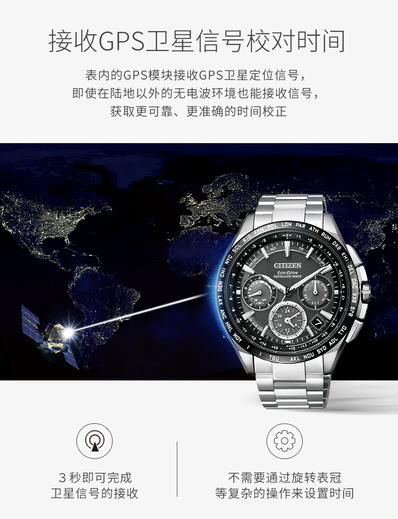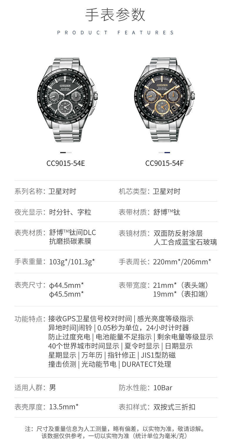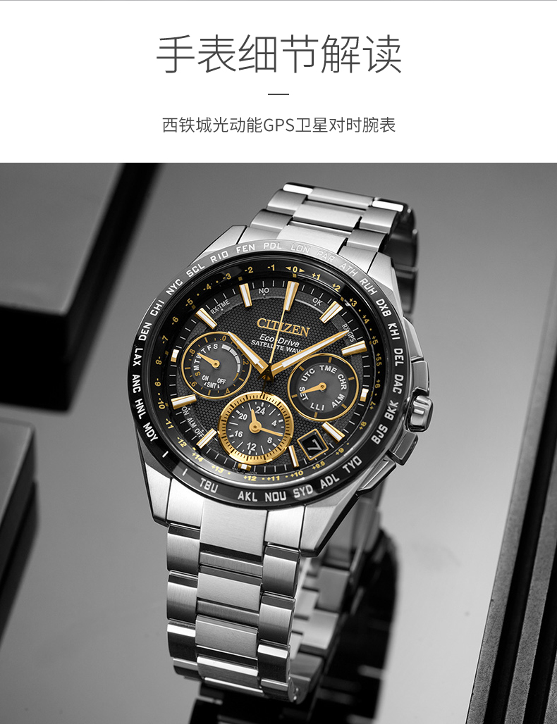 西铁城日本官方正品复古舒博钛GPS卫星对时光动能男表CC9015-54F