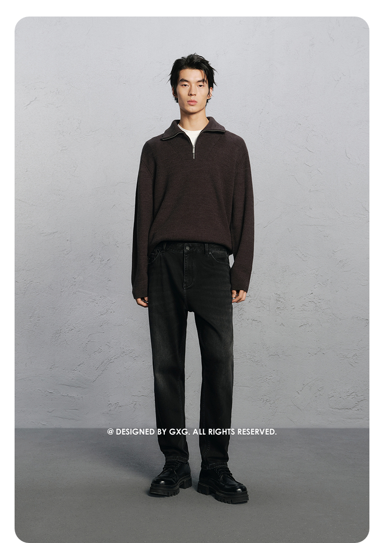 GXG男装 黑色锥形牛仔裤男士宽松长裤 24年冬G24X054082