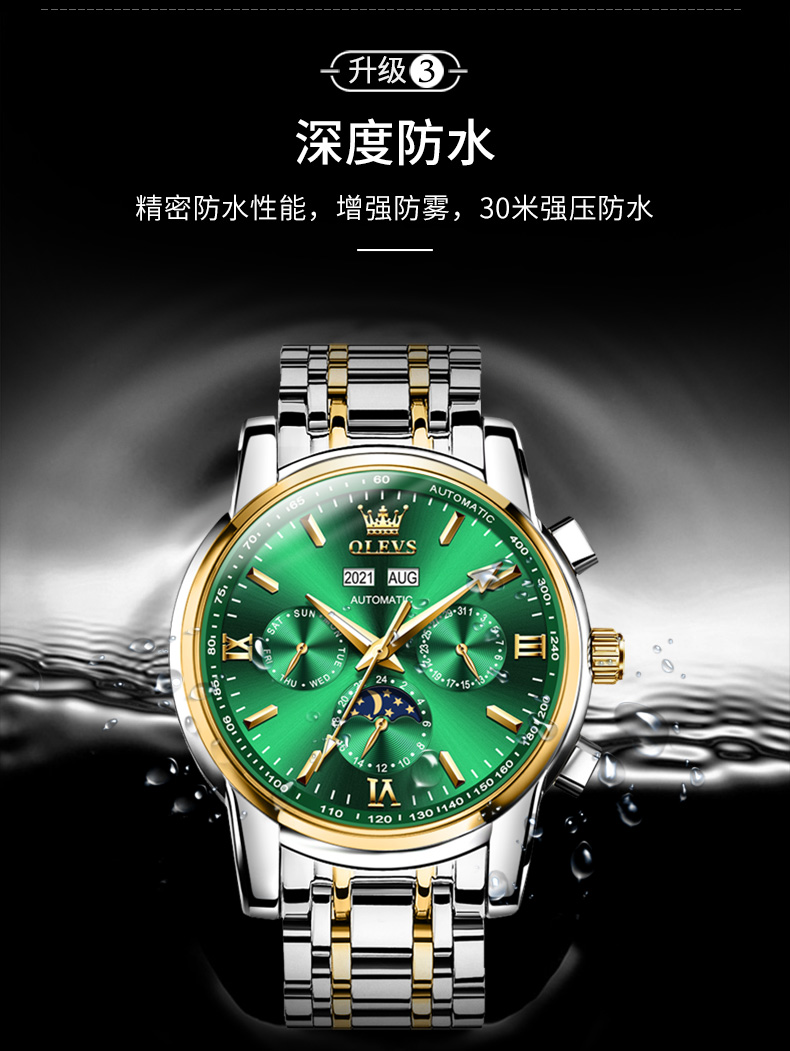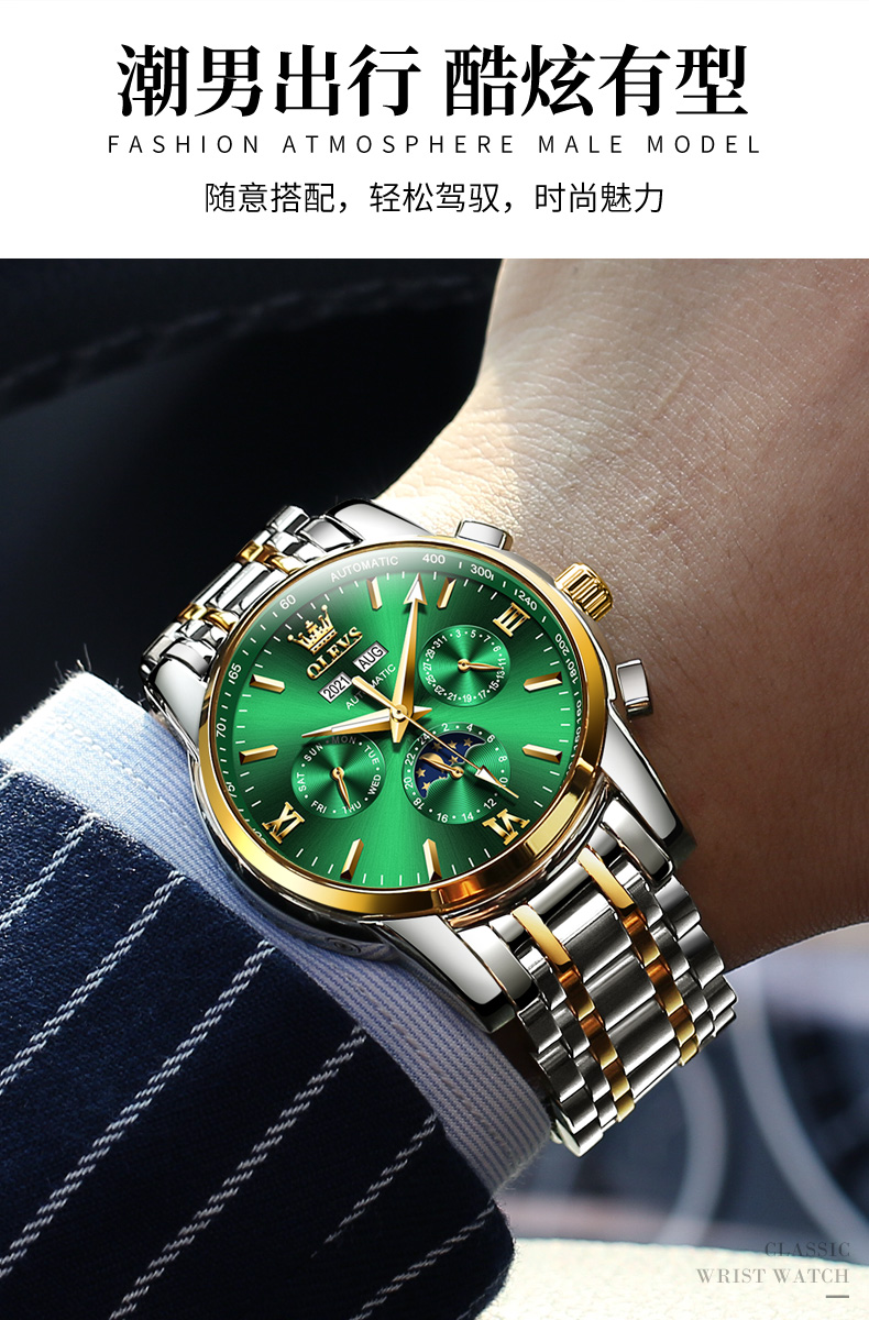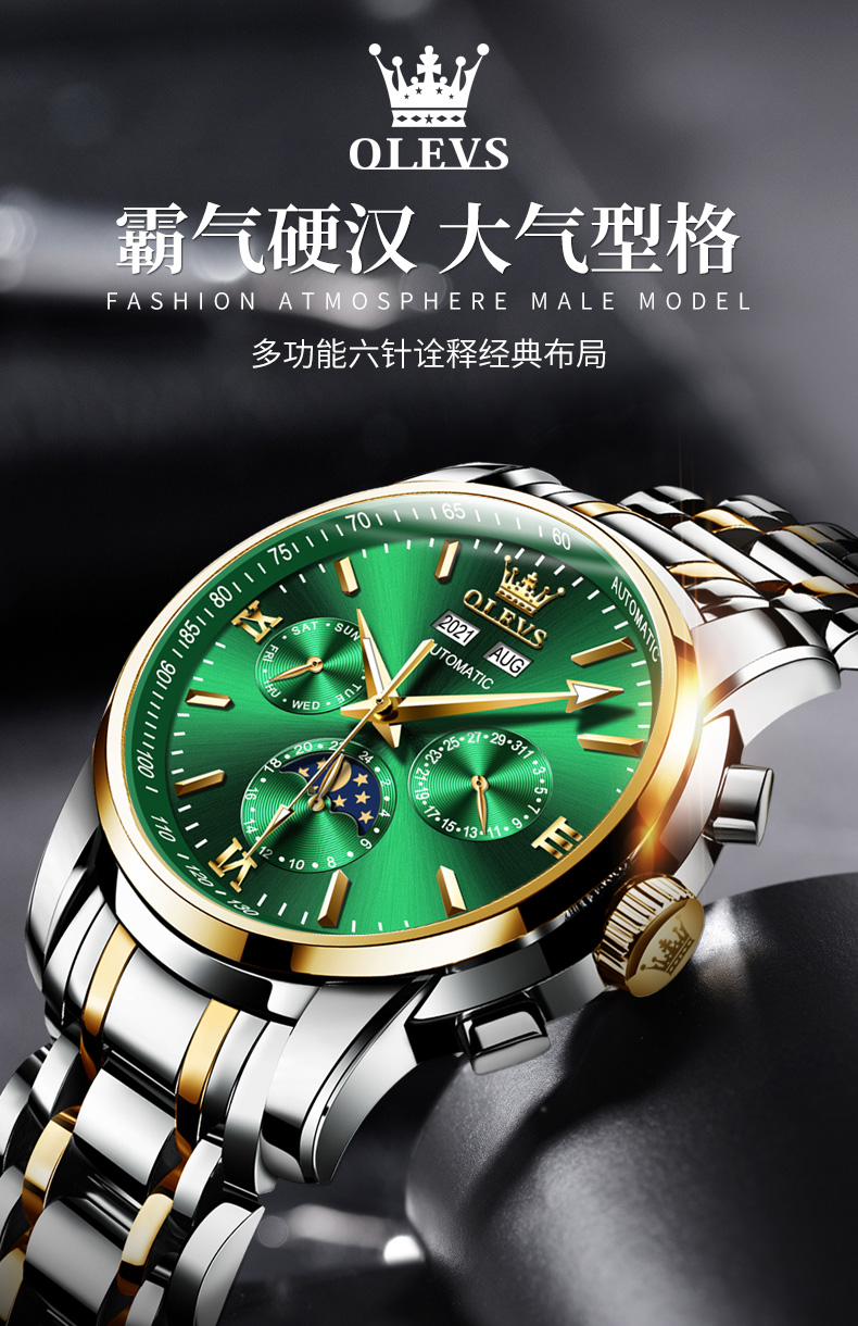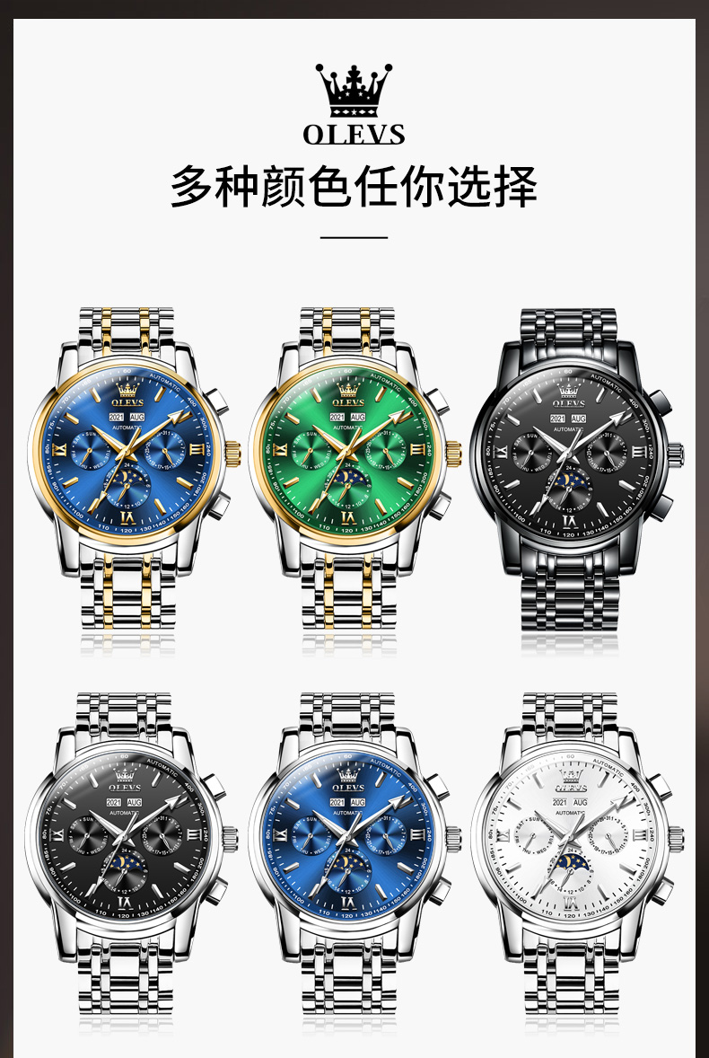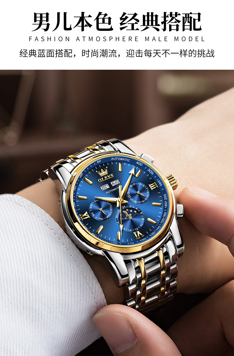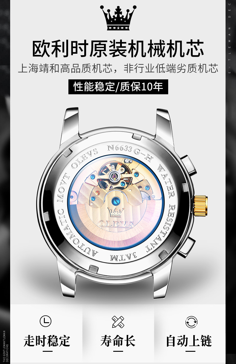 欧利时OLEVS 机械表 6633 瑞士认证品牌多功能机械男表