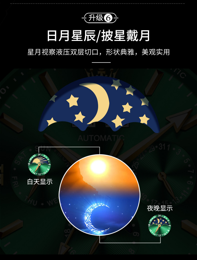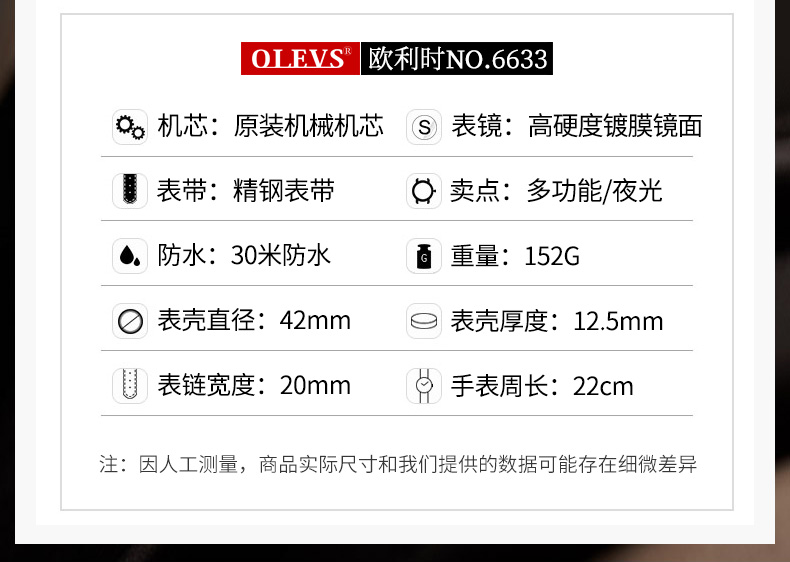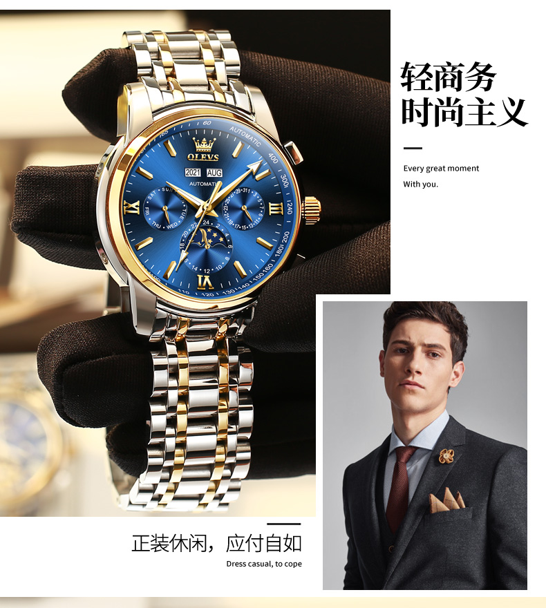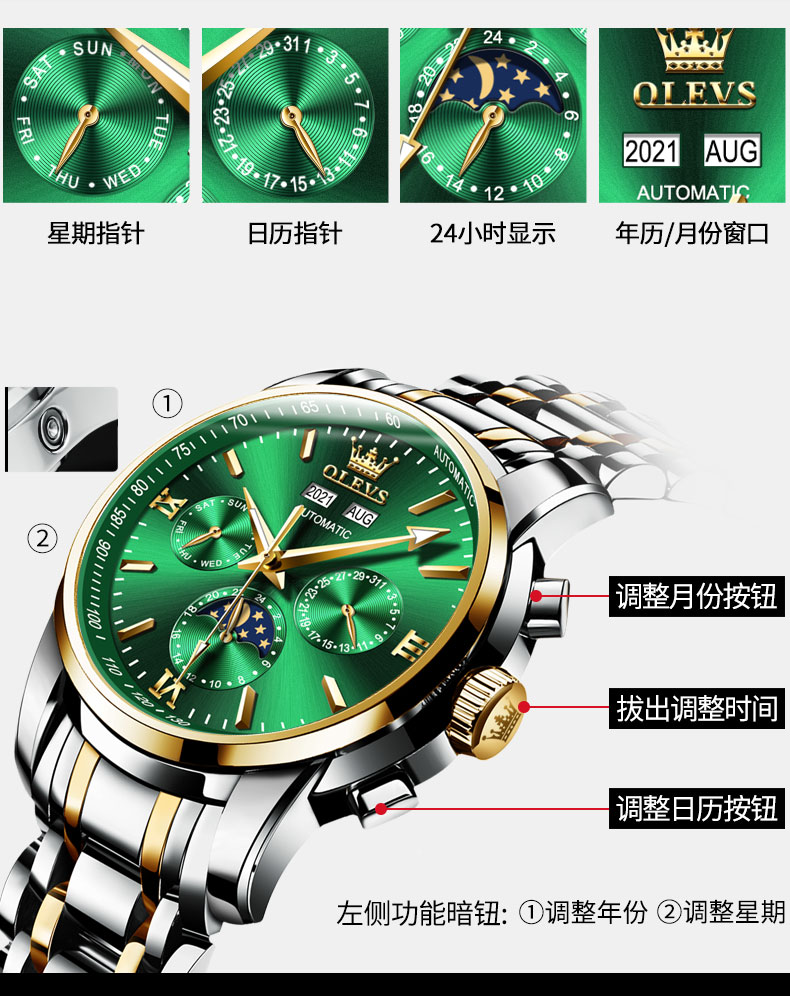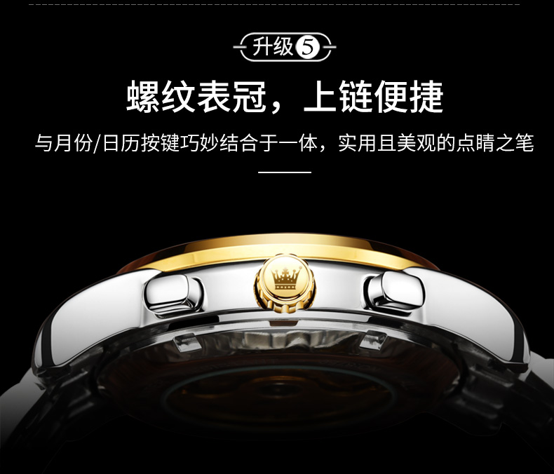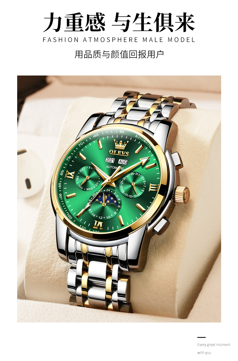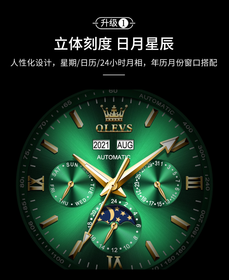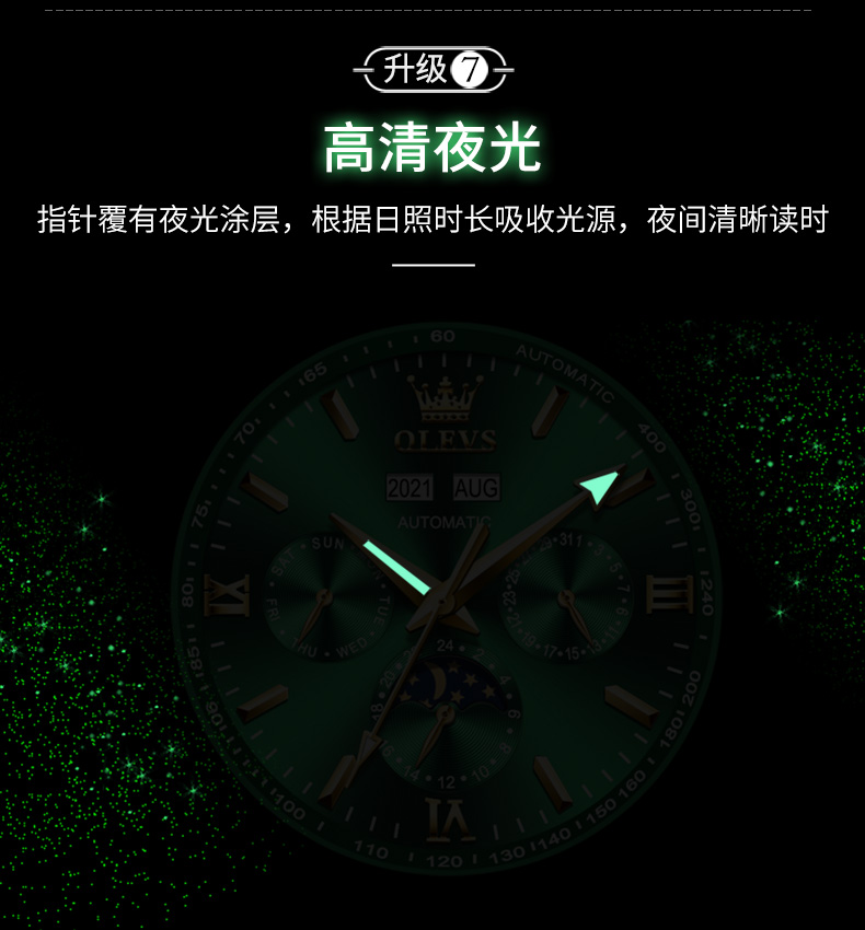 欧利时OLEVS 机械表 6633 瑞士认证品牌多功能机械男表