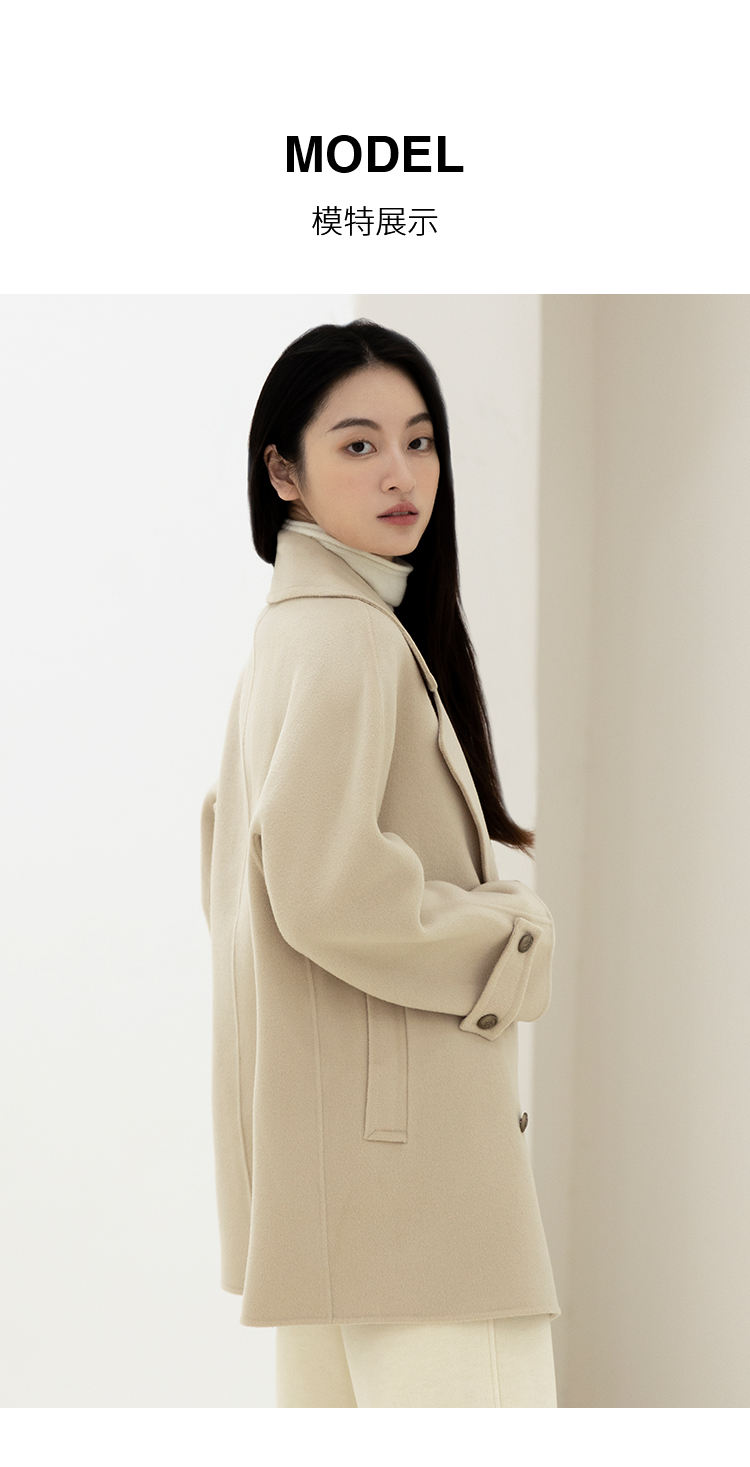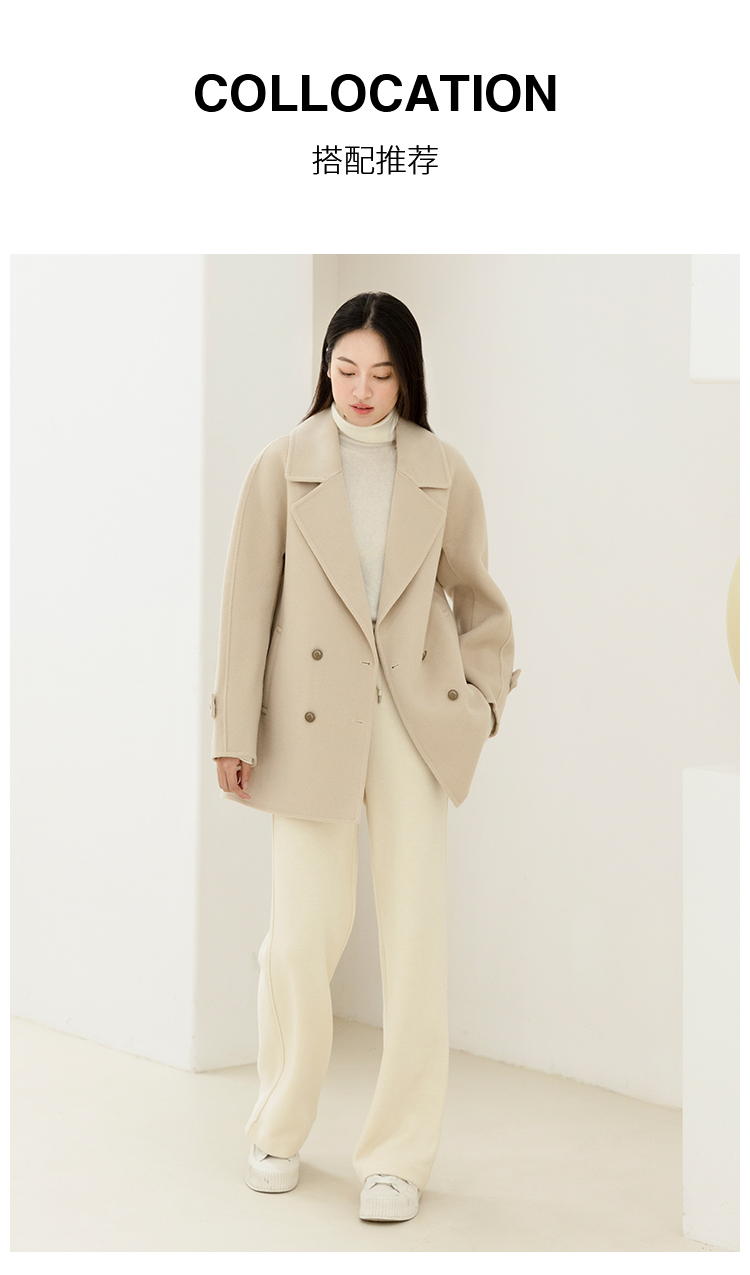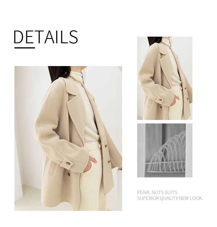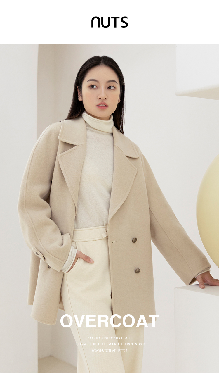 NUTS商场同款秋冬米色高级感气质直筒双面毛呢大衣外套女4411509A1