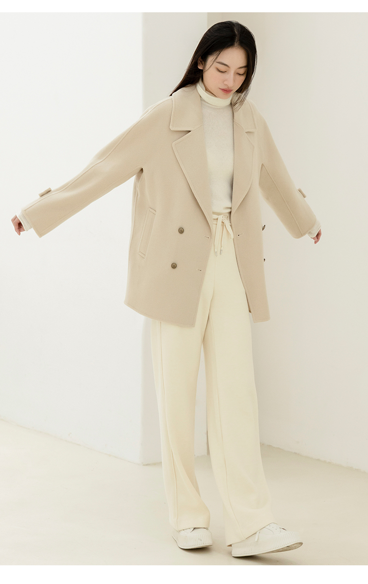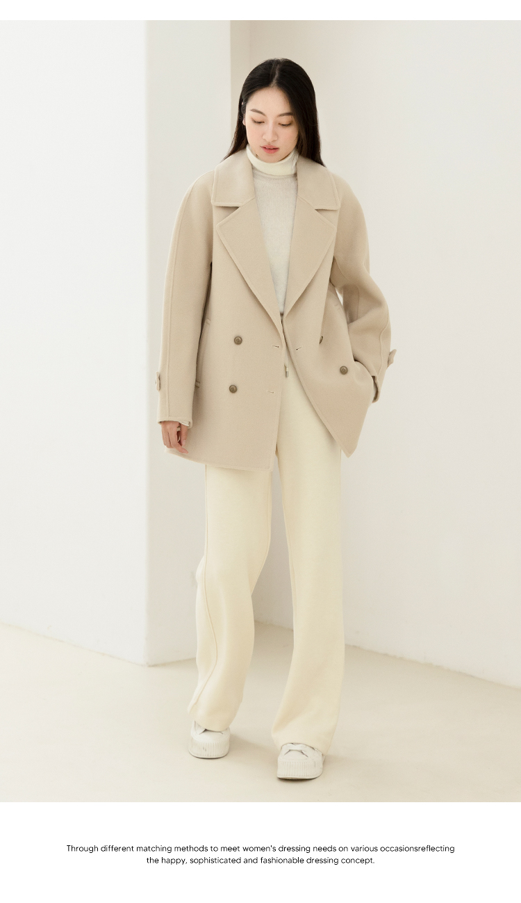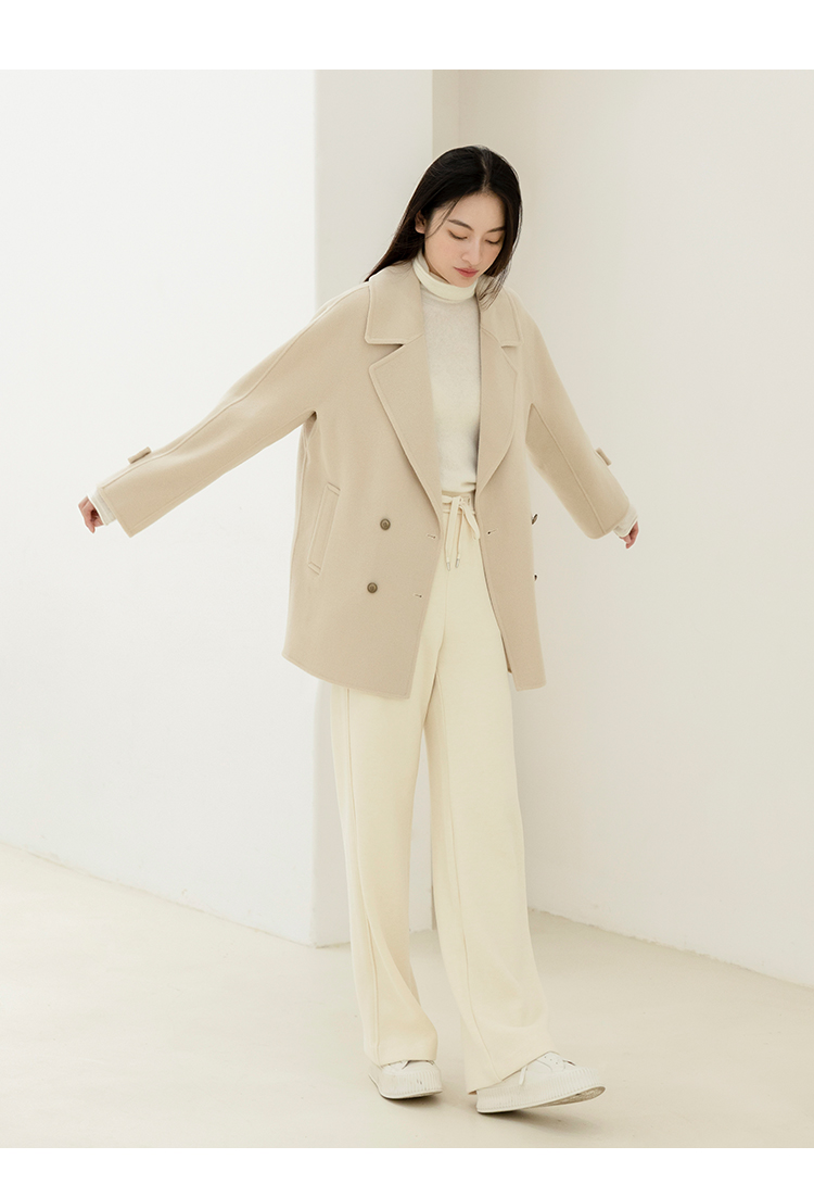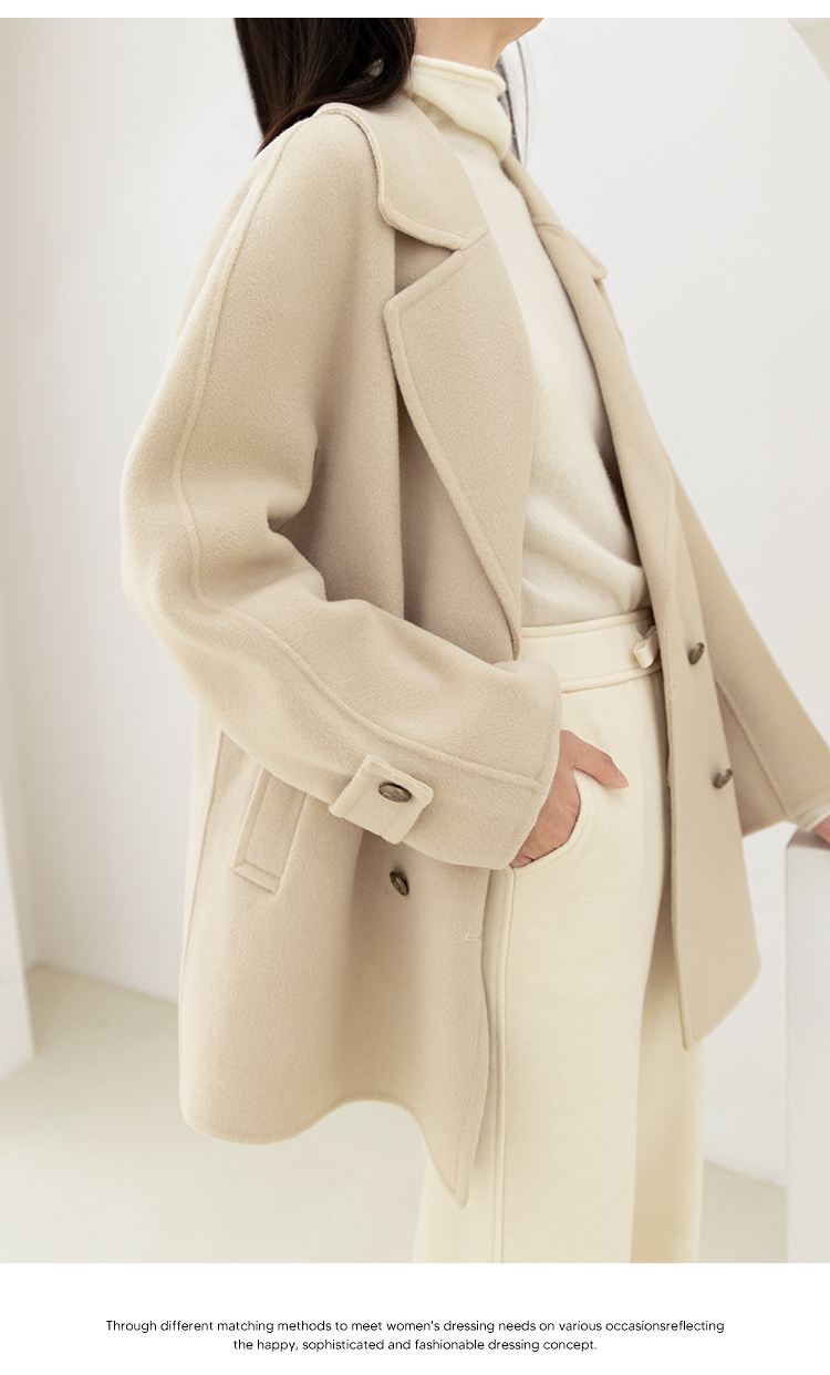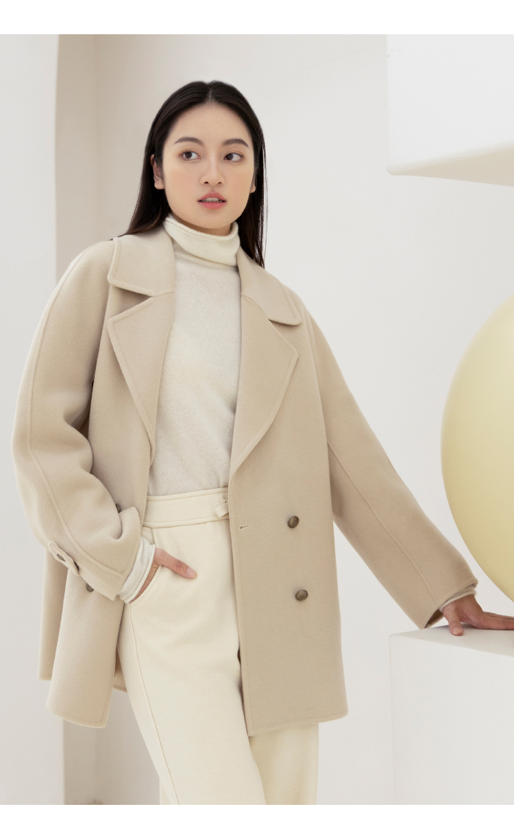 NUTS商场同款秋冬米色高级感气质直筒双面毛呢大衣外套女4411509A1