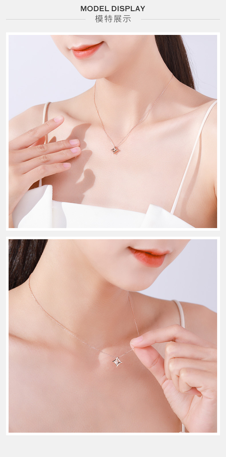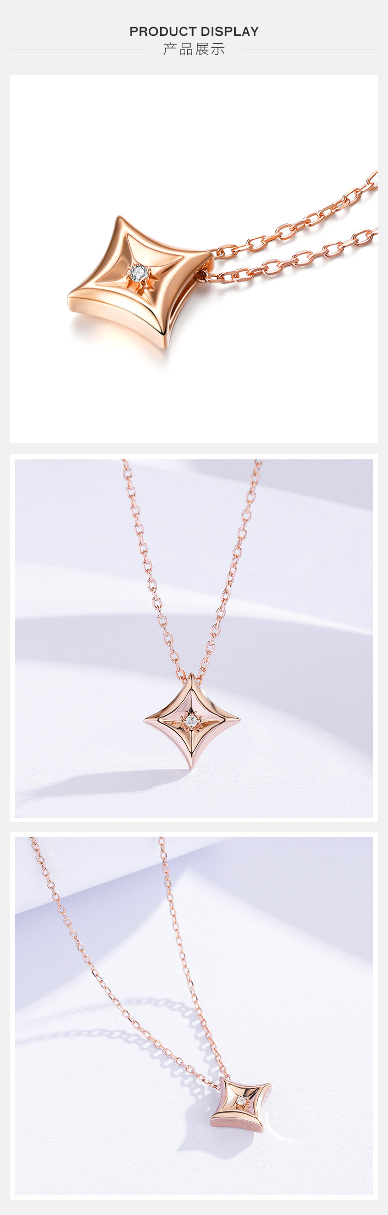 中国珠宝 18K金钻石菱形星星吊坠 玫瑰金彩金挂坠(赠镀玫瑰金925银链)
