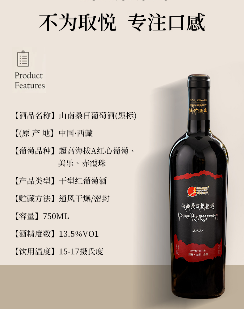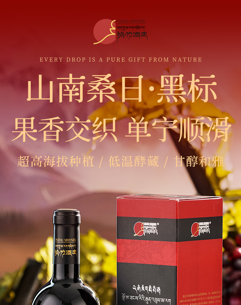 自营-(帕竹)-西藏帕竹酒庄帕竹黑标干型红葡萄酒单支礼盒 聚会 送礼 微醺
