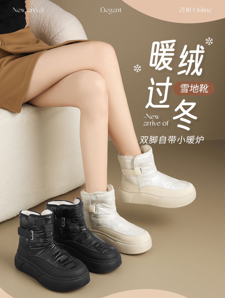 ZHR则则加绒防滑雪地靴2024冬季新款百搭棉鞋短靴子防水轻便女鞋