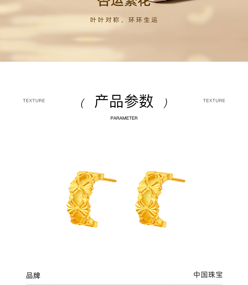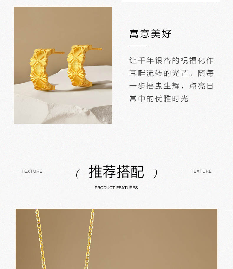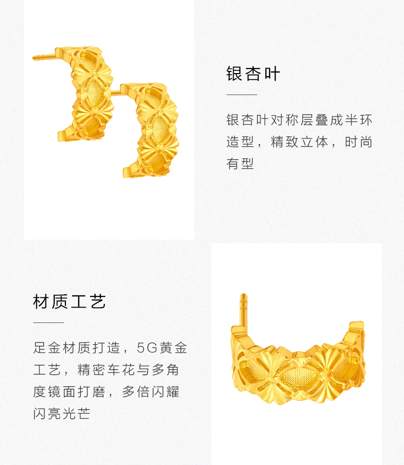 「杏运繁花」足金耳饰 5G黄金银杏耳钉花朵耳环