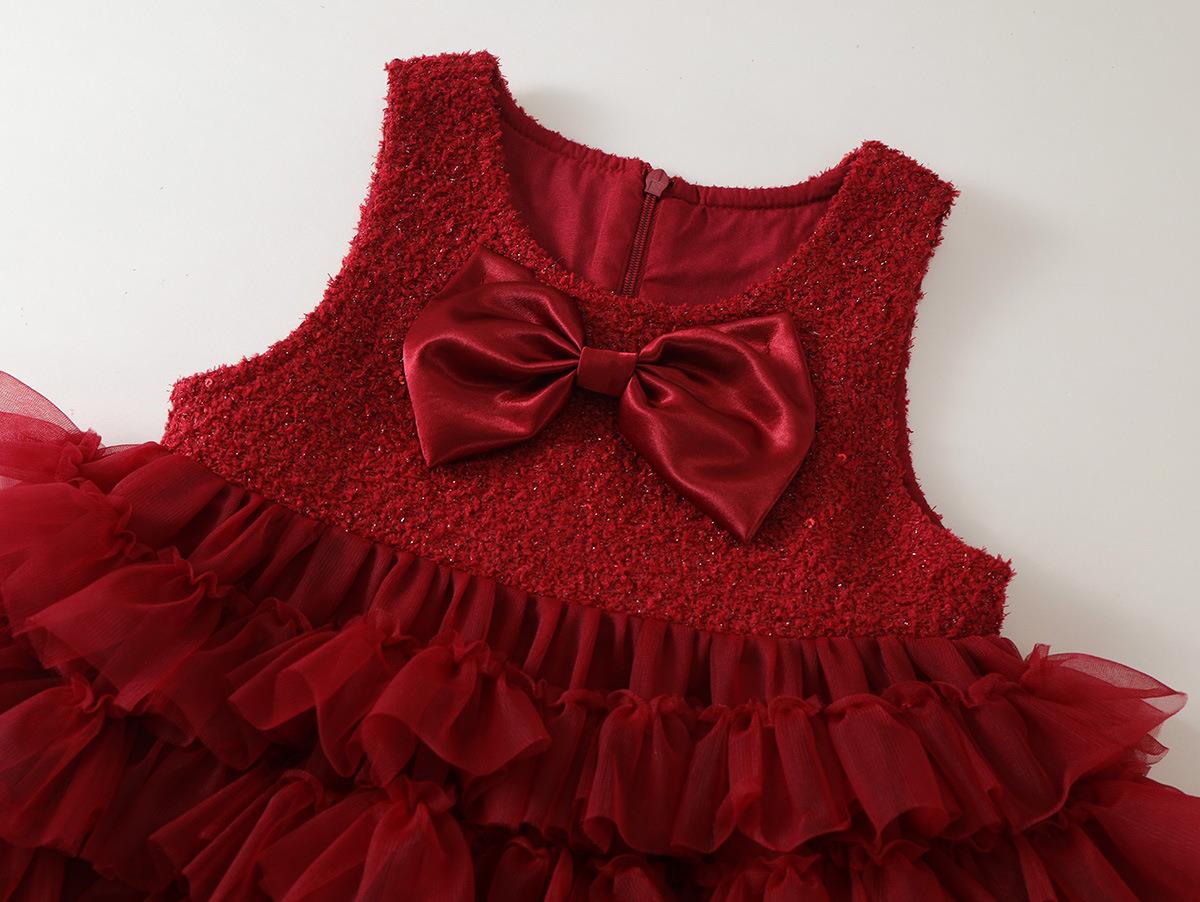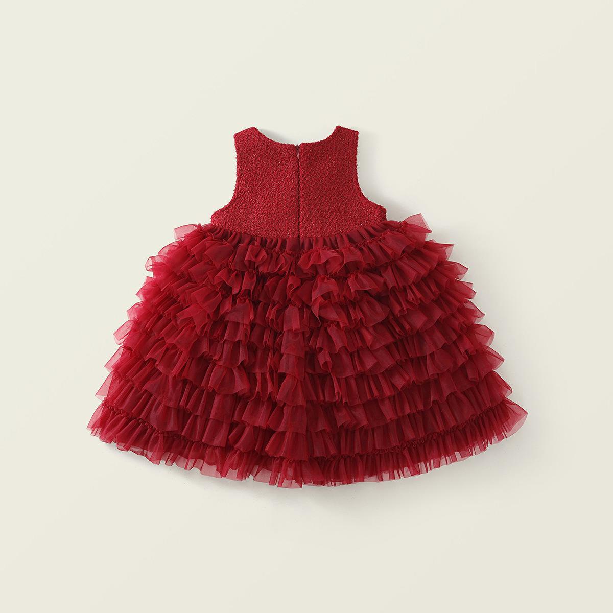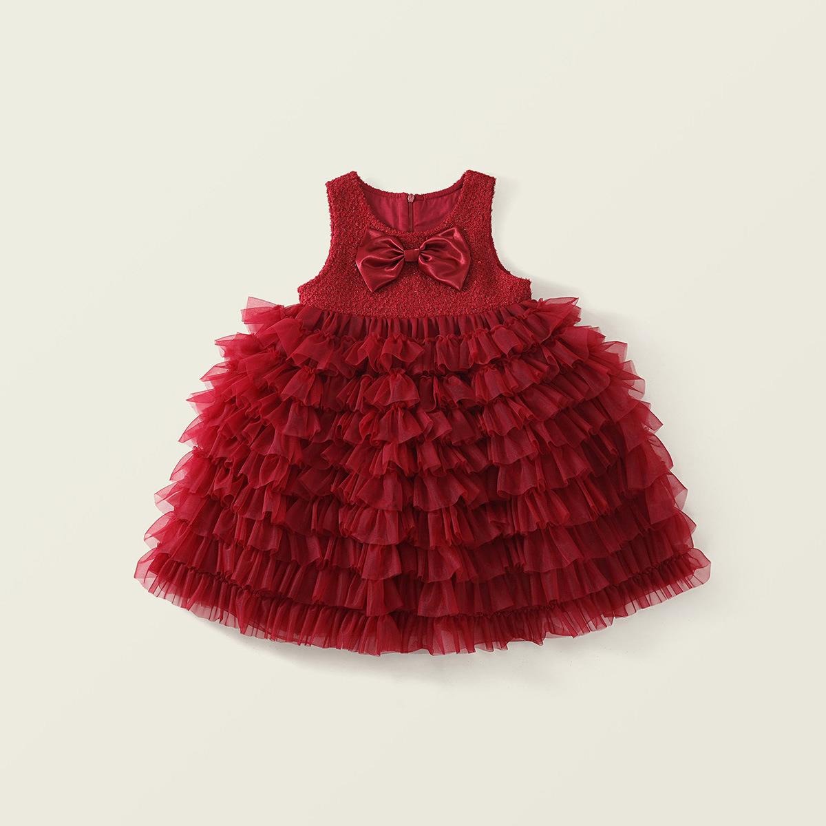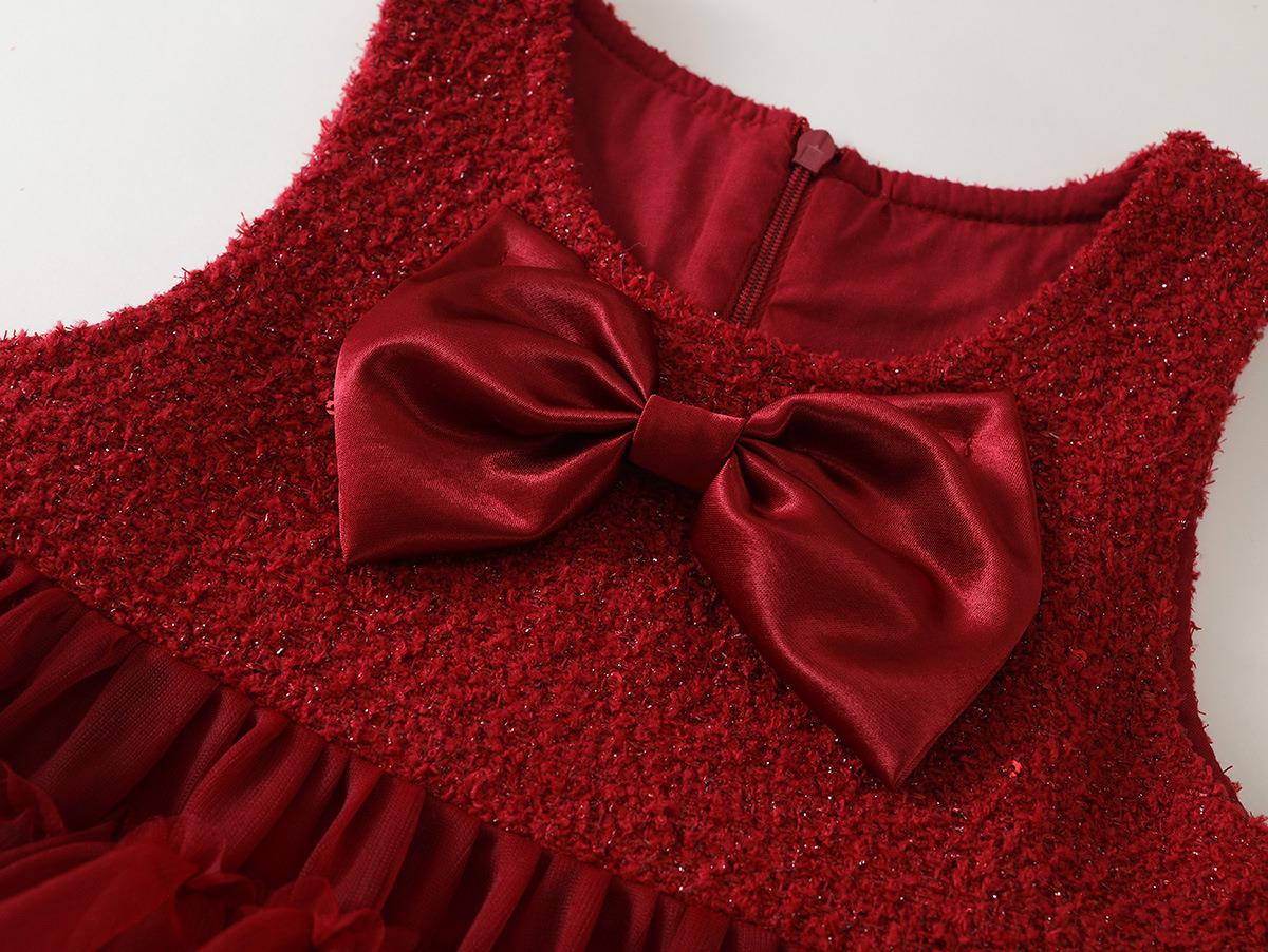 Hania2026年新年 女童红色网纱连衣裙秋季新款女宝宝甜美风蝴蝶结无袖背心裙90-140★
