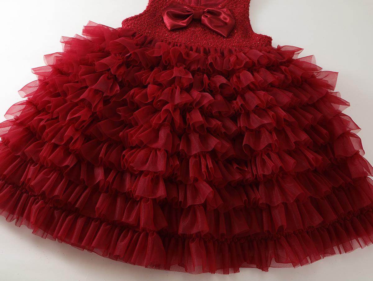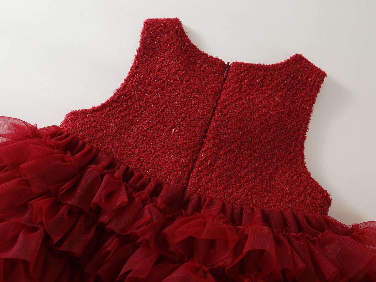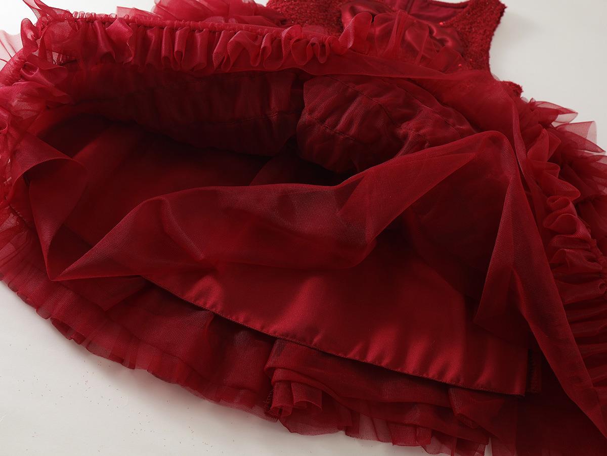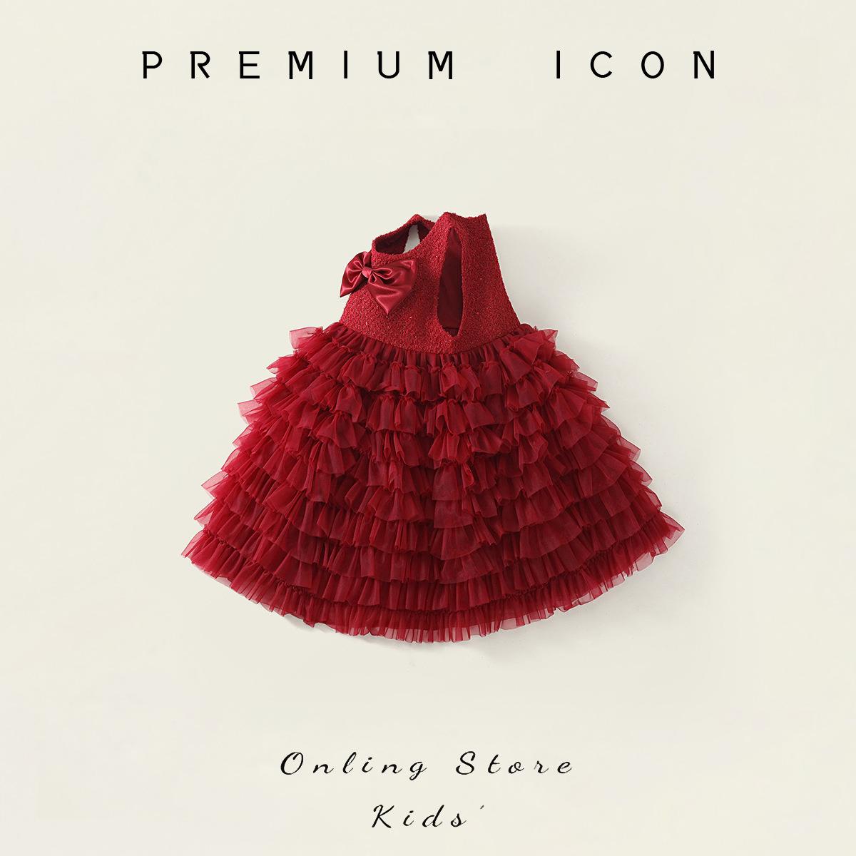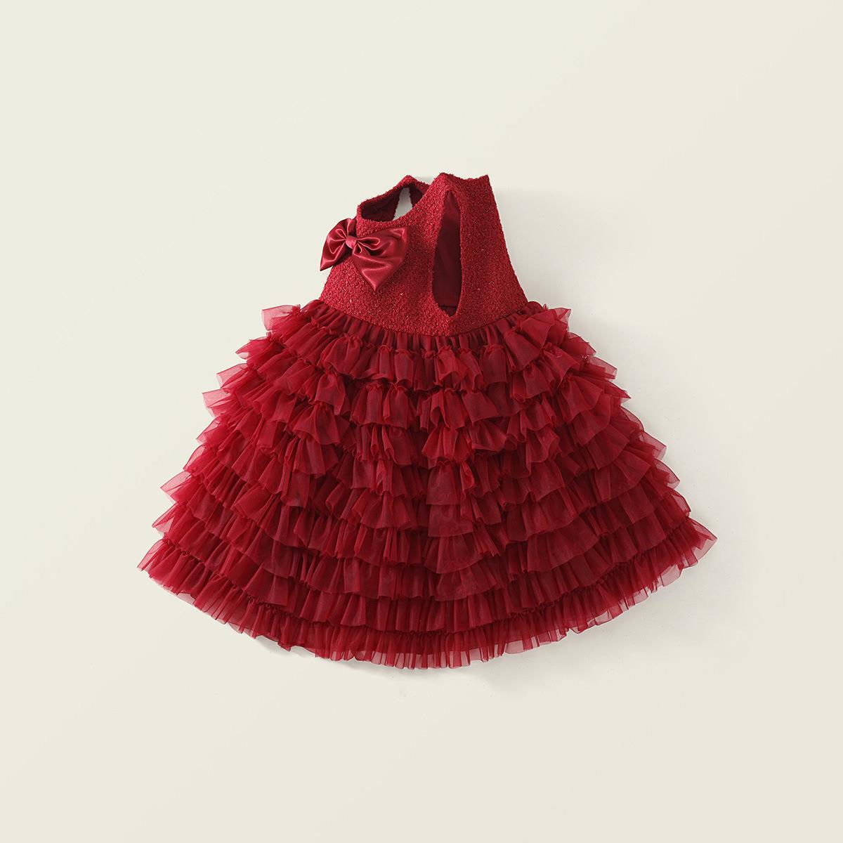 Hania2026年新年 女童红色网纱连衣裙秋季新款女宝宝甜美风蝴蝶结无袖背心裙90-140★