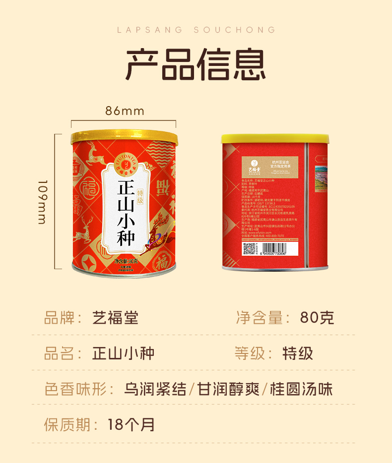 【下单减11.1元】艺福堂正山小种80g/罐特级(氮气罐/T)