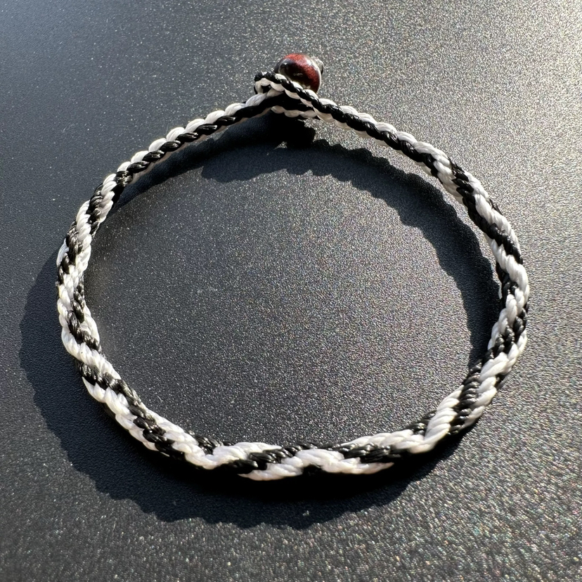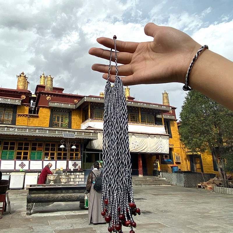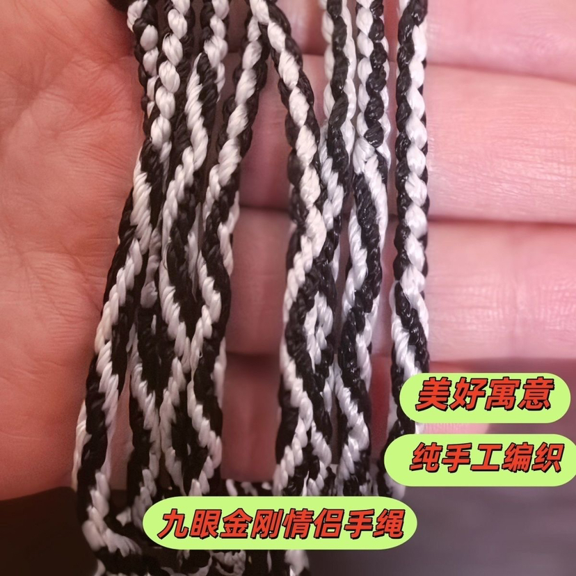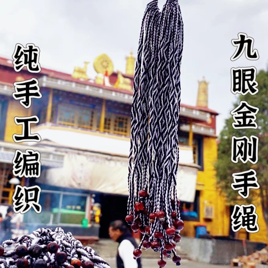 西藏拉萨扎基九眼绳粗线编九眼不灭长寿金刚绳传统黑白色